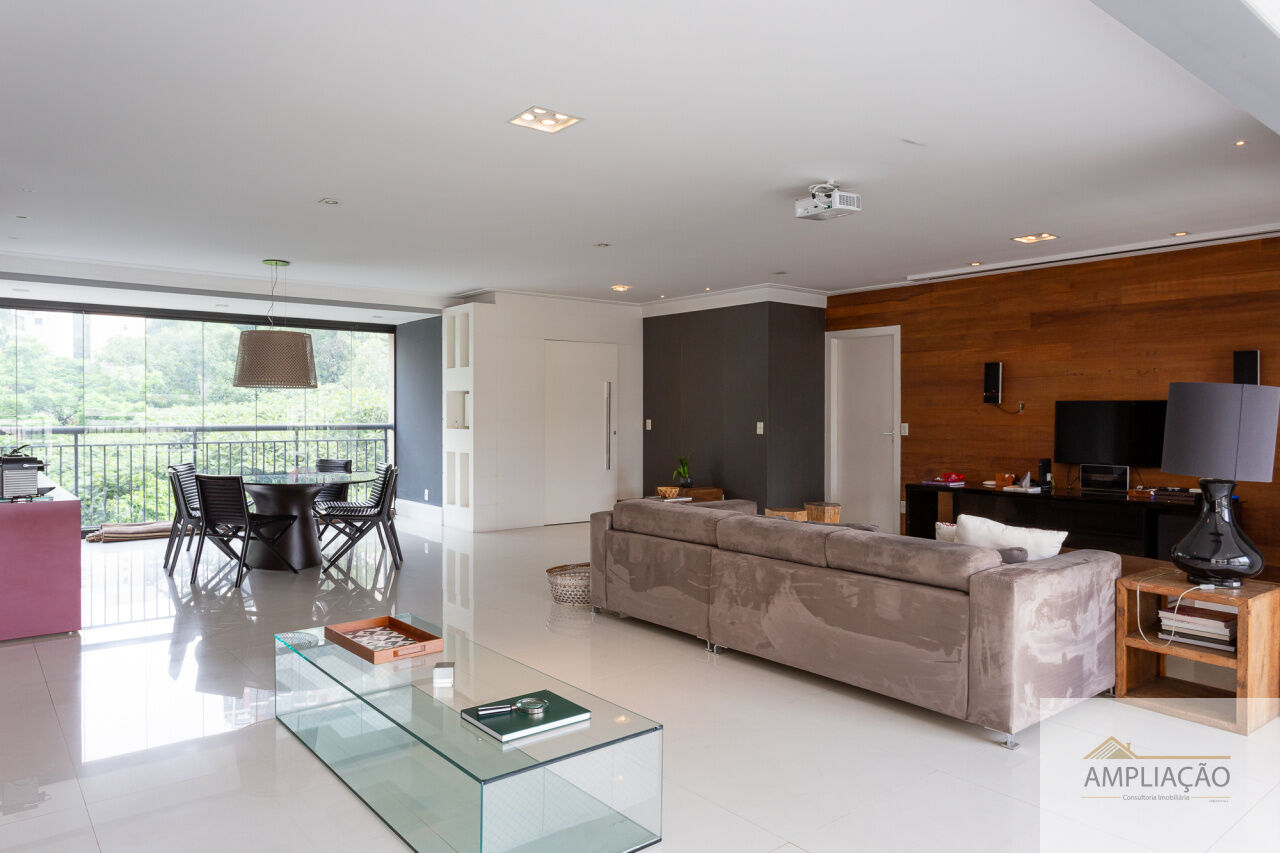 Apartamento ensolarado, com planta quadrada e muito bem distribuída, localizado em uma das regiões mais valorizadas da cidade, próximo à escola Avenues e aos shoppings Morumbi, Parque da Cidade e Market Place, oferecendo praticidade e excelente qualidade de vida. Com 207 m² de área útil, o imóvel conta com hall social privativo e elevador codificado, garantindo exclusividade e segurança desde a chegada. O living amplo para três ambientes se integra harmoniosamente às salas de almoço e jantar e aos terraços, criando espaços agradáveis para convívio e recepção. Possui lavabo, escritório, quatro dormitórios confortáveis, sendo duas suítes, além de copa, cozinha funcional, área de serviço e dependência de empregados. O apartamento dispõe ainda de quatro vagas de garagem e depósito privativo, reforçando a comodidade no dia a dia. Inserido em um condomínio completo, praticamente um clube, oferece uma infraestrutura de lazer e serviços incomparável, com aulas de natação e academia com personal já inclusas no valor do condomínio, além de opções como futebol, ballet, pilates, yoga e música. Conta também com spa com salão e massagens, sauna, piscinas adulto, infantil e aquecida com raia, baby care, pet care, espaço pizza, espaço gourmet, salões de festas, serviços de lavagem de carros e mercadinho 24 horas. Um imóvel que reúne conforto, lazer, conveniência e excelente custo-benefício, ideal para quem busca viver bem com toda a família.