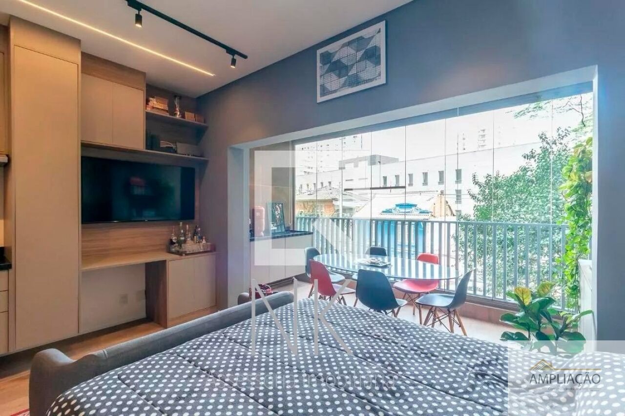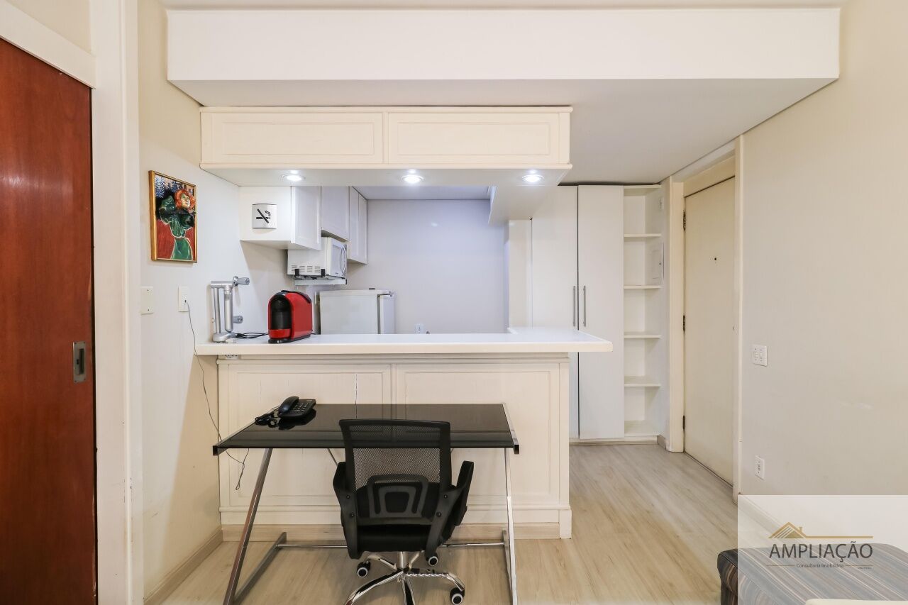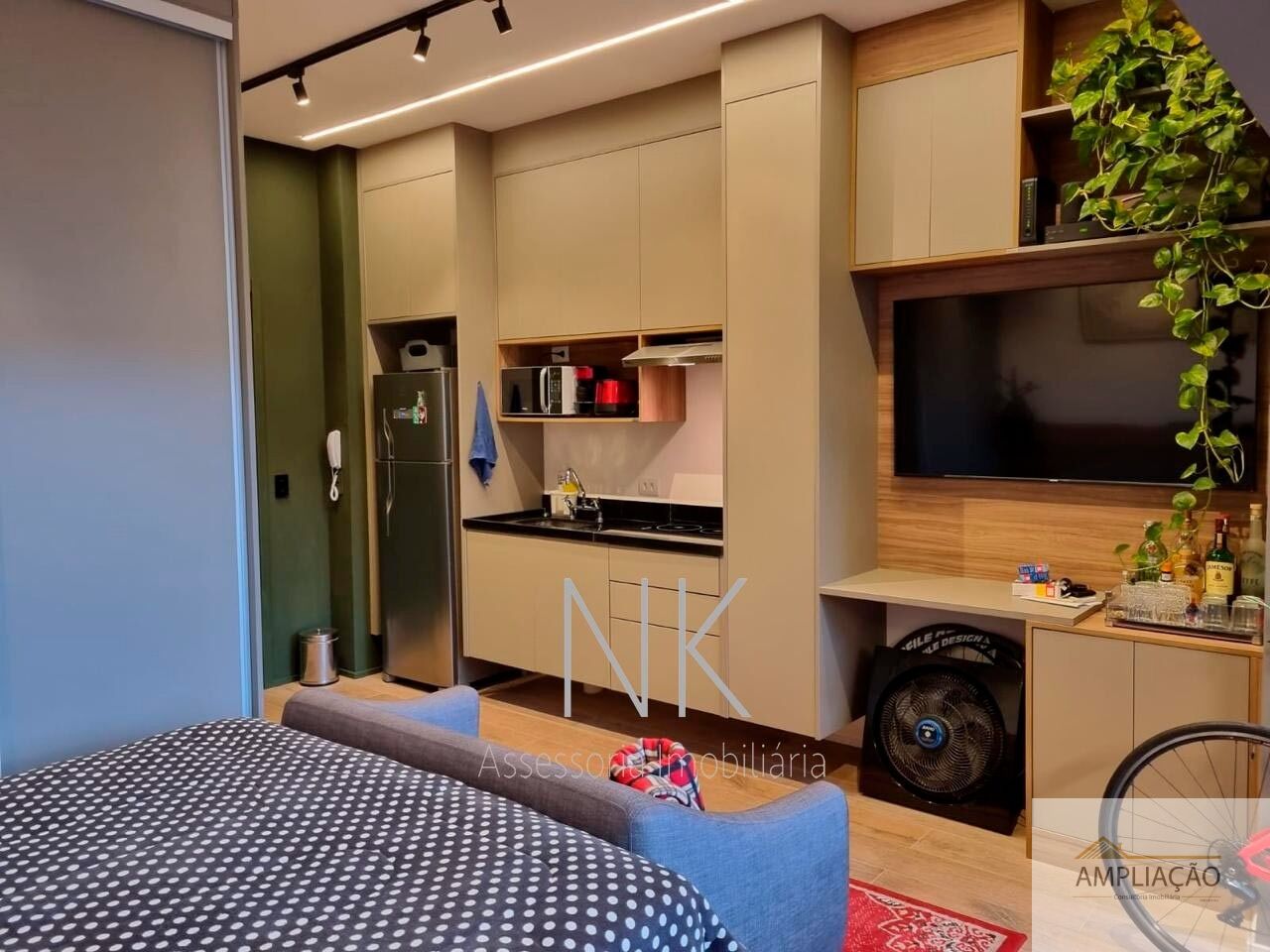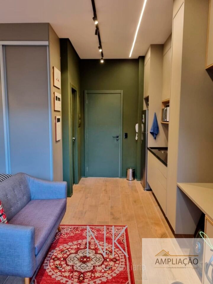 Studio moderno e funcional, com pé direito duplo e acabamento de alto padrão, ideal para quem busca praticidade sem abrir mão do conforto. Com 33 m² de área privativa, o imóvel conta com móveis embutidos da Idelli em todos os ambientes ? banheiro, cozinha, quarto, sala e varanda ?, além de ar-condicionado, eletrodomésticos completos, mesa de jantar com cadeiras, sofá, cama box, fechadura digital biométrica e sistema de iluminação inteligente integrado com assistente Alexa e interruptores Steck. O studio possui varanda integrada ao dormitório, usada como escritório, e um dormitório conectado à cozinha e sala de TV, garantindo integração e aproveitamento eficiente dos espaços, além de banheiro privativo. Inclui uma vaga fixa de garagem e oferece infraestrutura de condomínio completa, com piscina, espaço gourmet, academia e salão de festas, unindo conforto, tecnologia e lazer em uma localização privilegiada, próxima ao metrô.