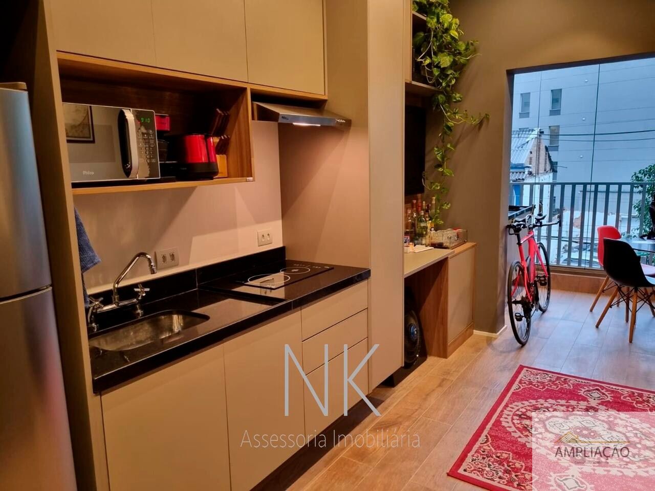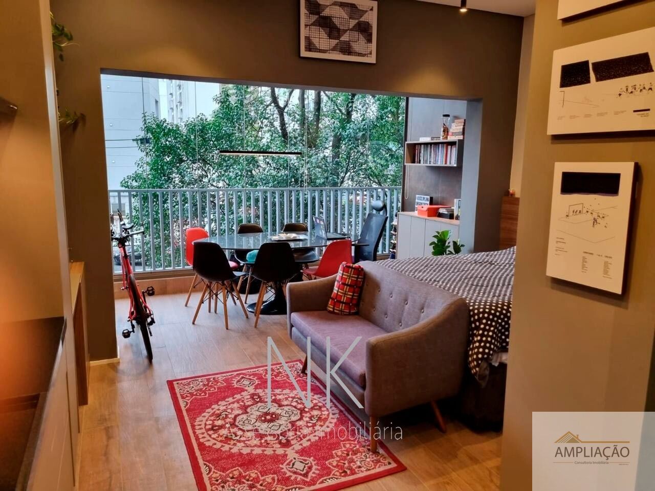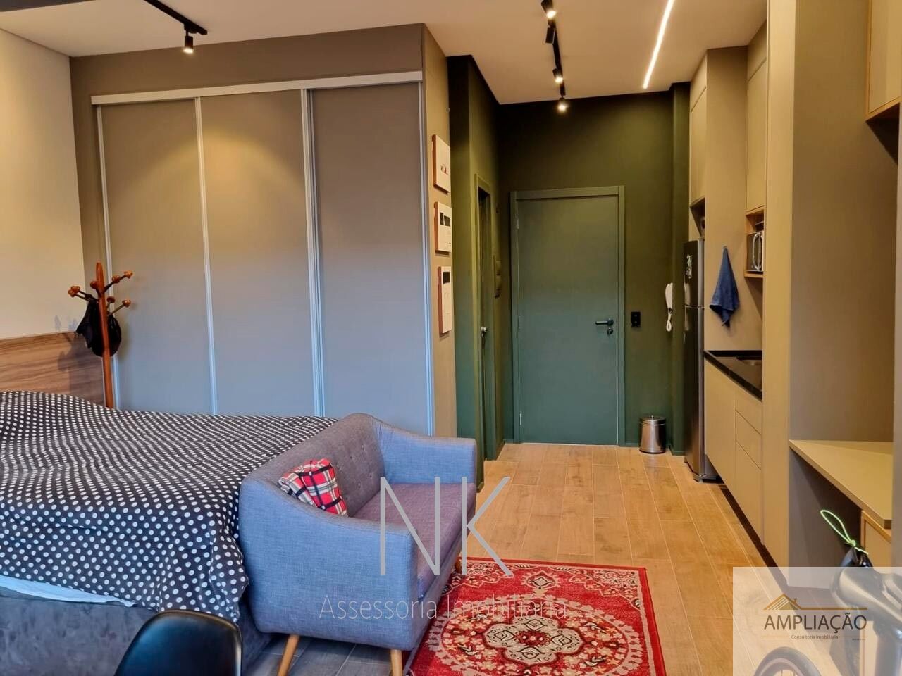 Studio moderno e funcional, com pé direito duplo e acabamento de alto padrão, ideal para quem busca praticidade sem abrir mão do conforto. Com 33 m² de área privativa, o imóvel conta com móveis embutidos da Idelli em todos os ambientes ? banheiro, cozinha, quarto, sala e varanda ?, além de ar-condicionado, eletrodomésticos completos, mesa de jantar com cadeiras, sofá, cama box, fechadura digital biométrica e sistema de iluminação inteligente integrado com assistente Alexa e interruptores Steck. O studio possui varanda integrada ao dormitório, usada como escritório, e um dormitório conectado à cozinha e sala de TV, garantindo integração e aproveitamento eficiente dos espaços, além de banheiro privativo. Inclui uma vaga fixa de garagem e oferece infraestrutura de condomínio completa, com piscina, espaço gourmet, academia e salão de festas, unindo conforto, tecnologia e lazer em uma localização privilegiada, próxima ao metrô.