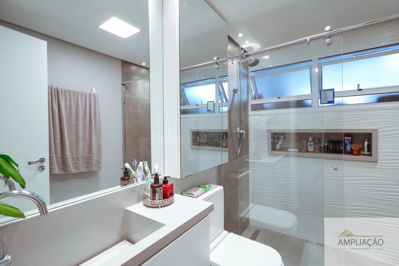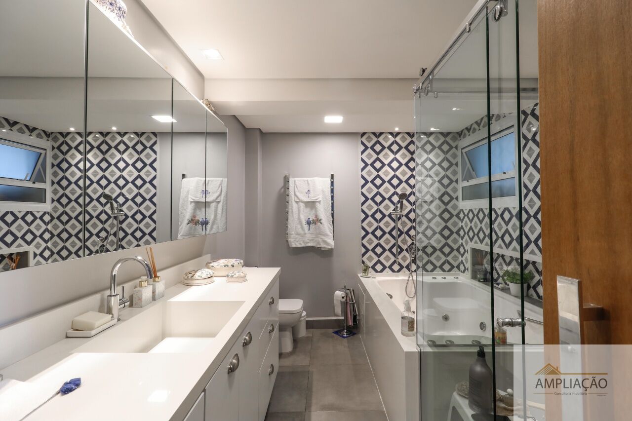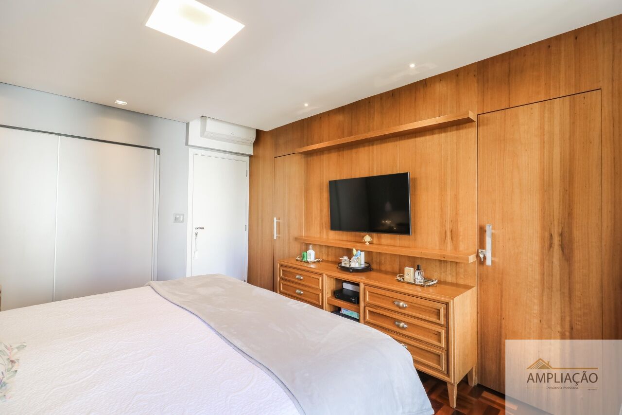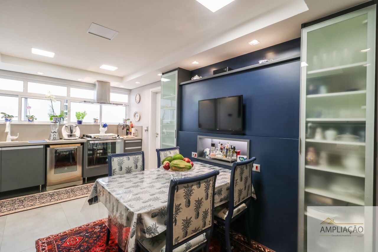 A área social é composta por sala de estar, sala de TV, sala de jantar e lavabo. Na área íntima, são 3 dormitórios, sendo 1 suíte com closet. A cozinha conta com copa, além de área de serviço e dependência de empregados. O imóvel possui ainda 1 vaga de garagem.