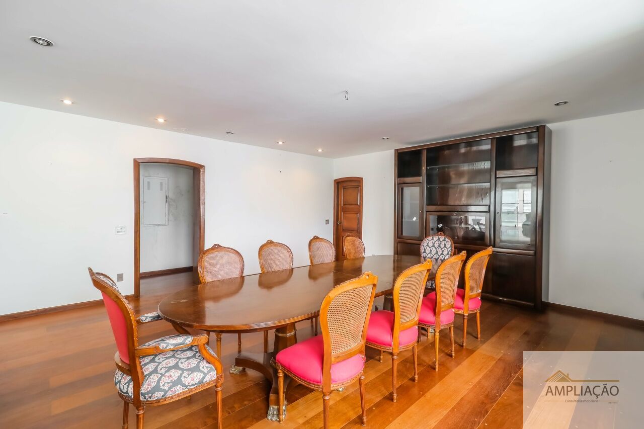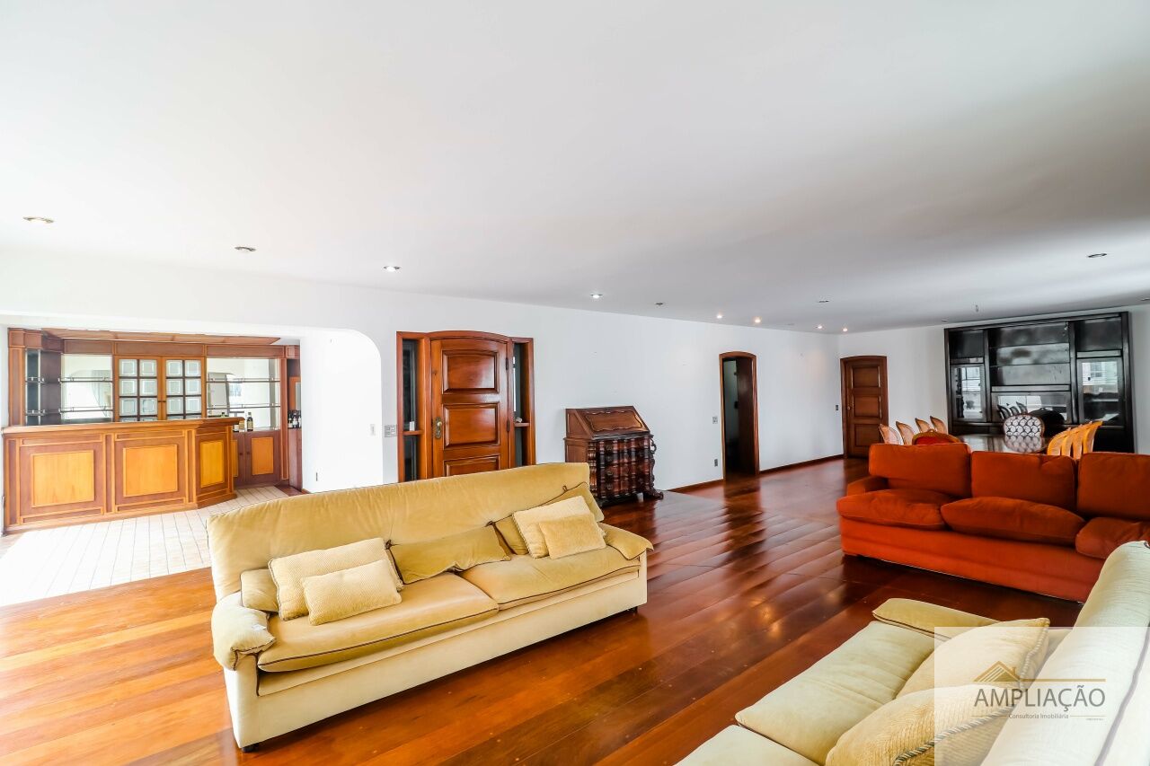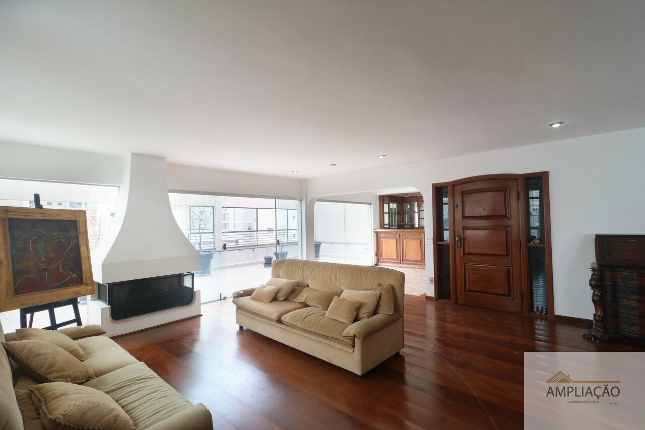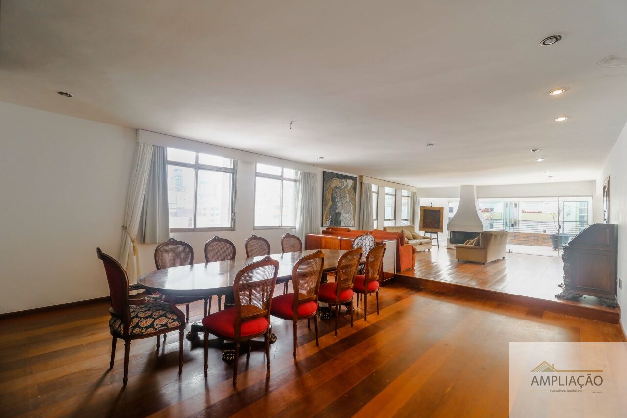 Localizada em área com fácil acesso a uma ampla variedade de comércio, cafés, parques e escolas, esta penthouse é perfeita para quem busca um estilo de vida prático, agradável e sofisticado. Com 473 m² de área privativa, o apartamento se destaca pelos espaços amplos e pelo incrível terraço incorporado ao living, criando um ambiente integrado e versátil, que também abriga um escritório de 80 m² que pode ser transformado em home theater, academia ou qualquer outro espaço que desejar. O imóvel conta com lavabo, sala de estar com lareira, sala de jantar, três quartos, incluindo uma suíte master e uma suíte americana ? dois quartos compartilhando um banheiro central ? além de cozinha funcional. Com a possibilidade de reorganização, pode facilmente se tornar um apartamento com três suítes. O condomínio oferece salão de festas e o imóvel dispõe de quatro vagas de garagem, unindo conforto, exclusividade e praticidade em um endereço privilegiado.