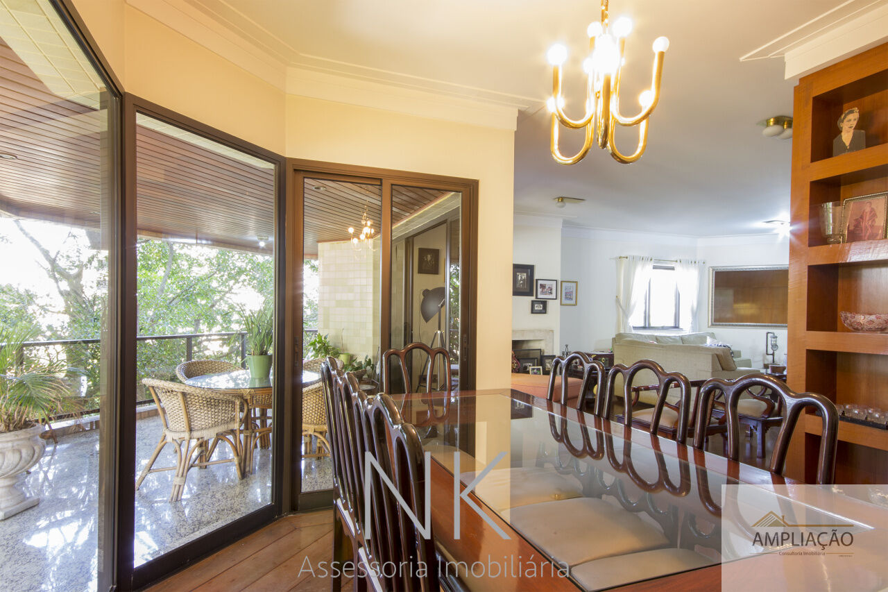 Localizado em uma das regiões mais charmosas de São Paulo, este apartamento une conforto, praticidade e exclusividade, oferecendo fácil acesso a toda a infraestrutura do bairro. Com 299 m² de área privativa, o imóvel apresenta sala de estar com lareira, sala de jantar, sala de TV, lavabo e um terraço generoso com vista para as copas das árvores, criando ambientes amplos, iluminados e acolhedores. Conta com quatro suítes, incluindo uma suíte master com hidromassagem, garantindo conforto e privacidade. A área externa oferece jardim, espaço gourmet completo, quadra poliesportiva e piscina, proporcionando lazer e qualidade de vida sem sair de casa. Um endereço que combina elegância, tranquilidade e conveniência em cada detalhe.