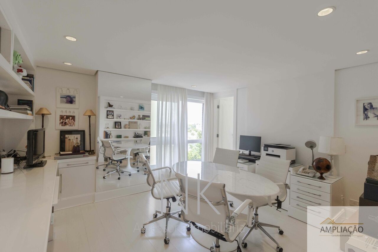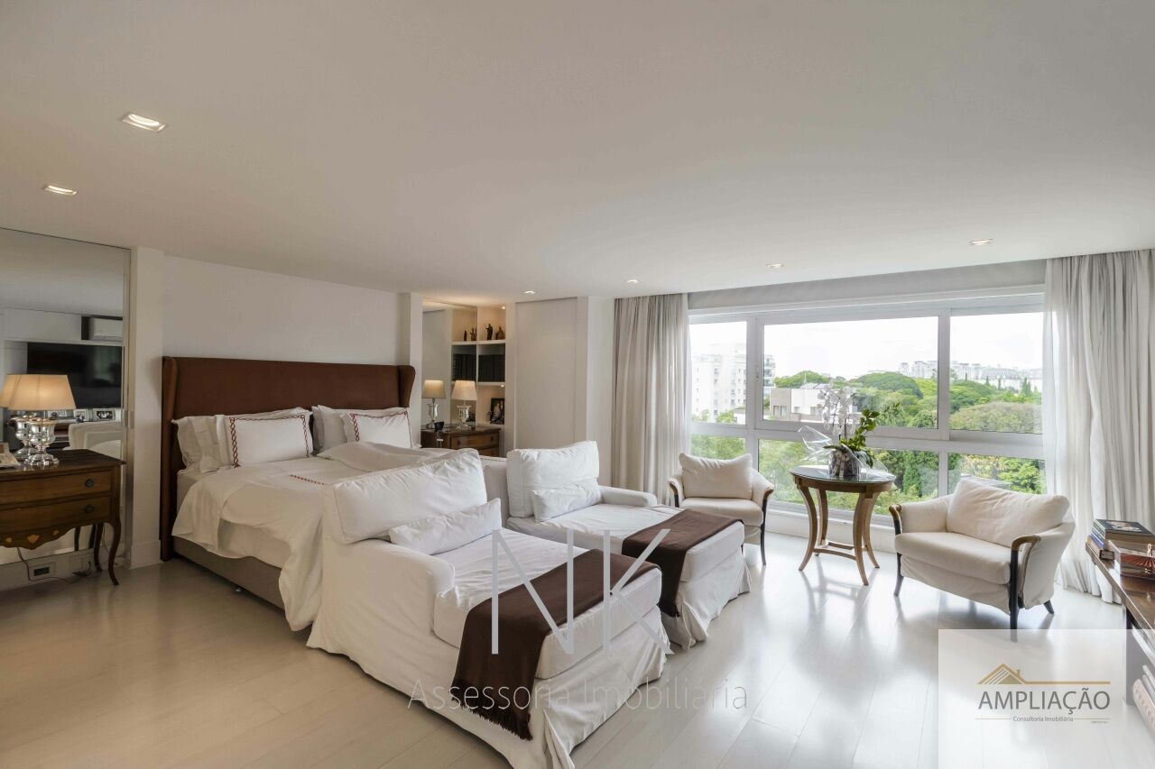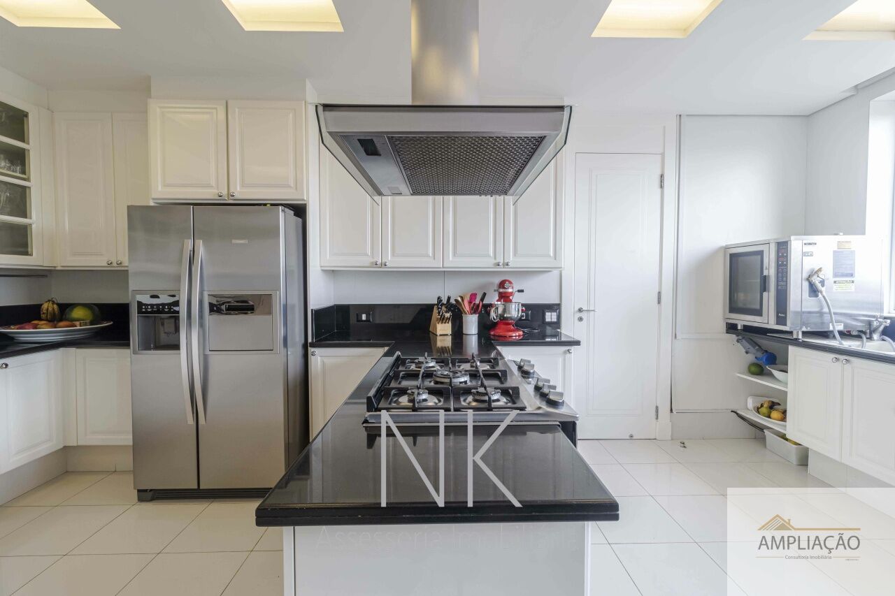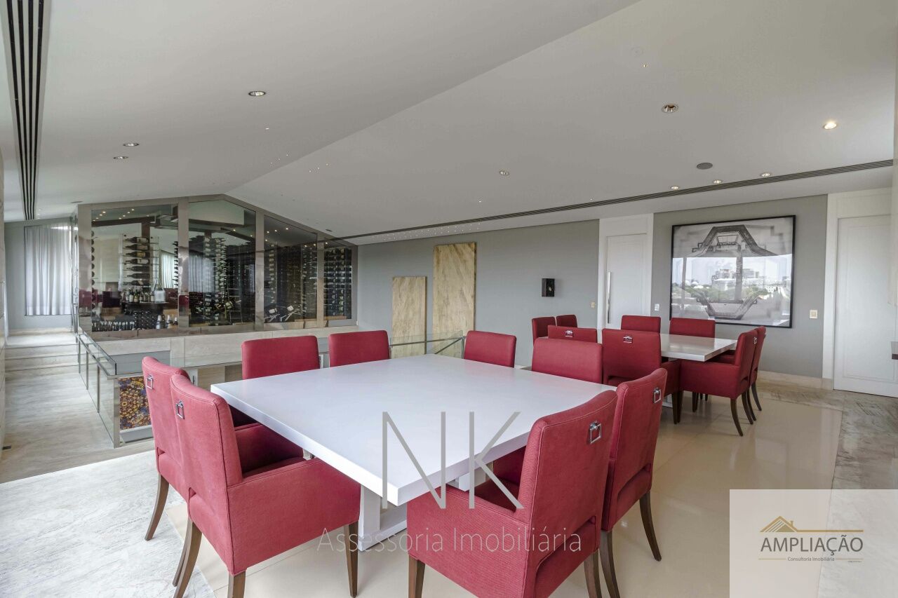 Este apartamento é um verdadeiro exemplo de sofisticação, conforto e espaço, pensado para quem valoriza exclusividade e bem-estar. Com living de pé direito duplo de 7 metros, o imóvel conta com lavabo, home theater com lareira, sala de jantar também com lareira e ambientes amplos que privilegiam iluminação e ventilação natural. A área íntima dispõe de quatro suítes, incluindo uma suíte master com dois walking closets, além de despensa, louceiro e três quartos para empregados, um deles equipado com cama de casal. A cozinha é prática e funcional, complementada por copa, e o apartamento inclui seis vagas de garagem e depósito. O condomínio oferece infraestrutura completa de lazer e segurança, com área verde, academia, spa com sauna úmida e sala de massagem, quadra poliesportiva, brinquedoteca e dez vagas para visitantes, garantindo conforto, exclusividade e qualidade de vida em um endereço privilegiado.