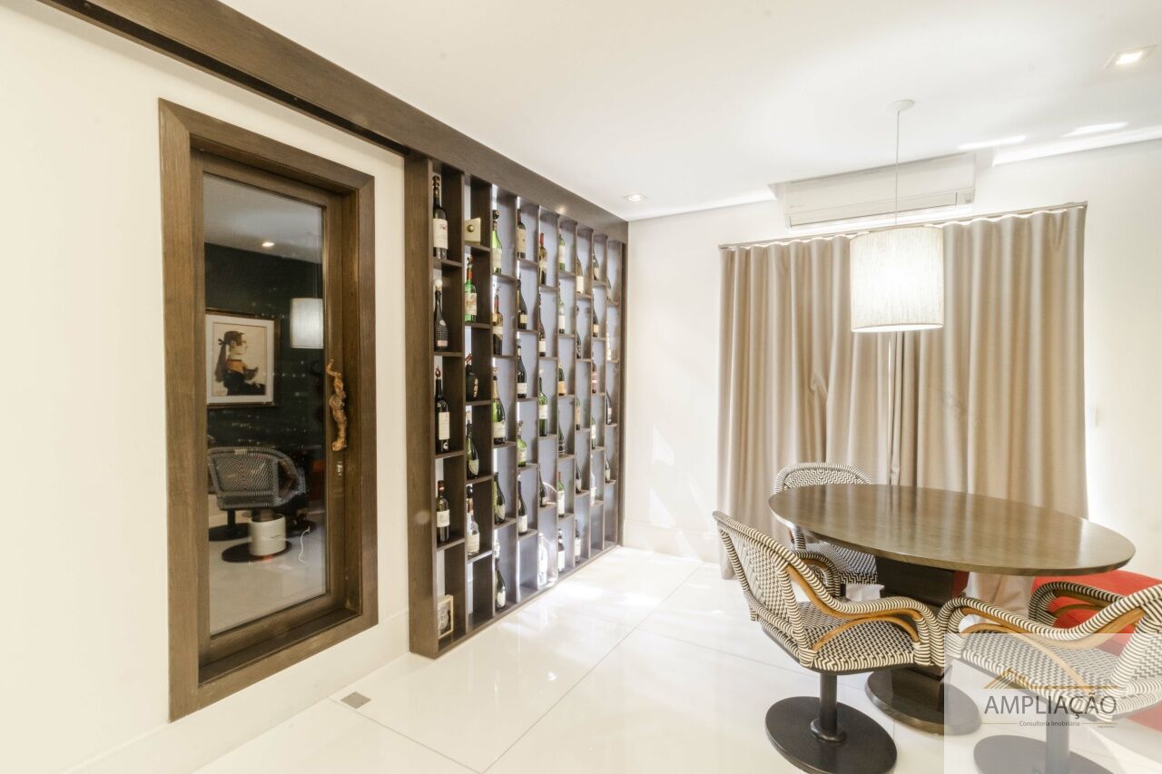Conta com 4 suítes, incluindo uma master com 2 closets, 2 banheiros e terraço. Para os amantes de vinho, há 2 adegas climatizadas para 800 garrafas. A área de lazer é completa, com gourmet com churrasqueira e forno de pizza, piscina aquecida, sauna e academia.