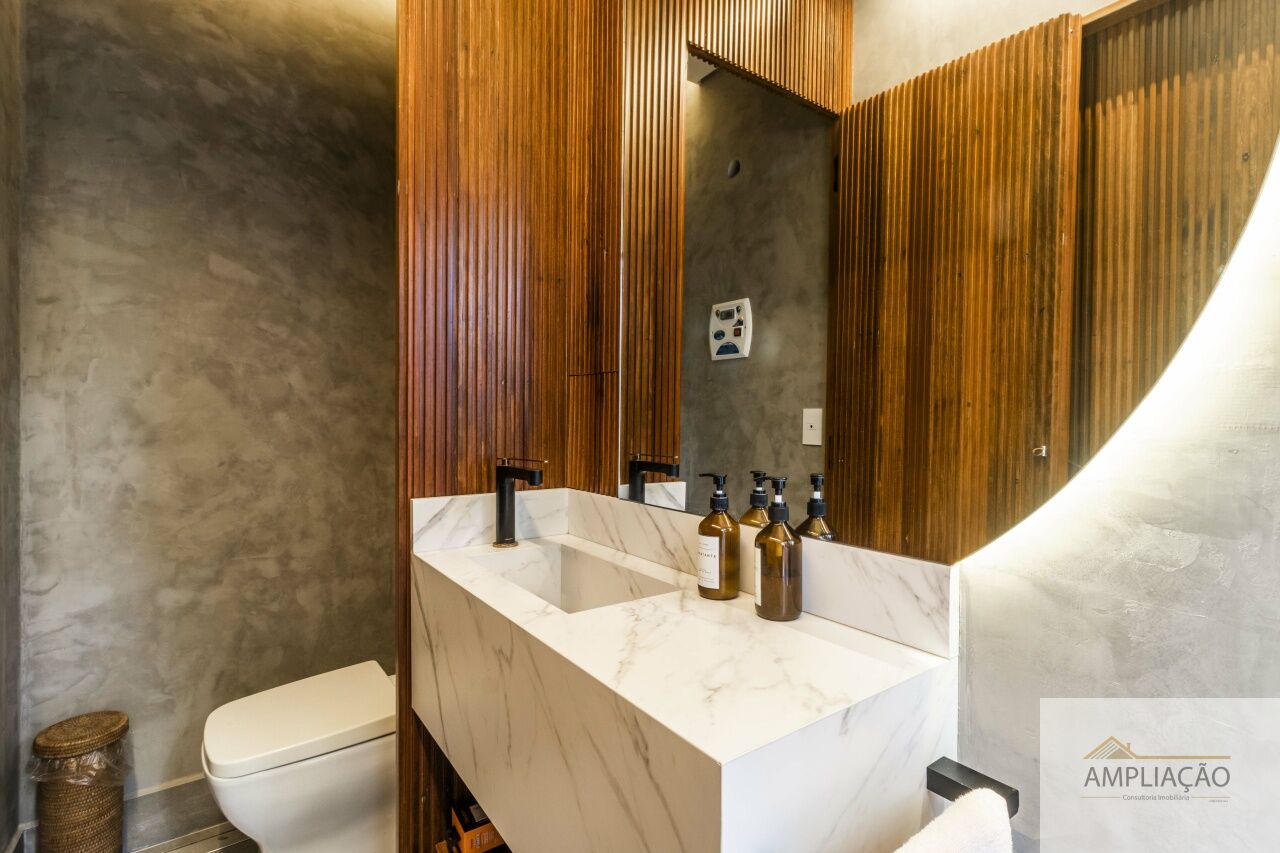 Casa luxuosa em condomínio com segurança total, oferecendo o conforto de uma casa de rua em um ambiente exclusivo. Com 580 m² de terreno e 420 m² construídos, possui área social com pé-direito duplo, living amplo, bar, sala de TV, home theater, lavabo, copa e cozinha.