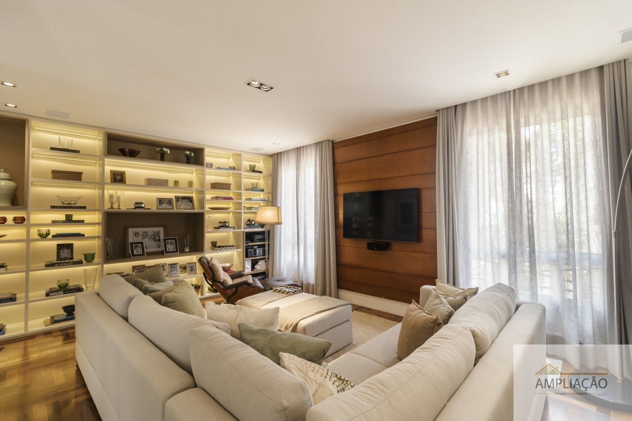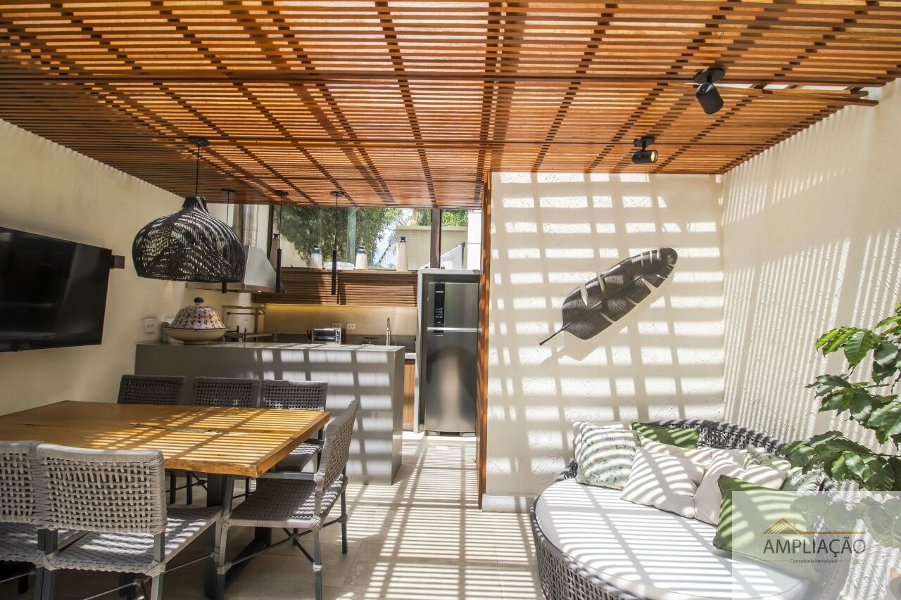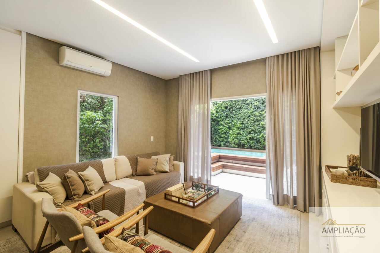 Com 586 m² de área construída, a residência oferece ambientes amplos e iluminados: