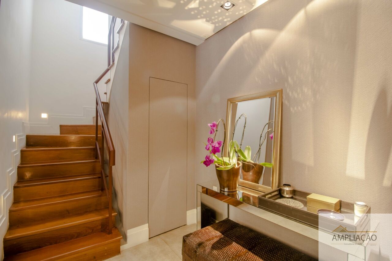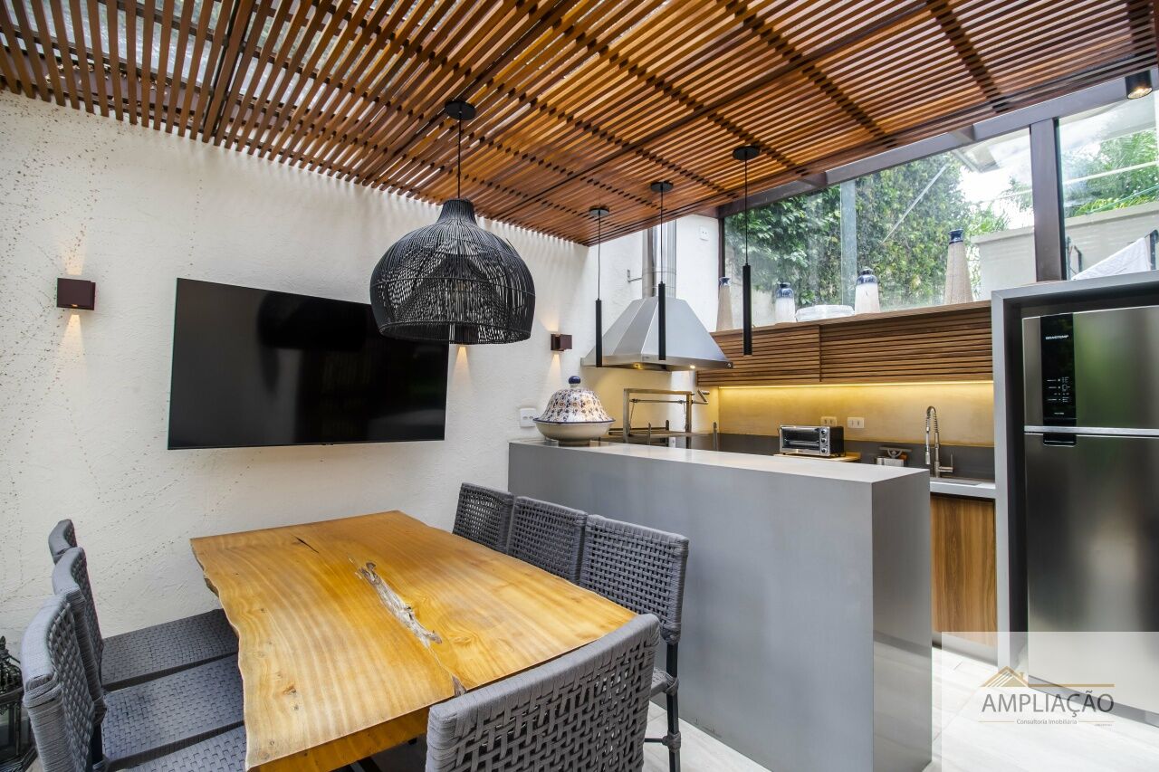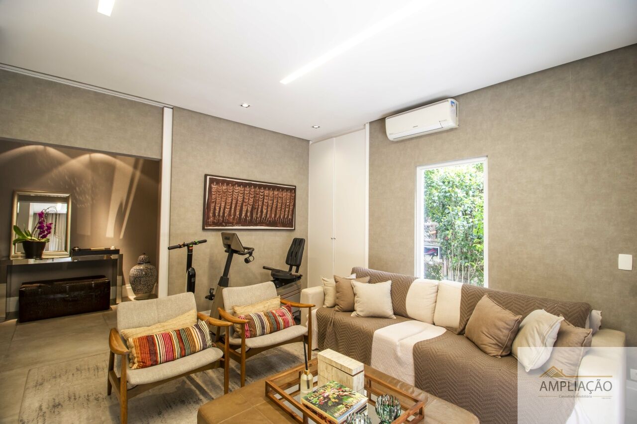 Com 586 m² de área construída, a residência oferece ambientes amplos e iluminados: