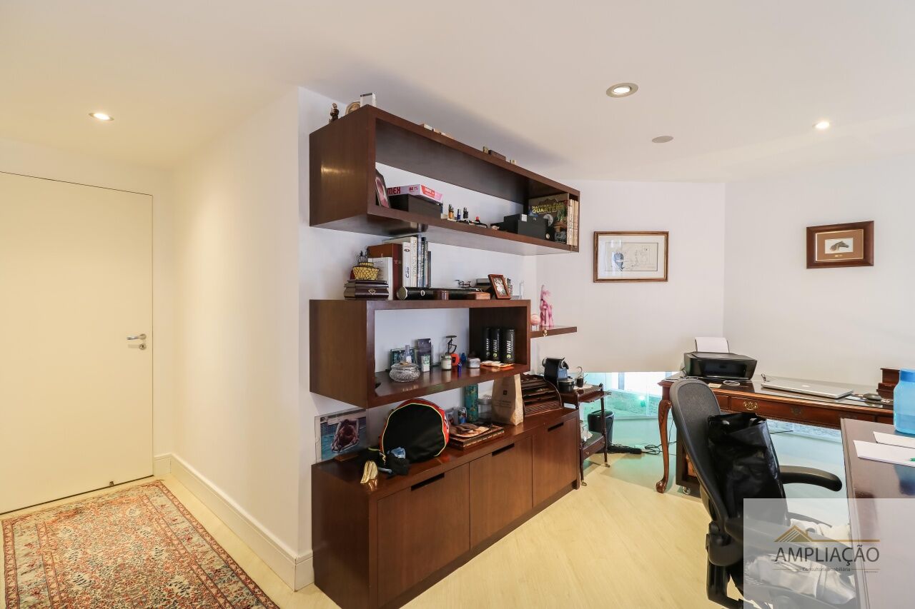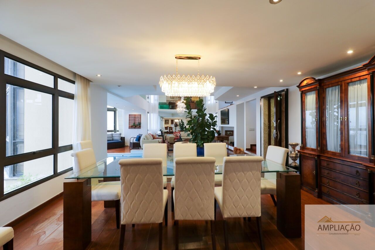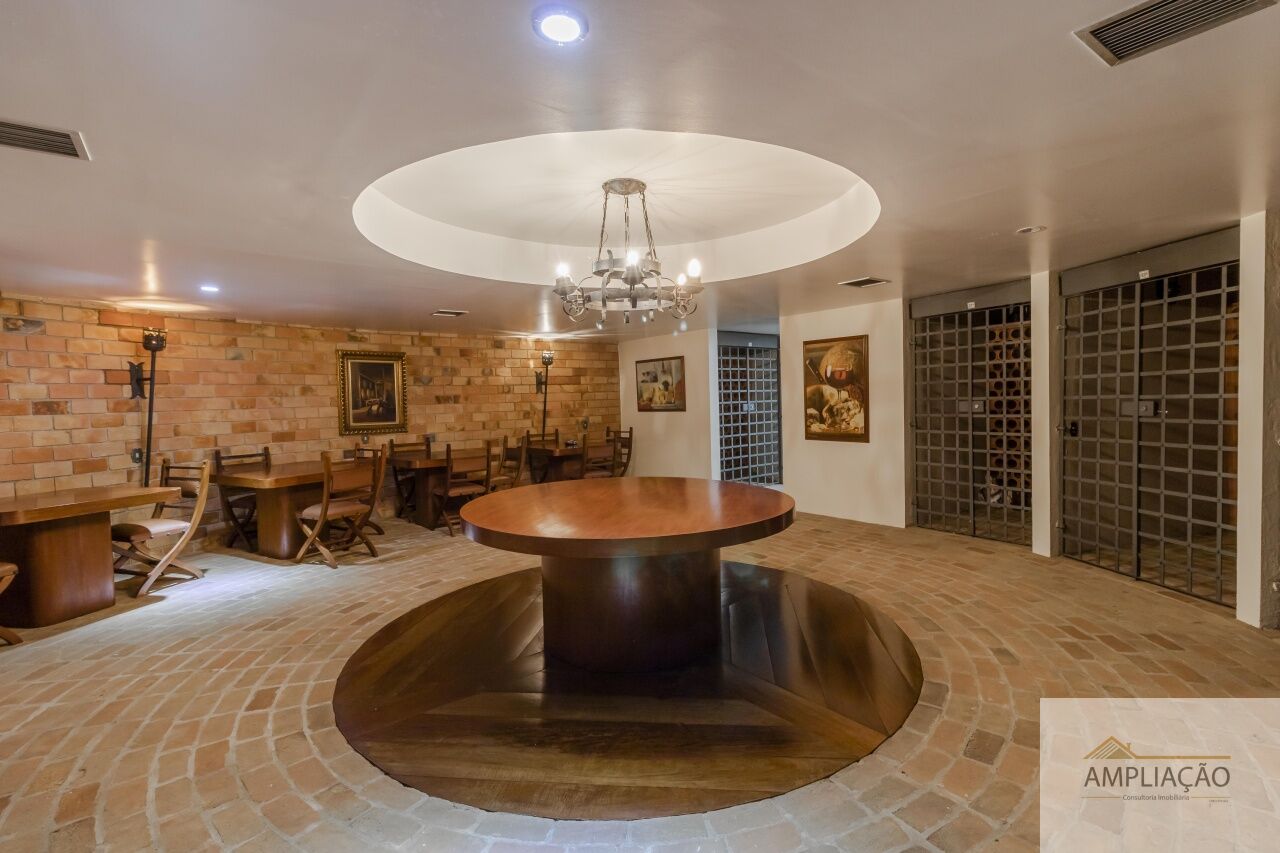 São 3 suítes, incluindo uma suíte master com hidromassagem, com possibilidade de transformar em 4 dormitórios (2 suítes). Conta ainda com sala íntima com lareira e adega, área de serviço, 2 suítes de empregada e 5 vagas de garagem.