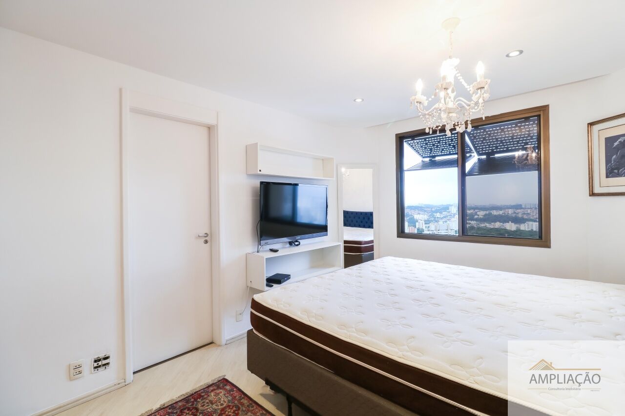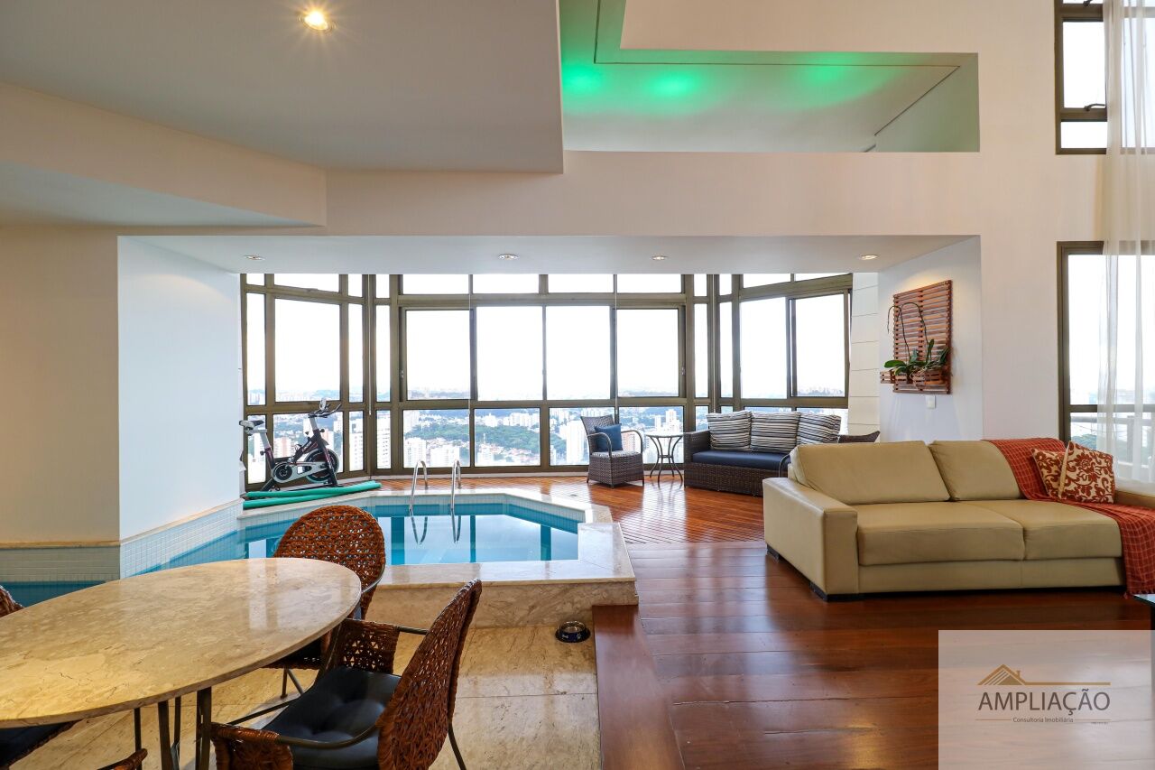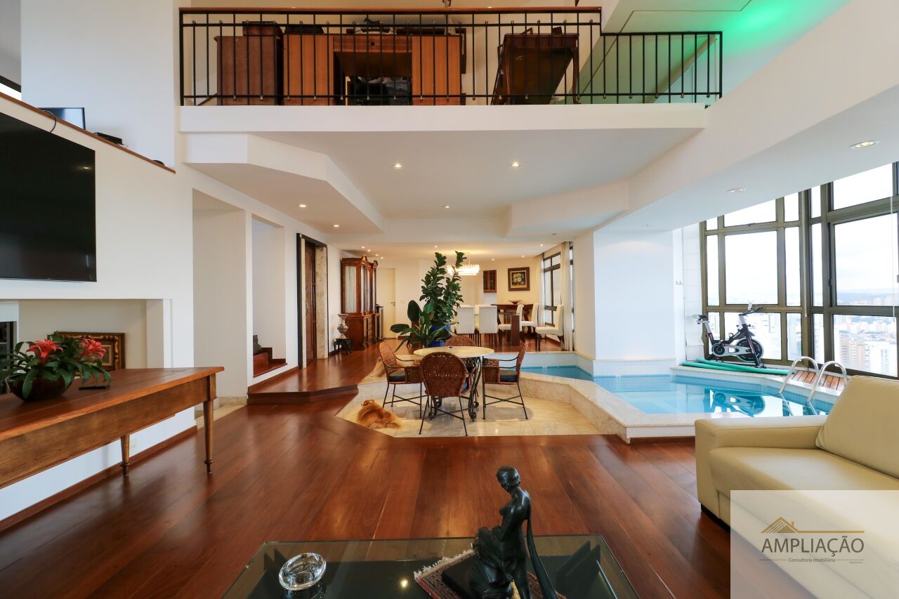 Apartamento com 339mts 3 suítes, 1 sendo master, sala intima com lareira, localizado na Vila Suzana, este apartamento oferece amplitude, luz natural e uma vista incrível. O living para 3 ambientes possui piscina privativa, além de lavabo e uma copa integrada à cozinha planejada com despensa. No mezanino, há um escritório e sala de TV.