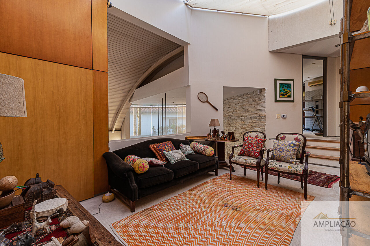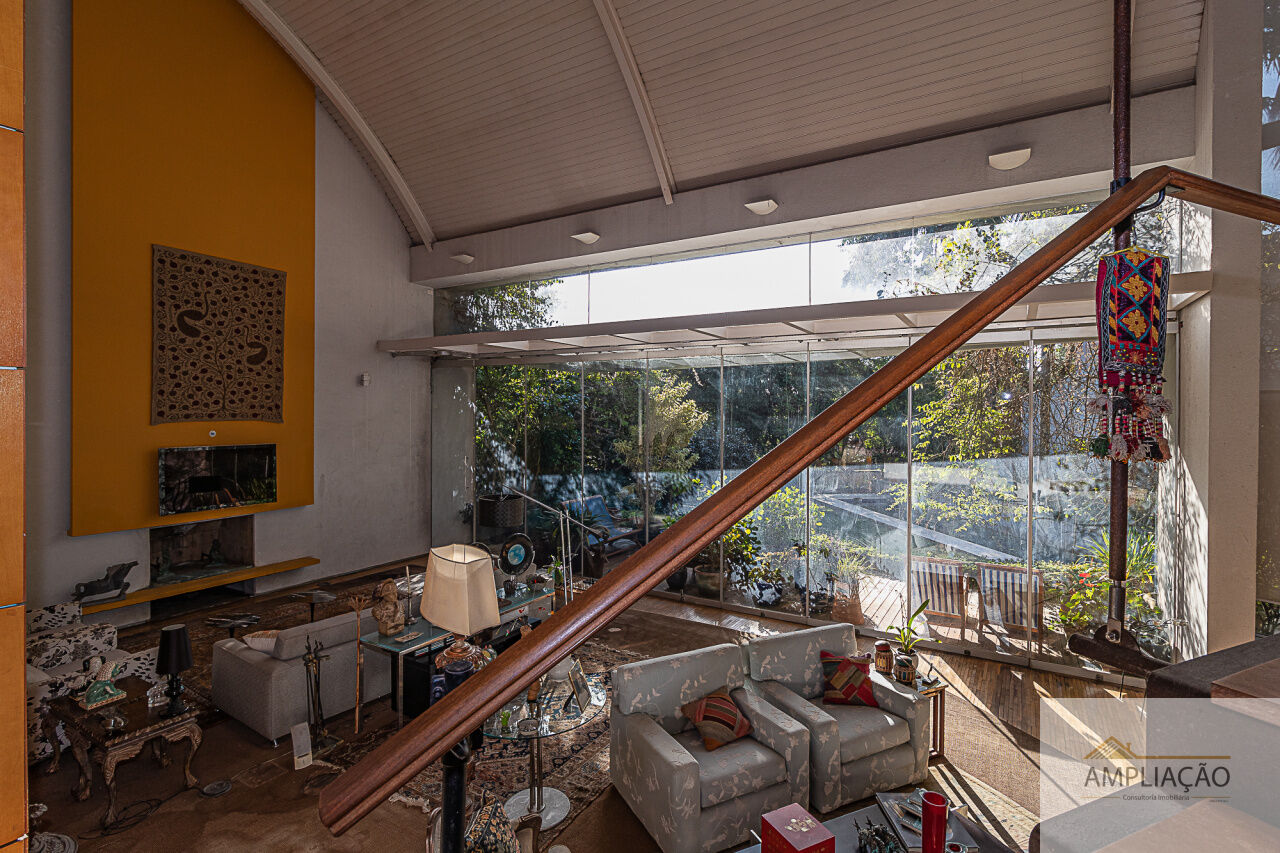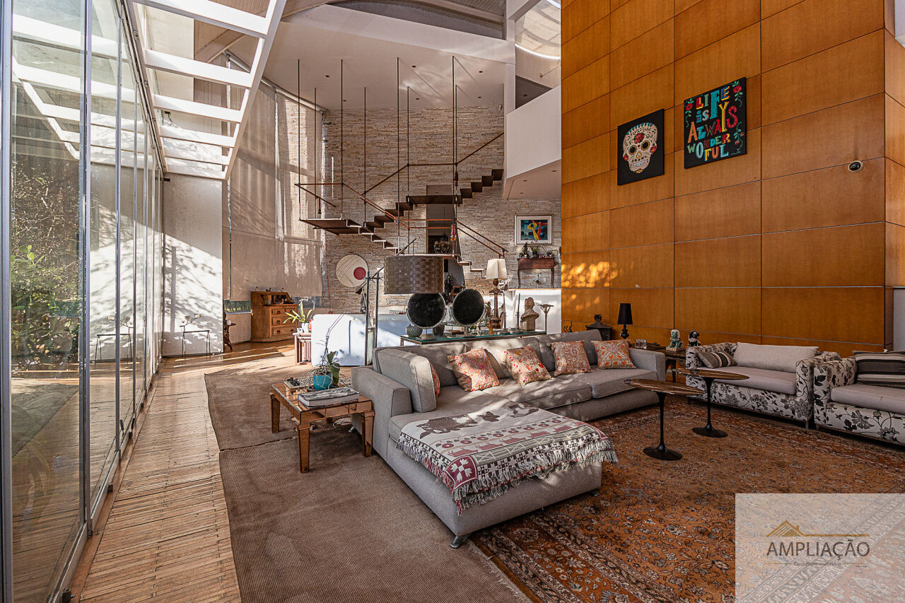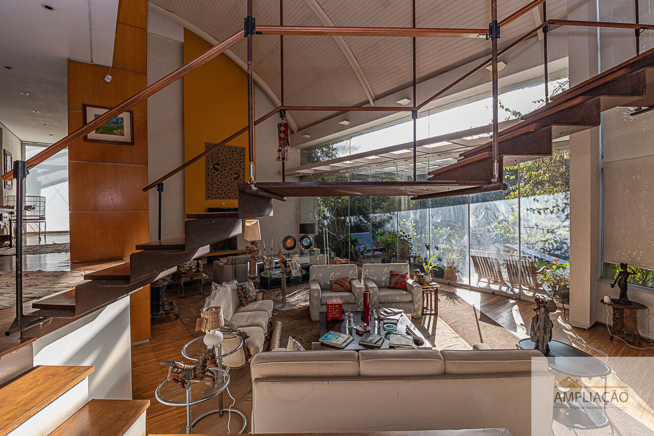 Belíssima residência com projeto de Cristina Teixeira, rodeada de verde e com fácil acesso aos shoppings e às marginais. Em um terreno de 1.200 m², com 750 m² de área construída, a casa oferece lavabo, sala de estar com lareira e pé-direito duplo totalmente envidraçado, com desnível em pedra mosaico, além de sala de jantar, escritório e home theater.