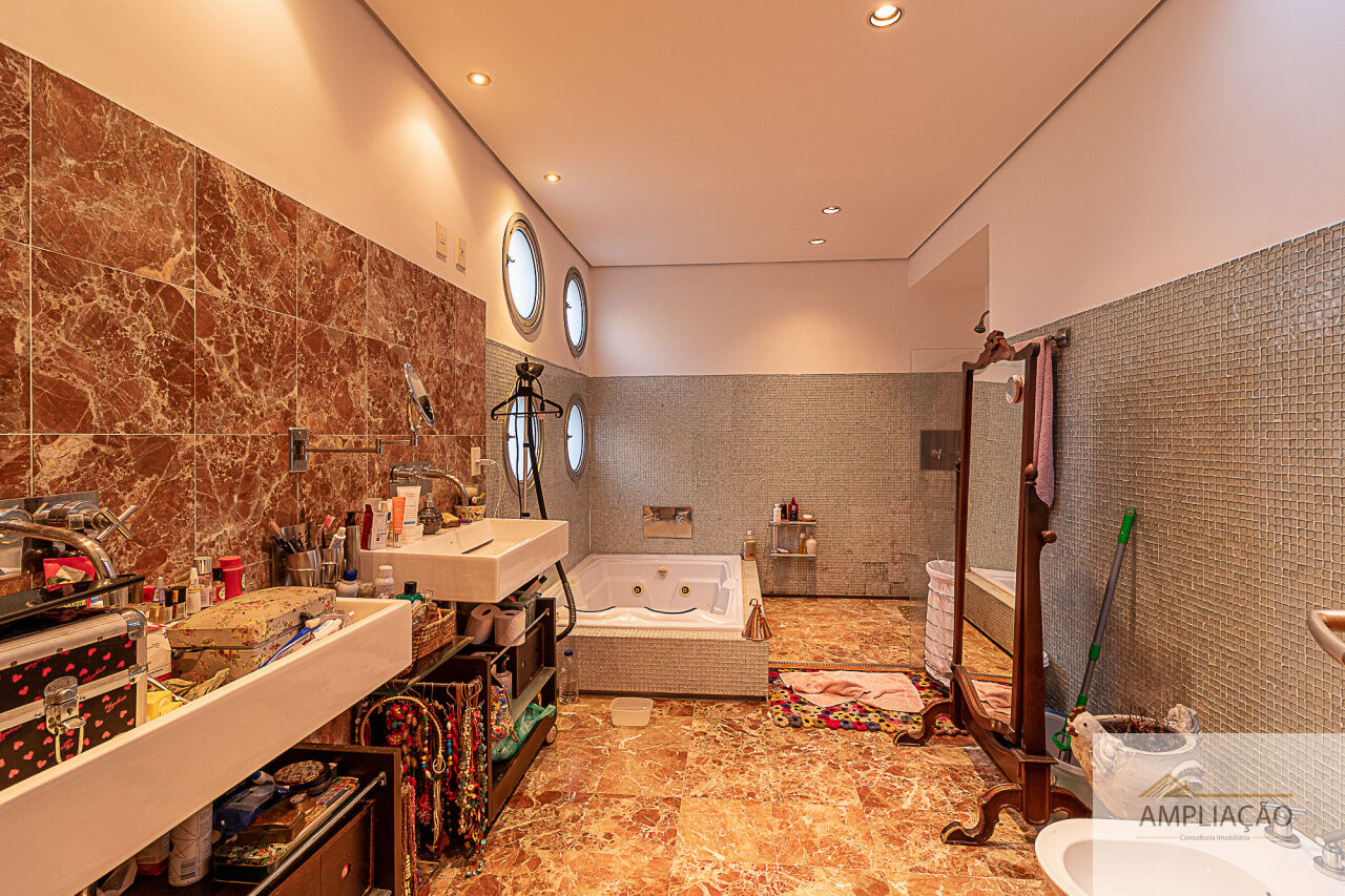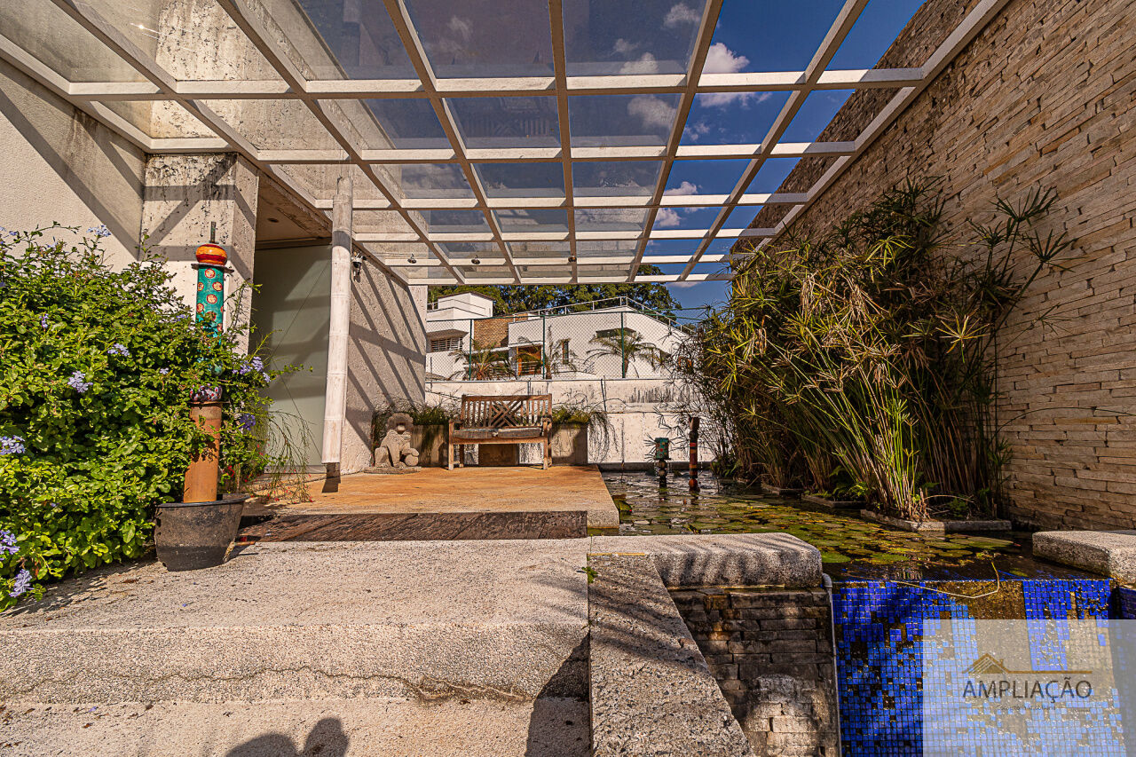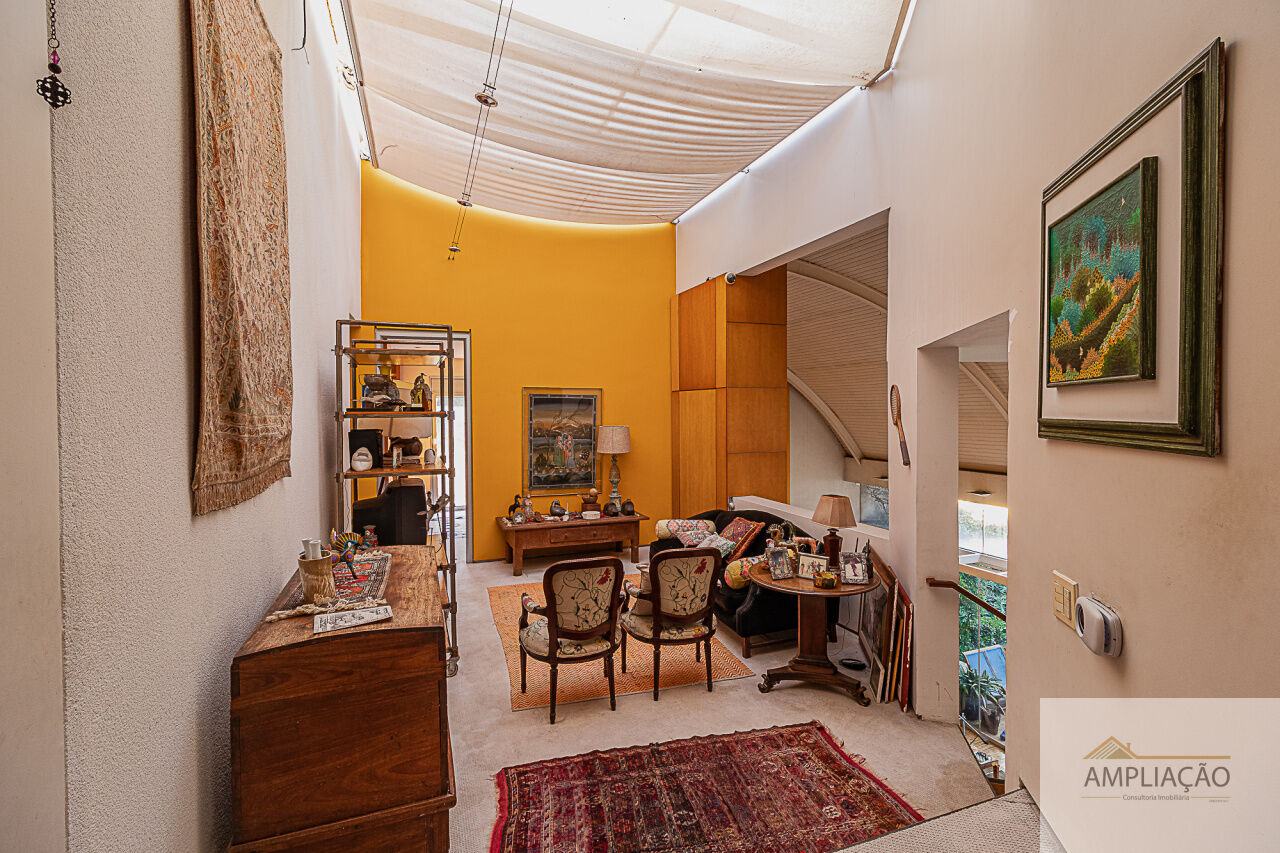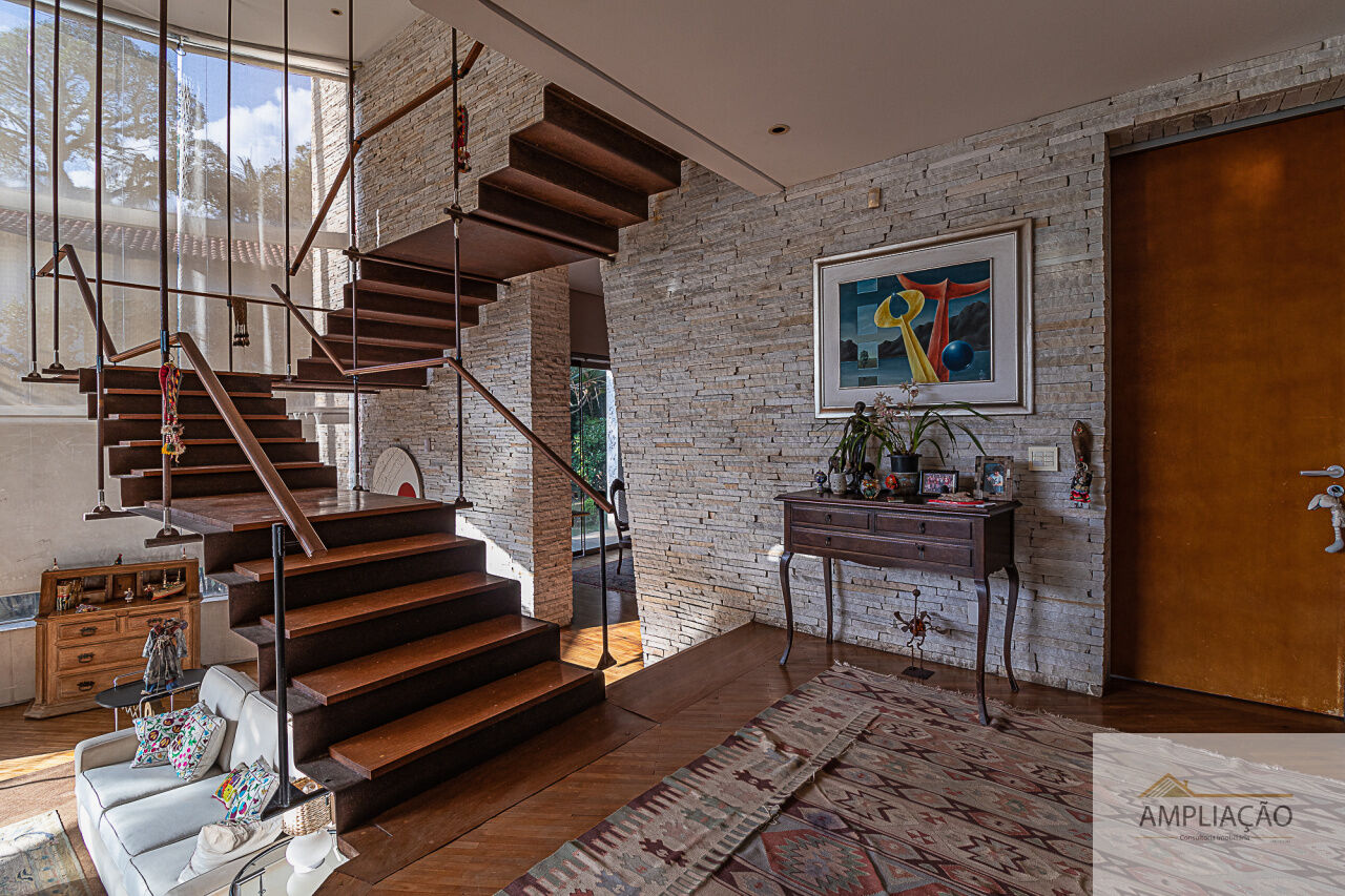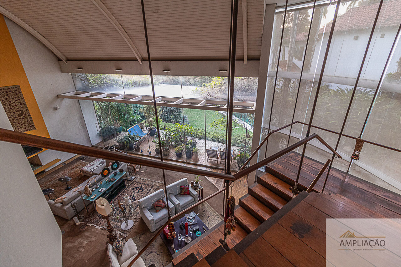 Belíssima residência com projeto de Cristina Teixeira, rodeada de verde e com fácil acesso aos shoppings e às marginais. Em um terreno de 1.200 m², com 750 m² de área construída, a casa oferece lavabo, sala de estar com lareira e pé-direito duplo totalmente envidraçado, com desnível em pedra mosaico, além de sala de jantar, escritório e home theater.