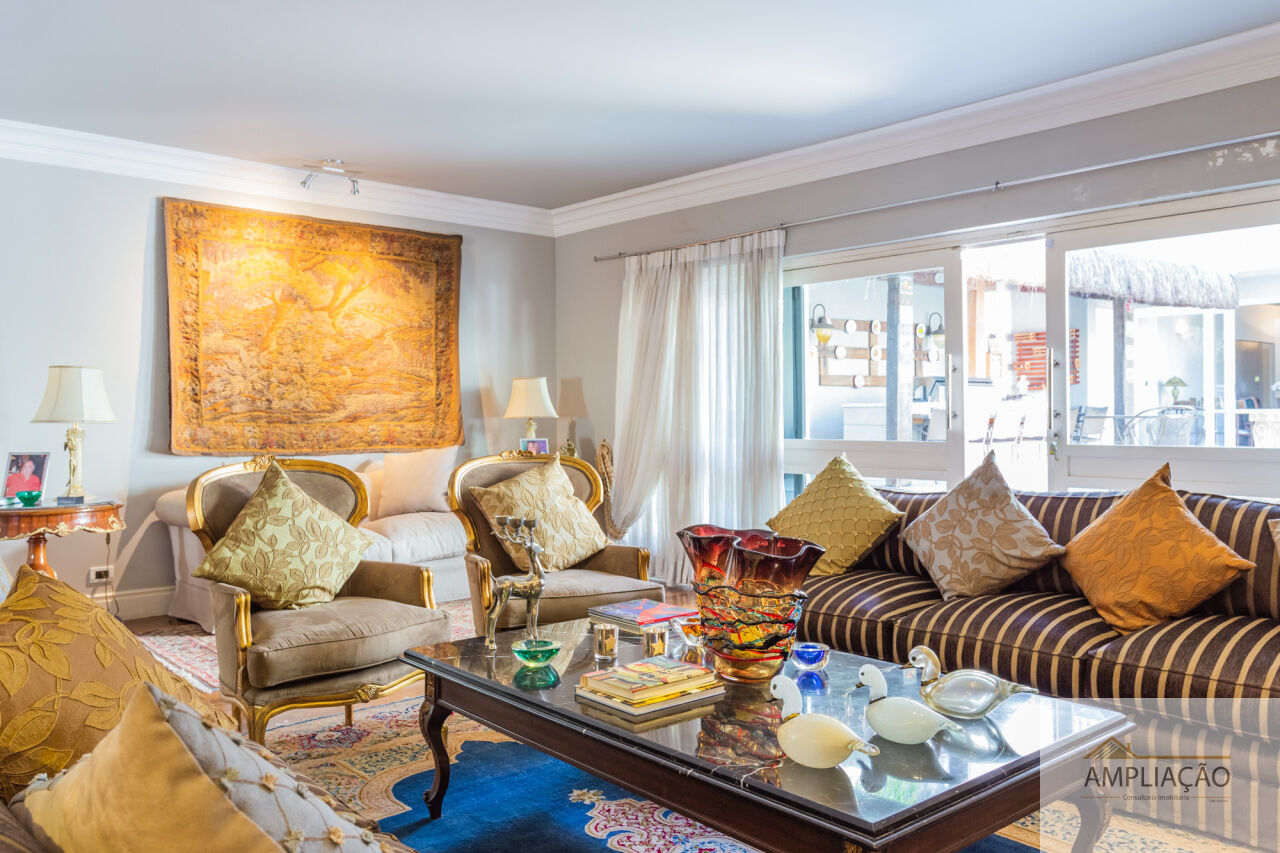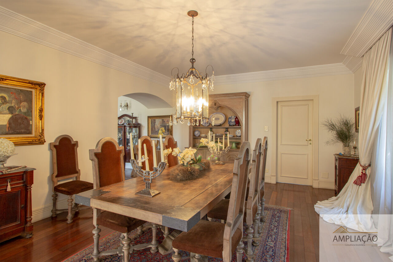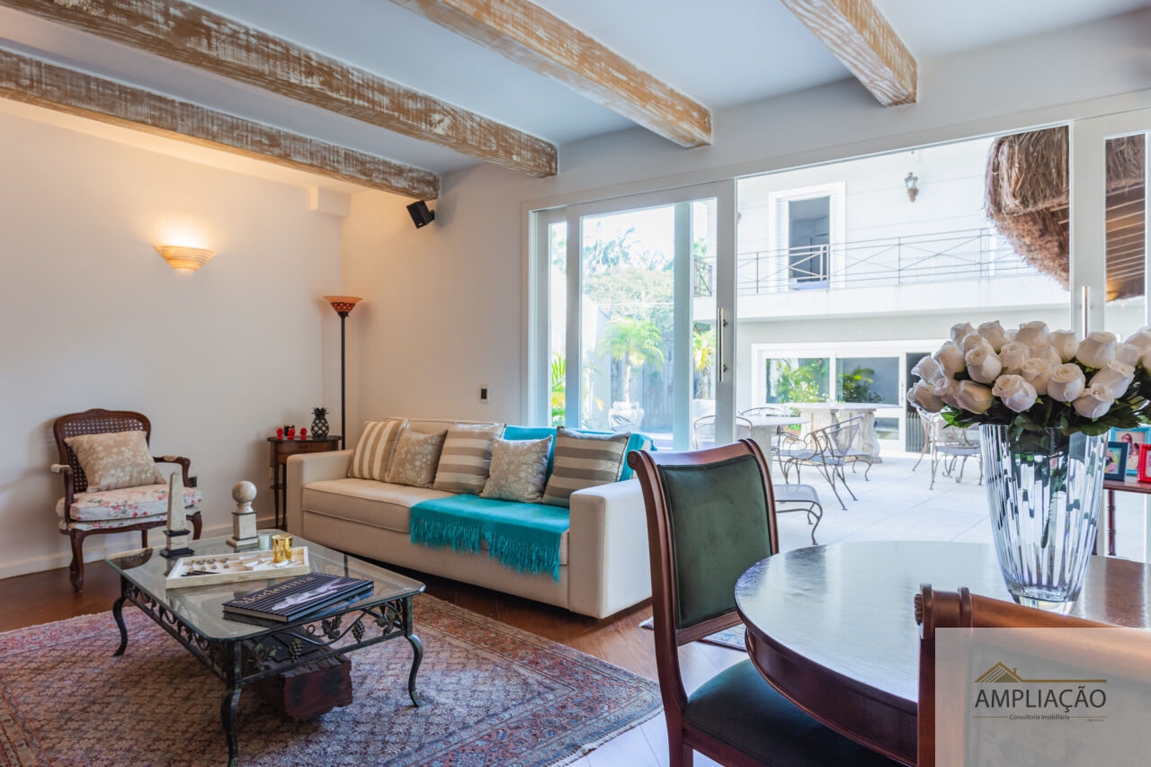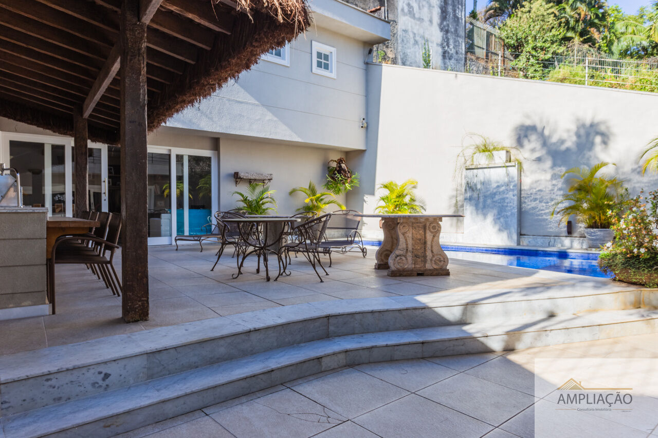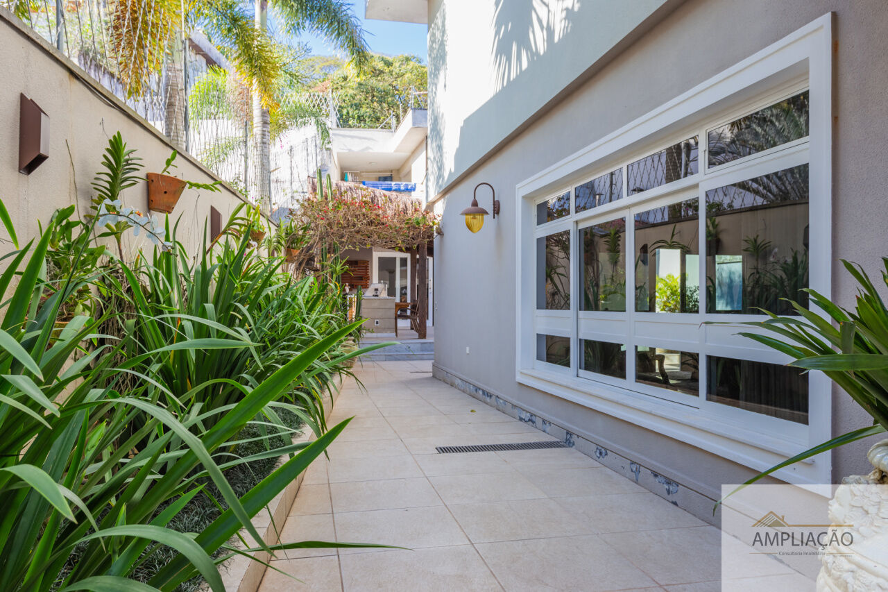 Em um terreno de 650 m² e 500 m² de área construída, conta com lavabo, escritório com terraço, 4 suítes com closets, cozinha, dependência para funcionários e ambientes climatizados.