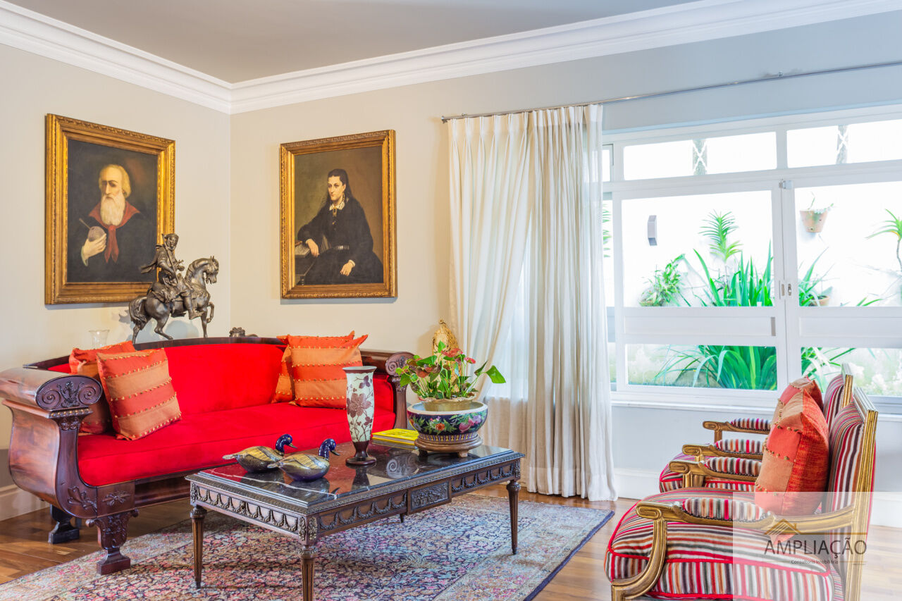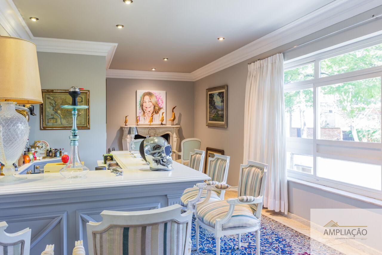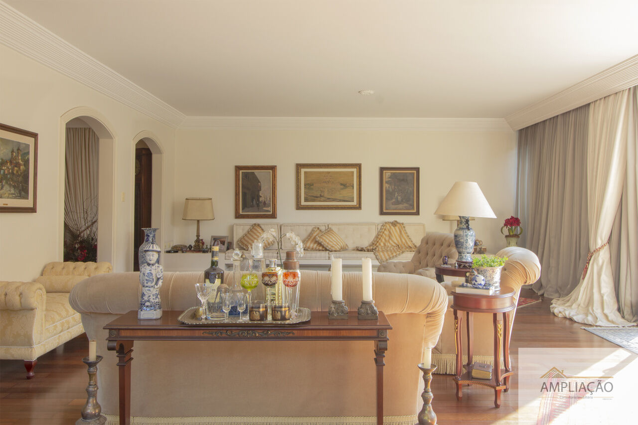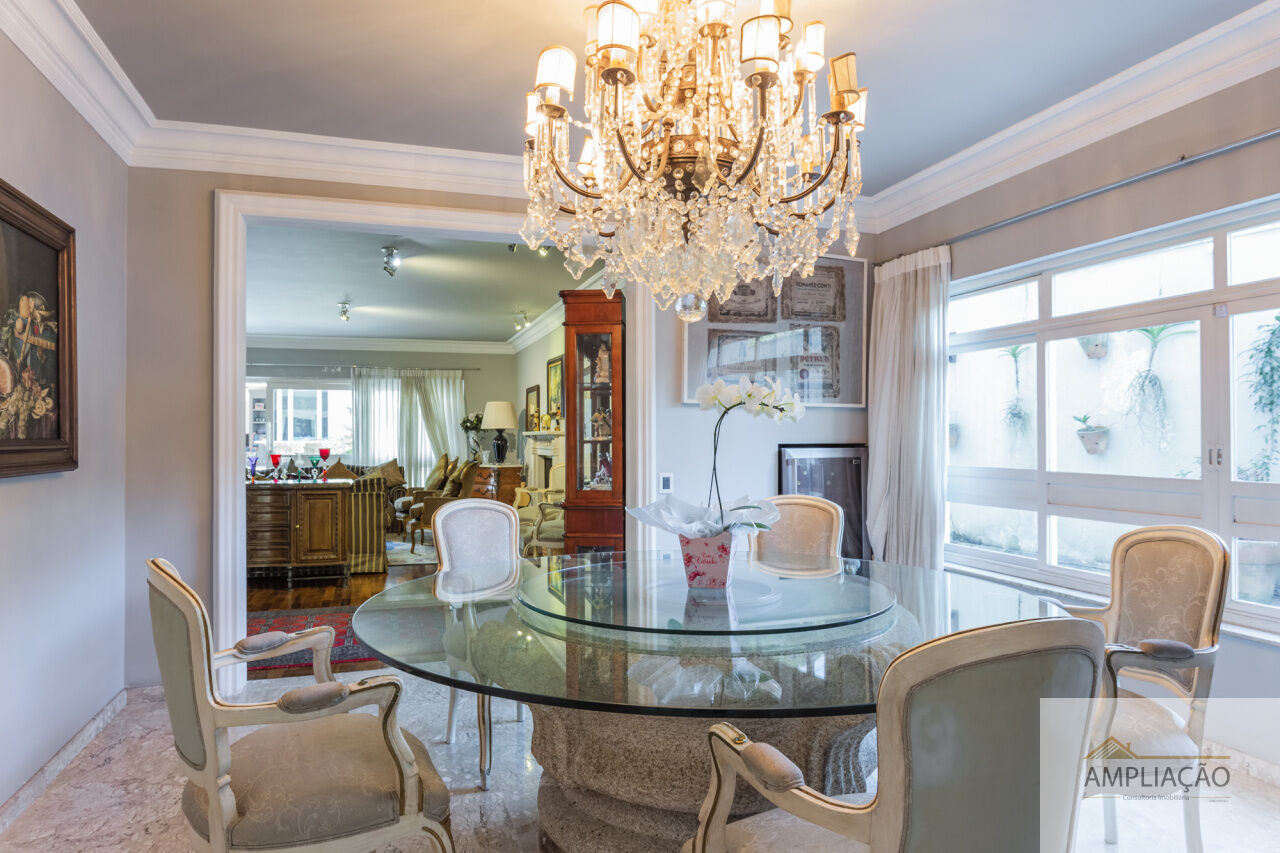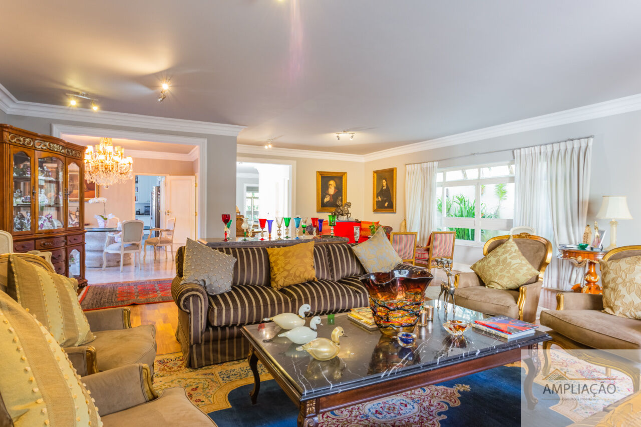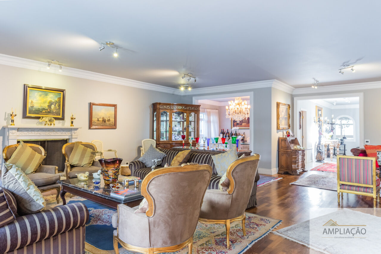 Em um terreno de 650 m² e 500 m² de área construída, conta com lavabo, escritório com terraço, 4 suítes com closets, cozinha, dependência para funcionários e ambientes climatizados.