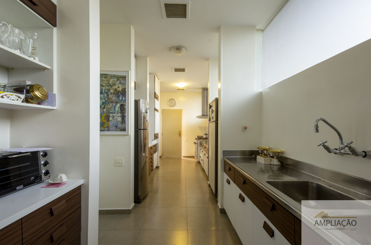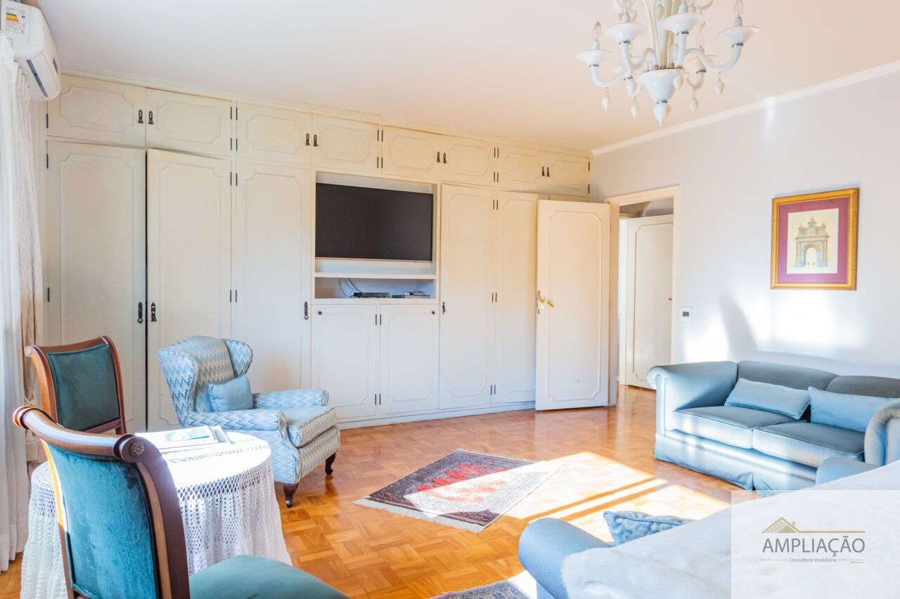 O lazer é completo, com sala de ginástica, sauna e piscina. A garagem dispõe de 7 vagas.