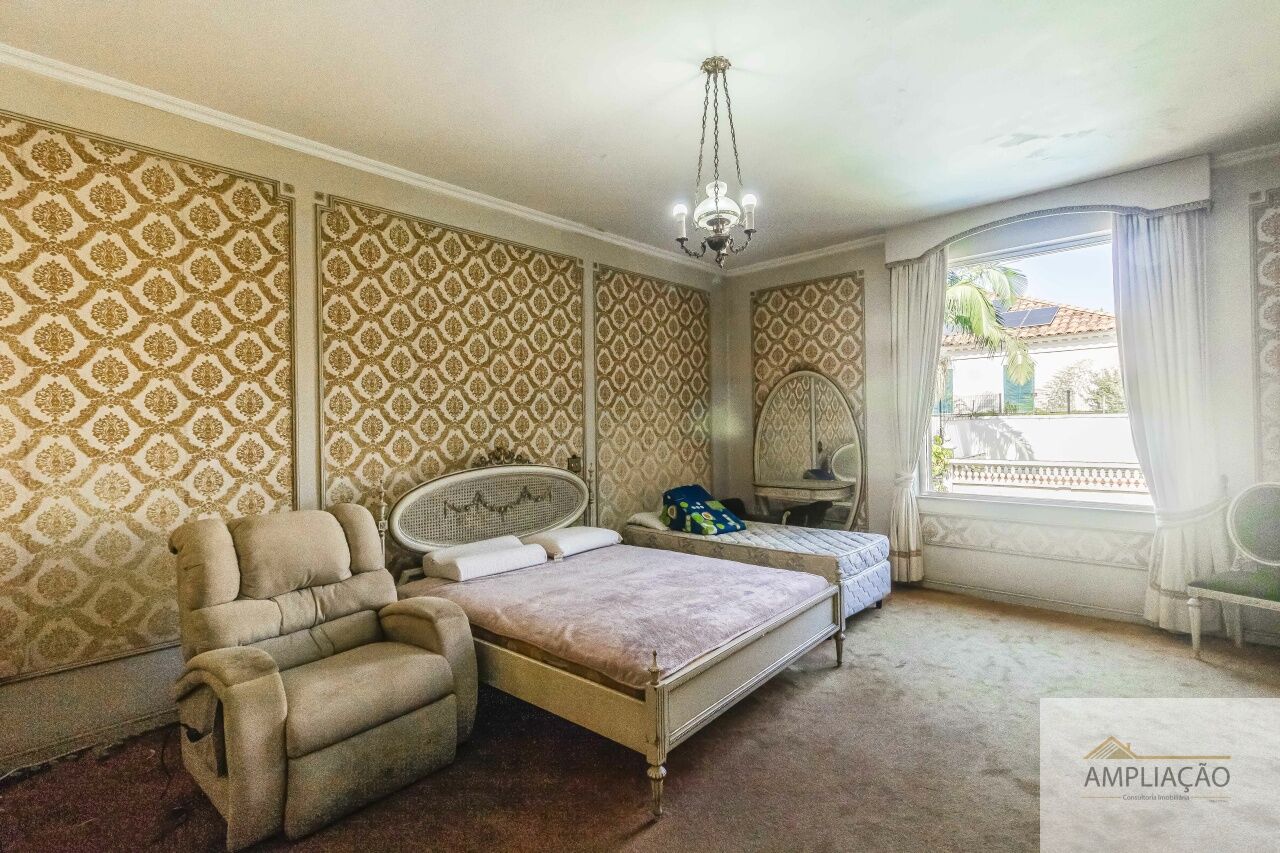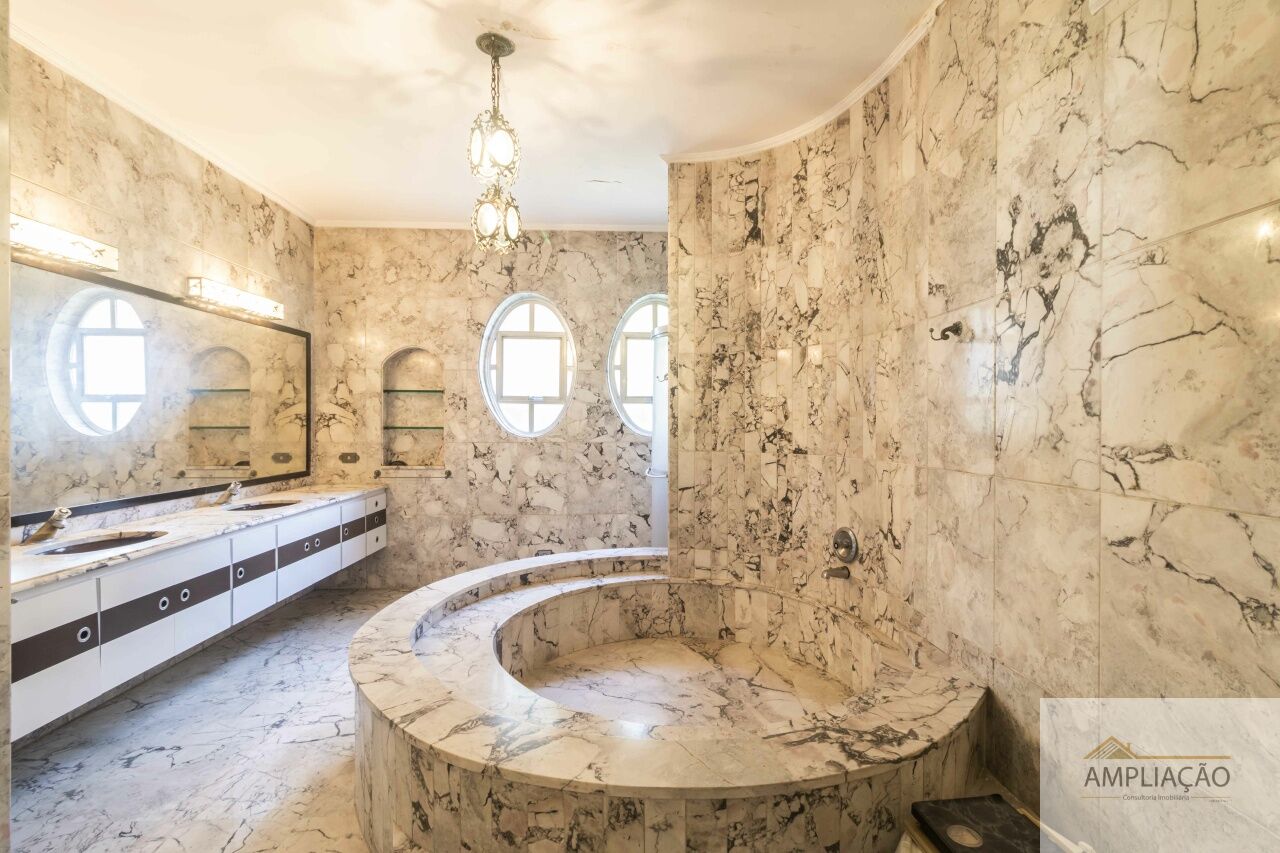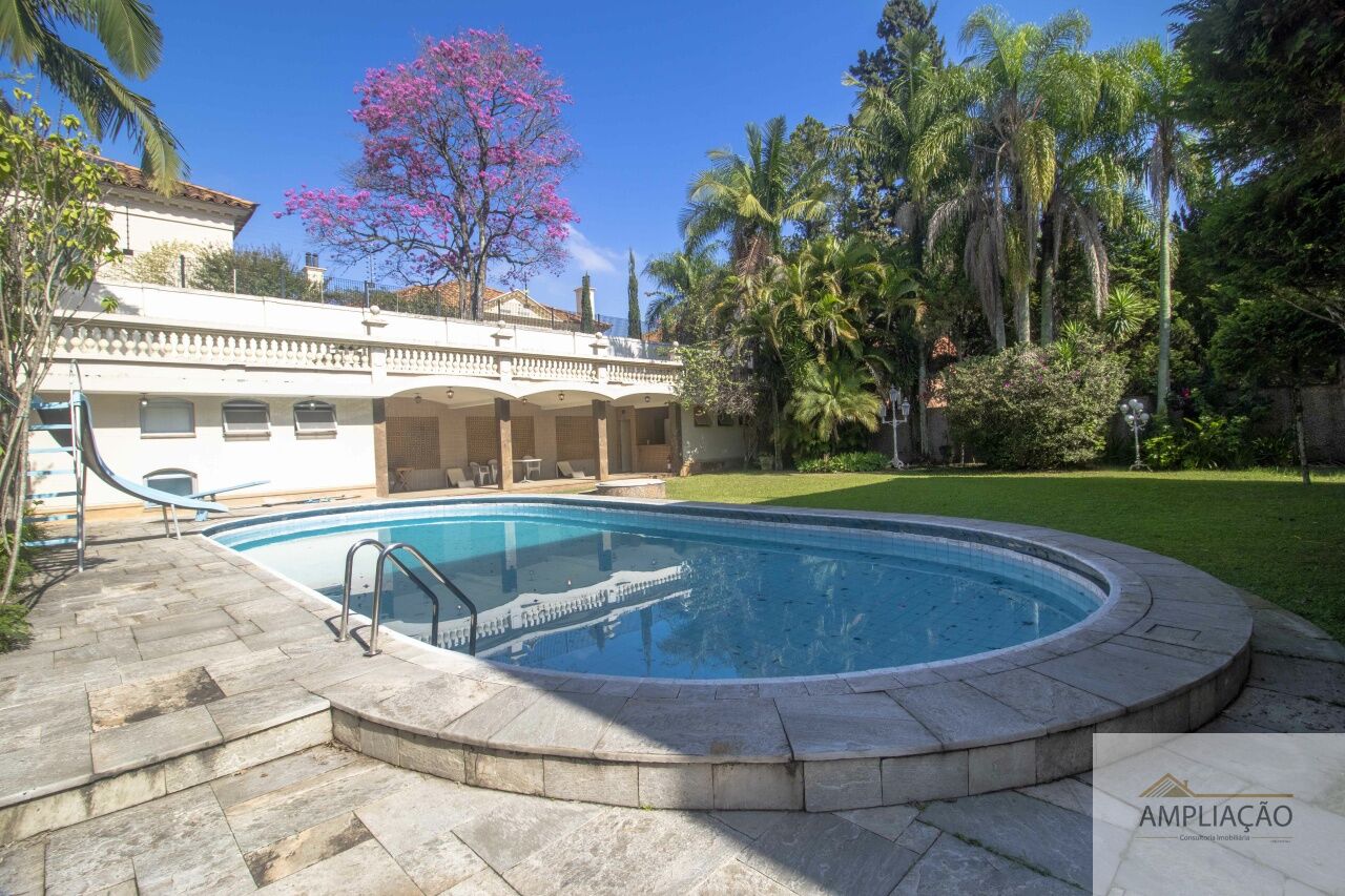 Casa clássica e imponente no Jardim Guedala, famosa por possuir um bunker que pode ser usado como salão de festas para mais de 300 pessoas. Com 1.354m² de terreno e 1.193m² construídos, oferece hall em mármore, living, jardim de inverno, sala de jantar, escritório/biblioteca e 5 amplas suítes com banheiros estilo salas de banho. Possui elevador, gerador, poço artesiano e terraço com banheiro e vista para o Pico do Jaraguá, ideal para home theater, spa ou academia. Conta ainda com amplo jardim, piscina aquecida, área gourmet, dependências para funcionários e 4 a 5 vagas de garagem.