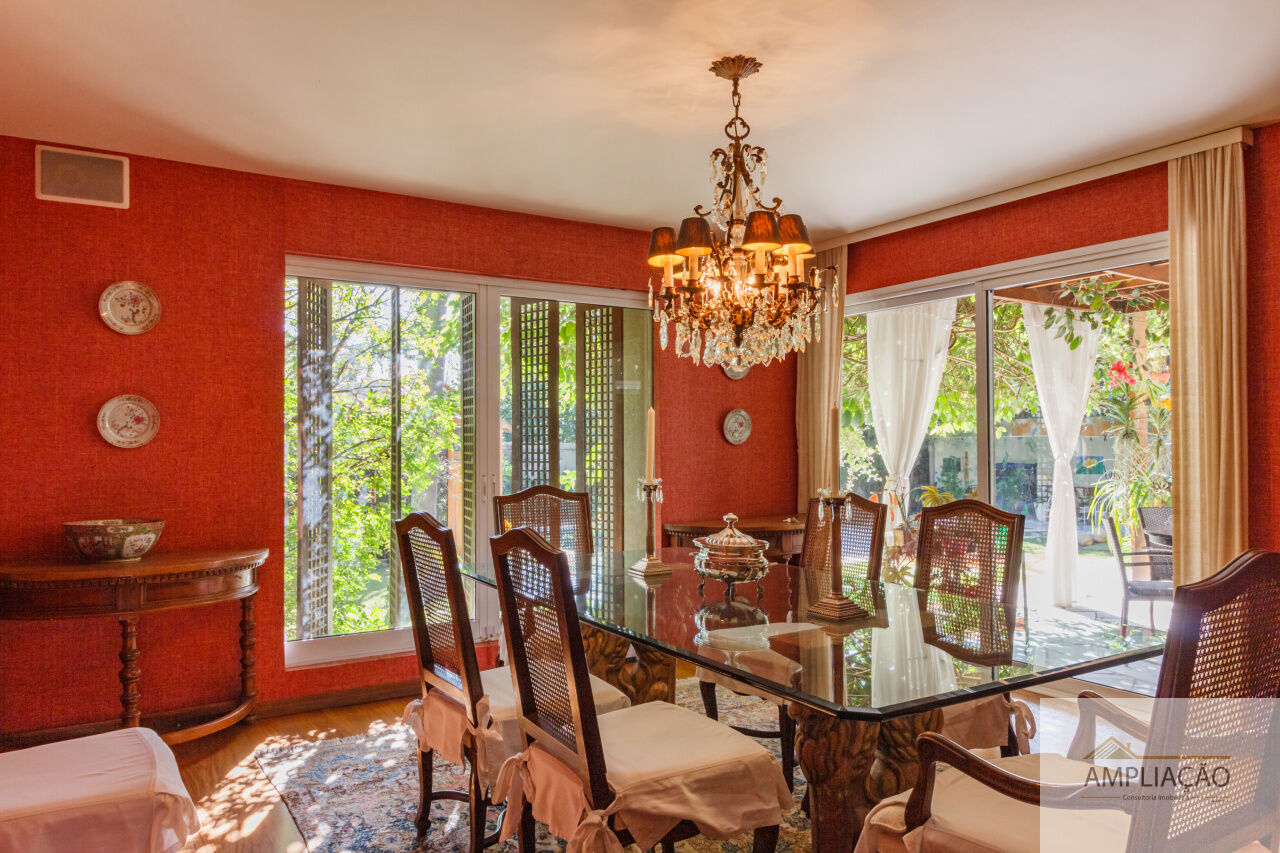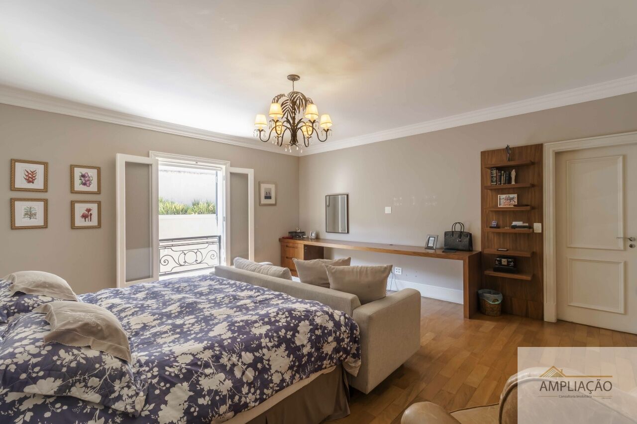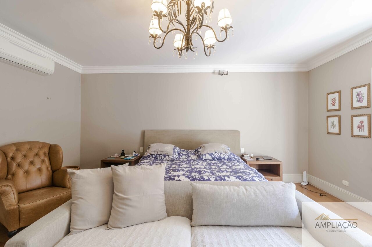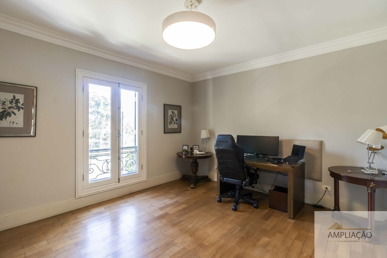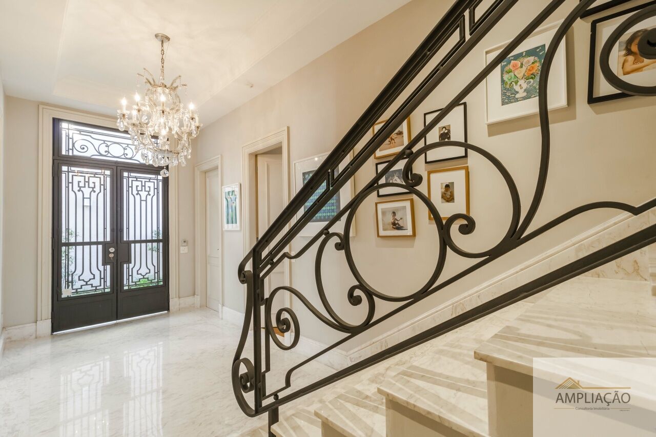 Na melhor localização do bairro, esta casa imponente é cercada por um jardim impecável e plano, oferecendo ambientes amplos e pé-direito alto. Com 2.091 m² de terreno e 554 m² de área construída, dispõe de hall de entrada, living principal, lavabo, sala de jantar, sala de TV com lareira, mezanino, copa, cozinha, dois escritórios e cinco suítes, incluindo uma máster com walkthrough closet, banheira e sacada. A área de serviço conta com dois dormitórios e dois banheiros, além de depósito e quatro vagas de garagem. Para lazer e entretenimento, a residência oferece adega, piscina, churrasqueira, brinquedoteca, quadra de tênis, academia, salão de festas e um espaço que combina o charme de uma casa de campo com a sofisticação de São Paulo.