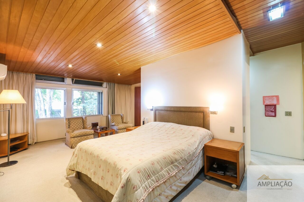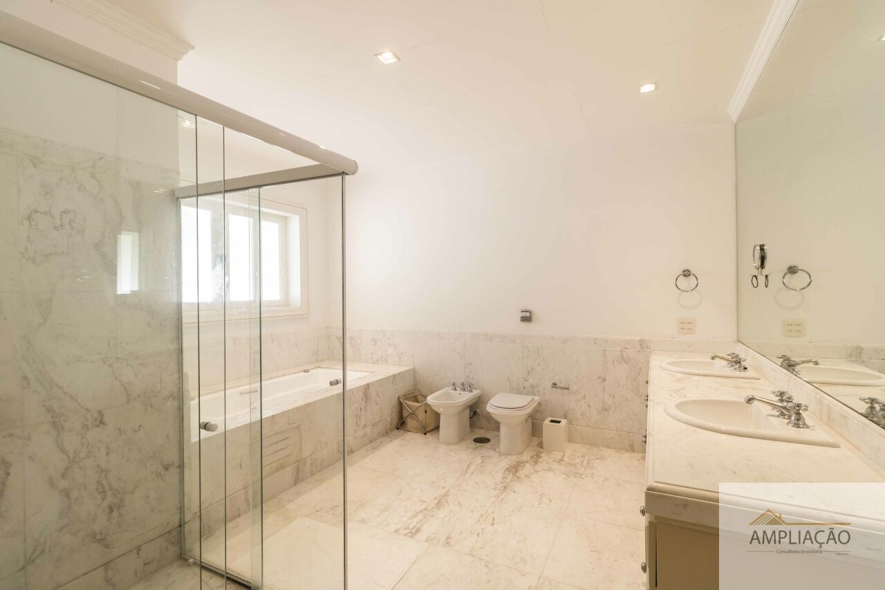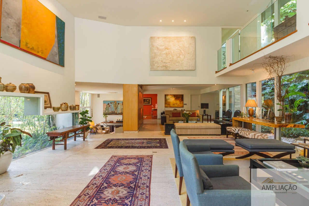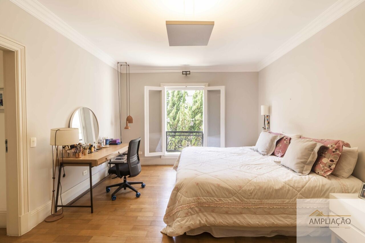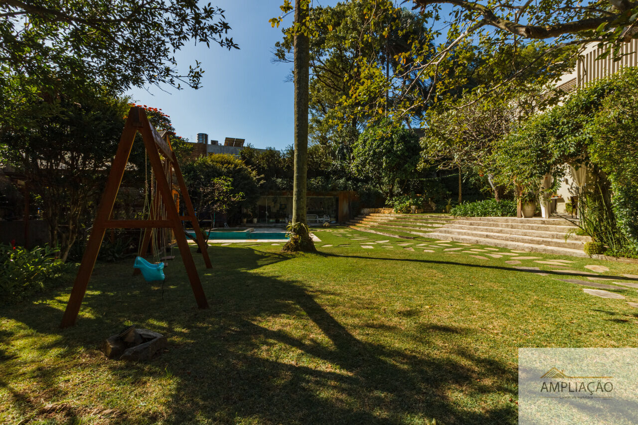 Na melhor localização do bairro, esta casa imponente é cercada por um jardim impecável e plano, oferecendo ambientes amplos e pé-direito alto. Com 2.091 m² de terreno e 554 m² de área construída, dispõe de hall de entrada, living principal, lavabo, sala de jantar, sala de TV com lareira, mezanino, copa, cozinha, dois escritórios e cinco suítes, incluindo uma máster com walkthrough closet, banheira e sacada. A área de serviço conta com dois dormitórios e dois banheiros, além de depósito e quatro vagas de garagem. Para lazer e entretenimento, a residência oferece adega, piscina, churrasqueira, brinquedoteca, quadra de tênis, academia, salão de festas e um espaço que combina o charme de uma casa de campo com a sofisticação de São Paulo.