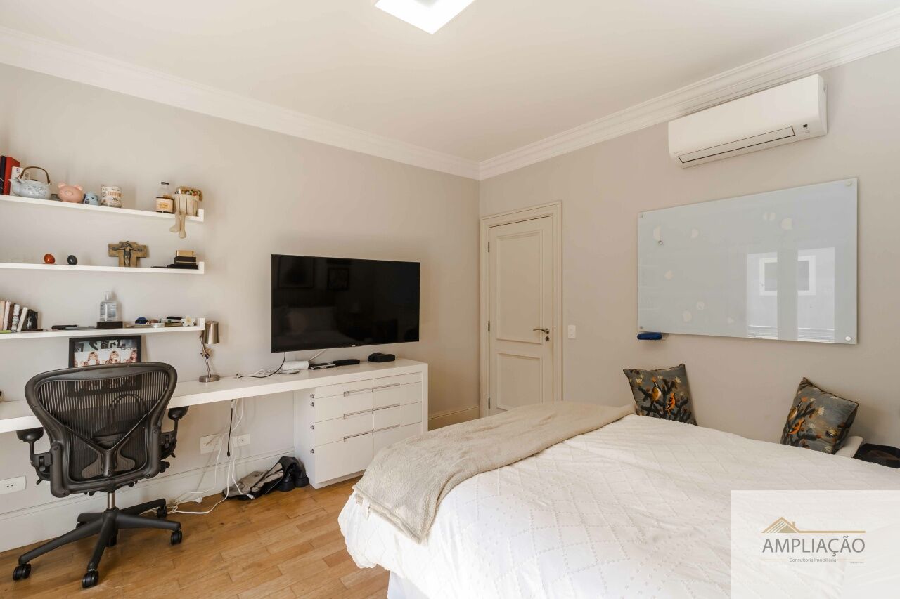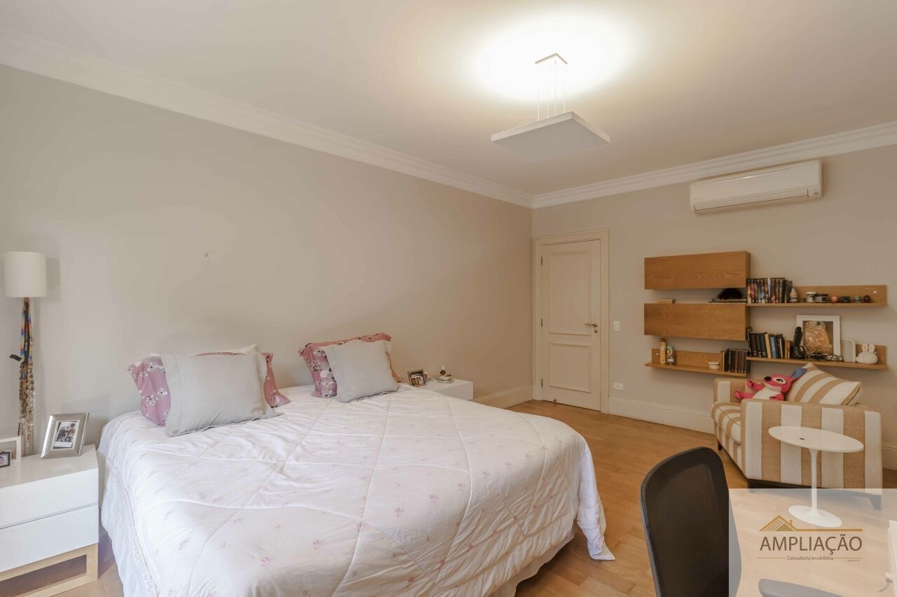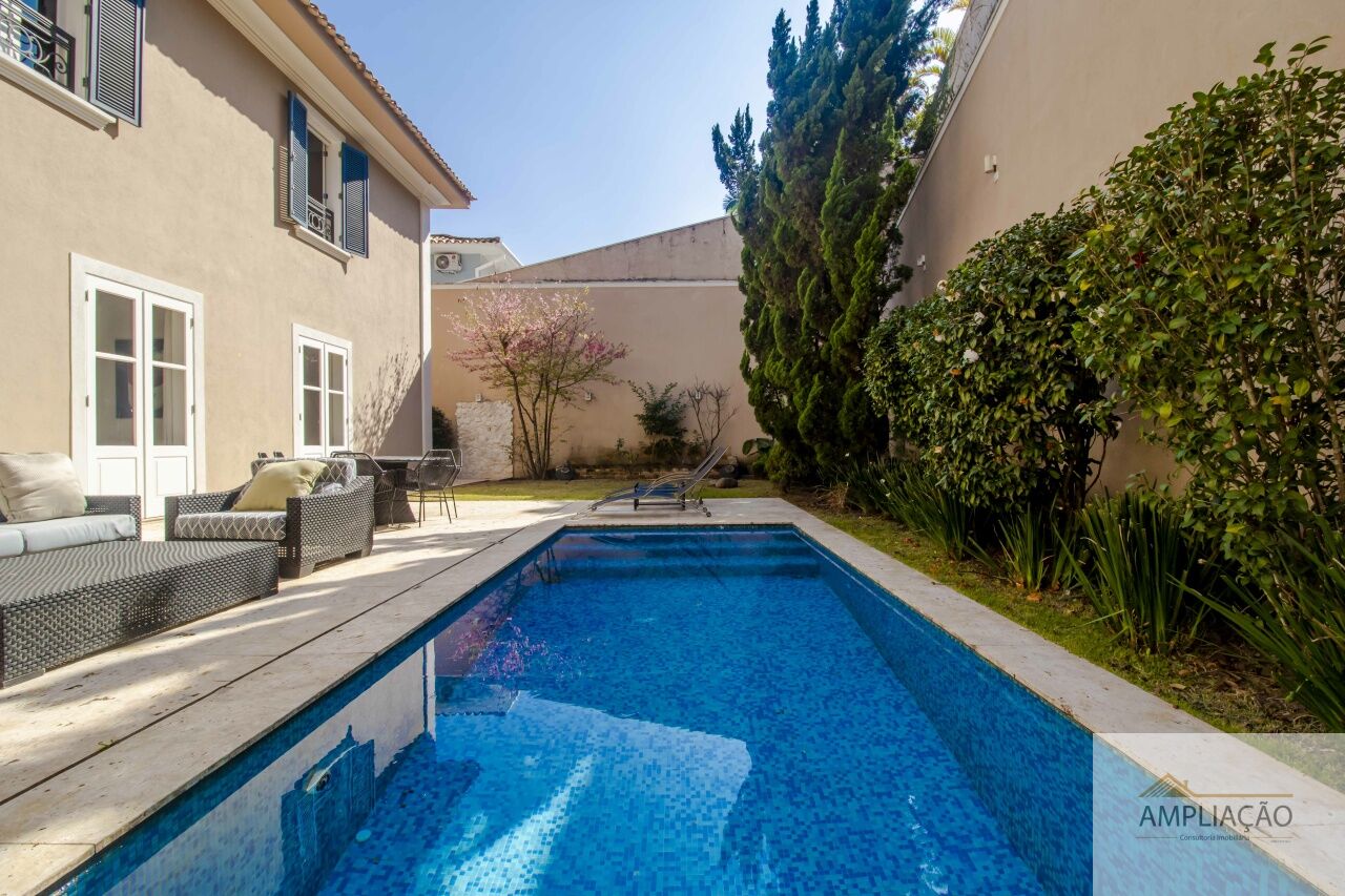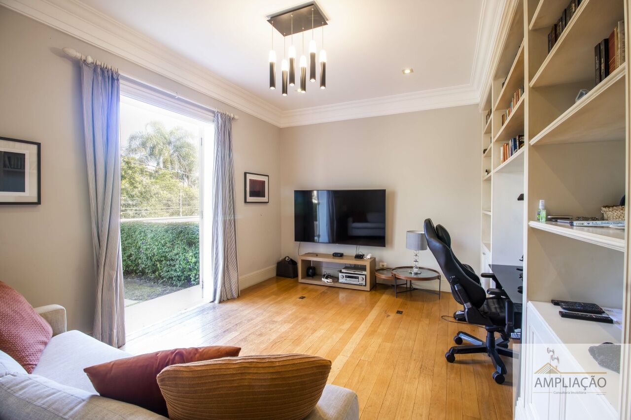 Na melhor localização do bairro, esta casa imponente é cercada por um jardim impecável e plano, oferecendo ambientes amplos e pé-direito alto. Com 2.091 m² de terreno e 554 m² de área construída, dispõe de hall de entrada, living principal, lavabo, sala de jantar, sala de TV com lareira, mezanino, copa, cozinha, dois escritórios e cinco suítes, incluindo uma máster com walkthrough closet, banheira e sacada. A área de serviço conta com dois dormitórios e dois banheiros, além de depósito e quatro vagas de garagem. Para lazer e entretenimento, a residência oferece adega, piscina, churrasqueira, brinquedoteca, quadra de tênis, academia, salão de festas e um espaço que combina o charme de uma casa de campo com a sofisticação de São Paulo.