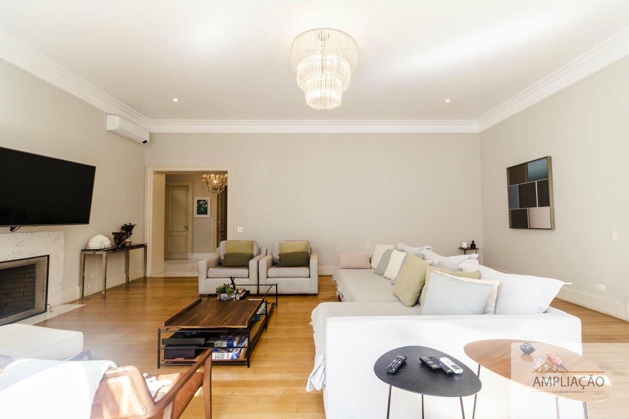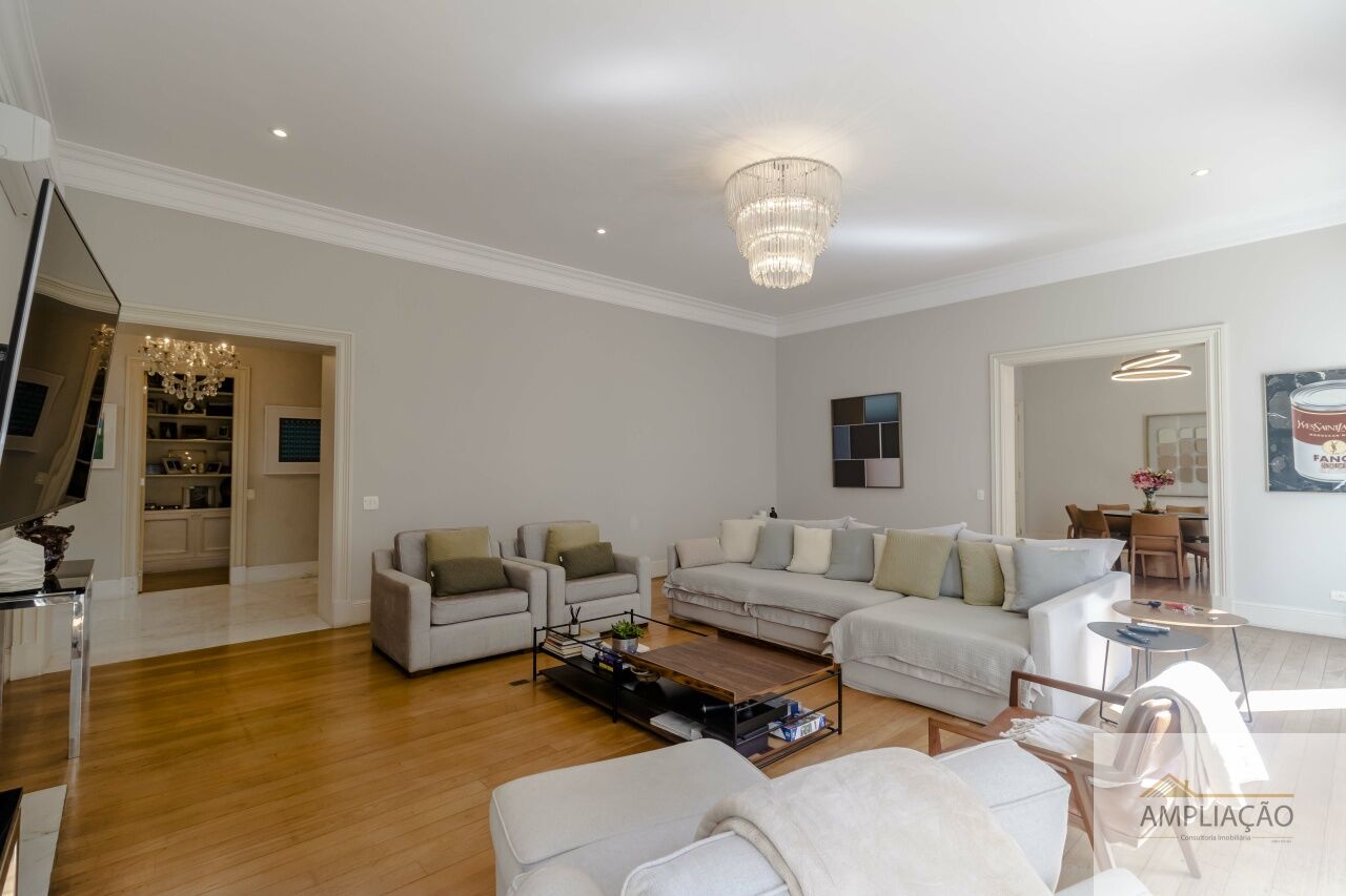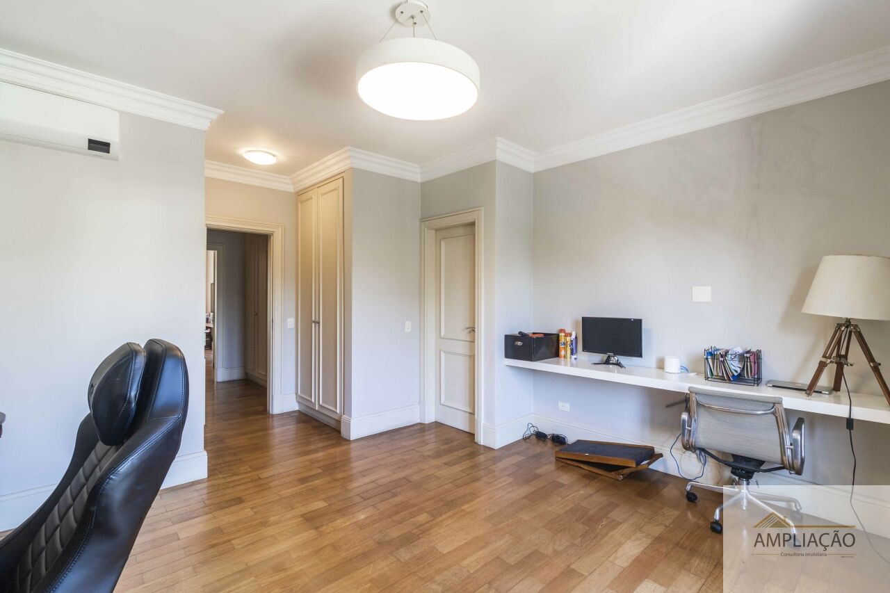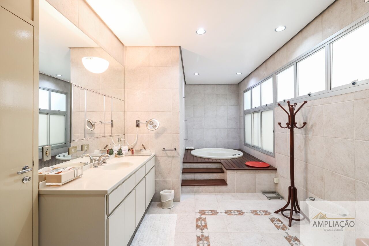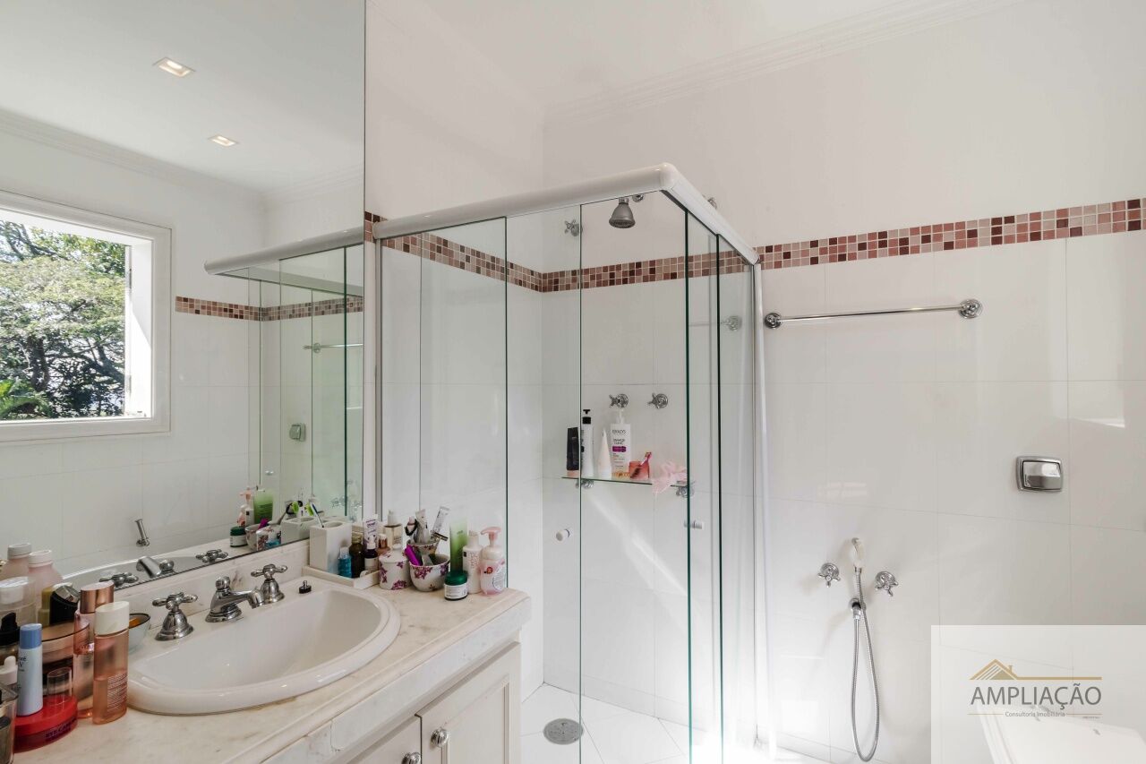Na melhor localização do bairro, esta casa imponente é cercada por um jardim impecável e plano, oferecendo ambientes amplos e pé-direito alto. Com 2.091 m² de terreno e 554 m² de área construída, dispõe de hall de entrada, living principal, lavabo, sala de jantar, sala de TV com lareira, mezanino, copa, cozinha, dois escritórios e cinco suítes, incluindo uma máster com walkthrough closet, banheira e sacada. A área de serviço conta com dois dormitórios e dois banheiros, além de depósito e quatro vagas de garagem. Para lazer e entretenimento, a residência oferece adega, piscina, churrasqueira, brinquedoteca, quadra de tênis, academia, salão de festas e um espaço que combina o charme de uma casa de campo com a sofisticação de São Paulo.