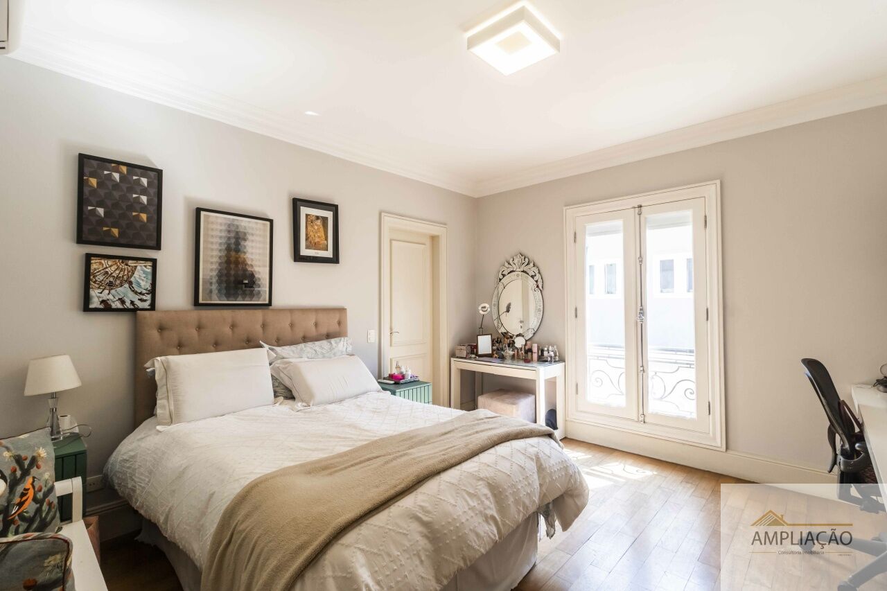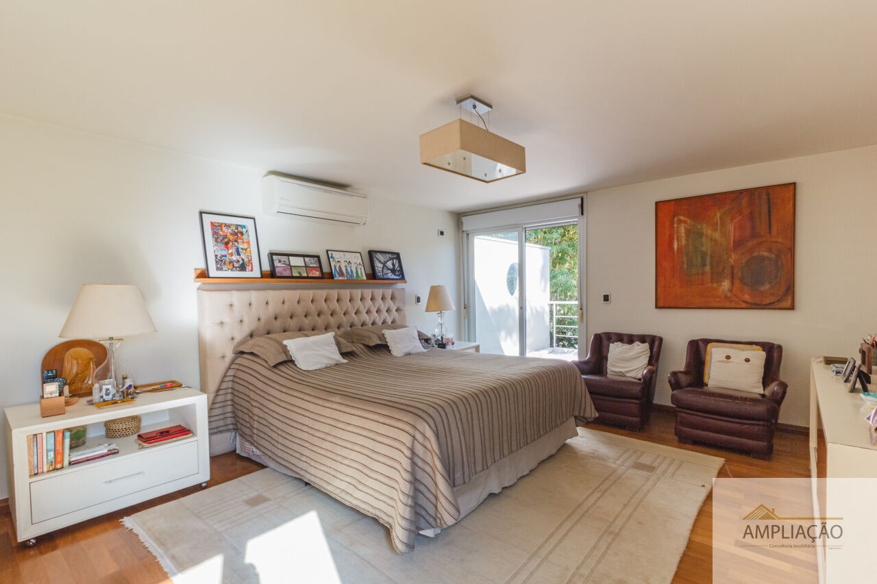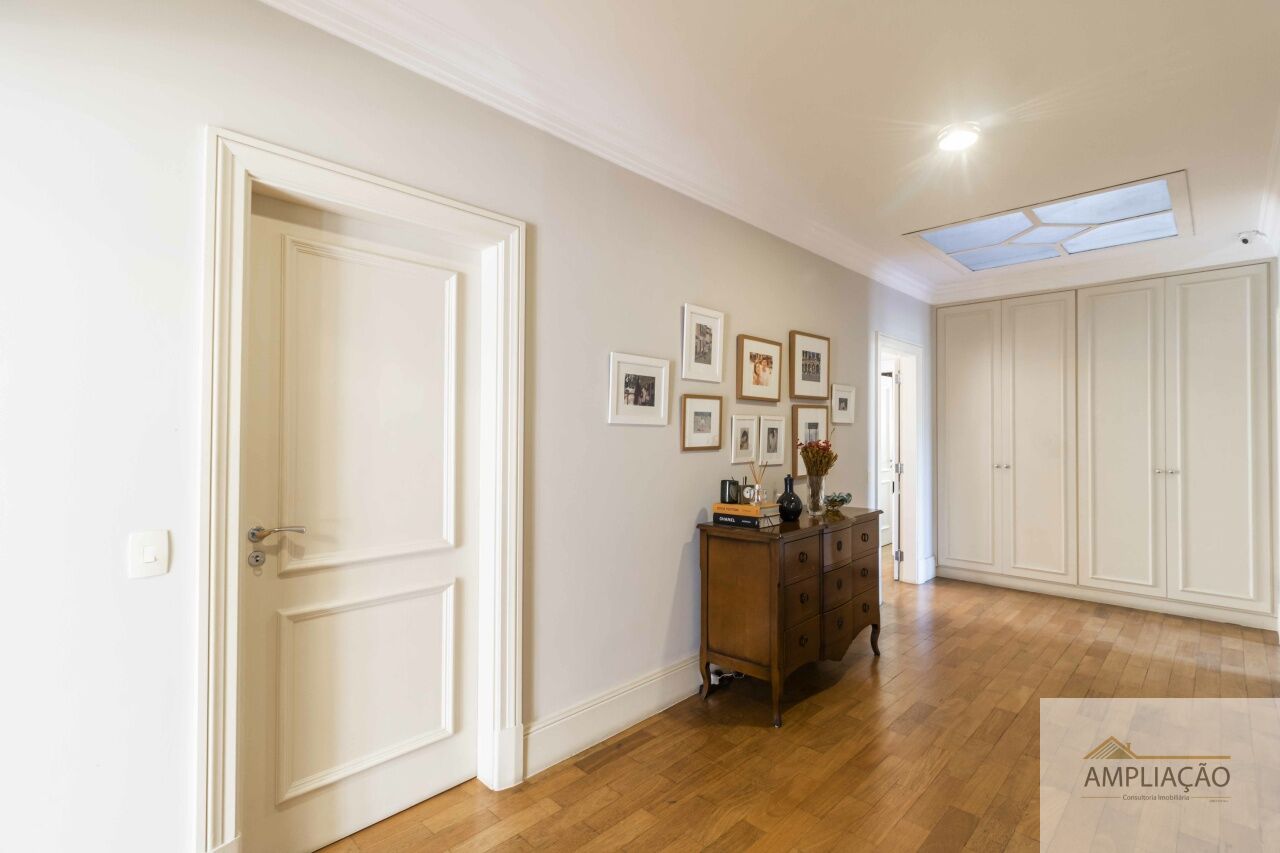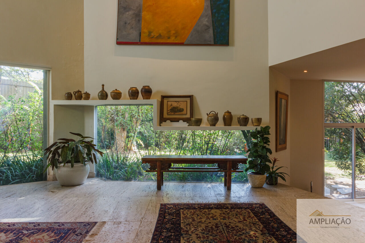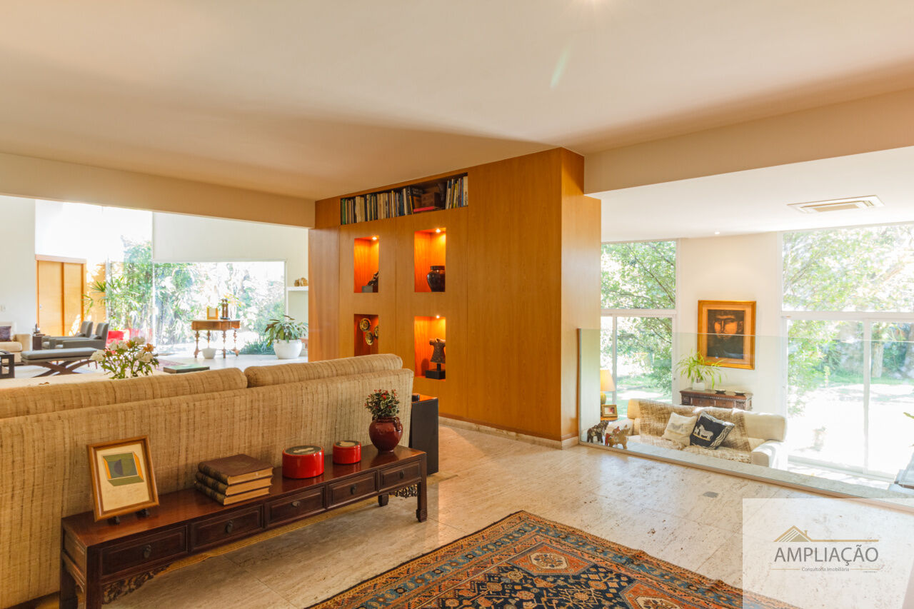 Na melhor localização do bairro, esta casa imponente é cercada por um jardim impecável e plano, oferecendo ambientes amplos e pé-direito alto. Com 2.091 m² de terreno e 554 m² de área construída, dispõe de hall de entrada, living principal, lavabo, sala de jantar, sala de TV com lareira, mezanino, copa, cozinha, dois escritórios e cinco suítes, incluindo uma máster com walkthrough closet, banheira e sacada. A área de serviço conta com dois dormitórios e dois banheiros, além de depósito e quatro vagas de garagem. Para lazer e entretenimento, a residência oferece adega, piscina, churrasqueira, brinquedoteca, quadra de tênis, academia, salão de festas e um espaço que combina o charme de uma casa de campo com a sofisticação de São Paulo.
