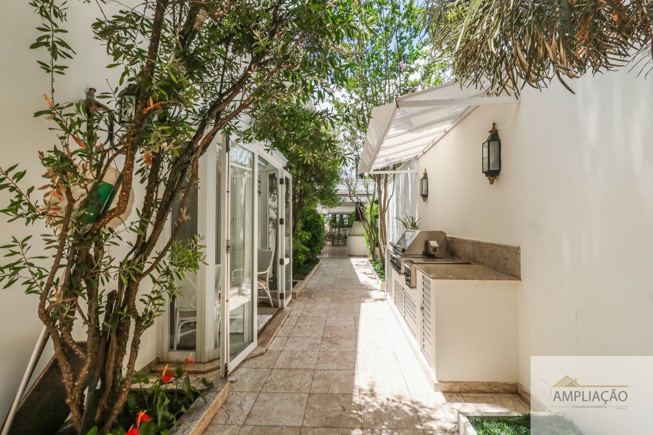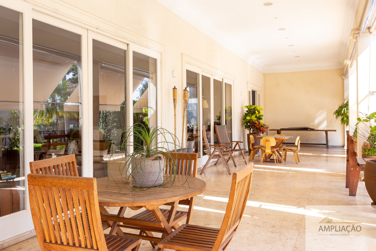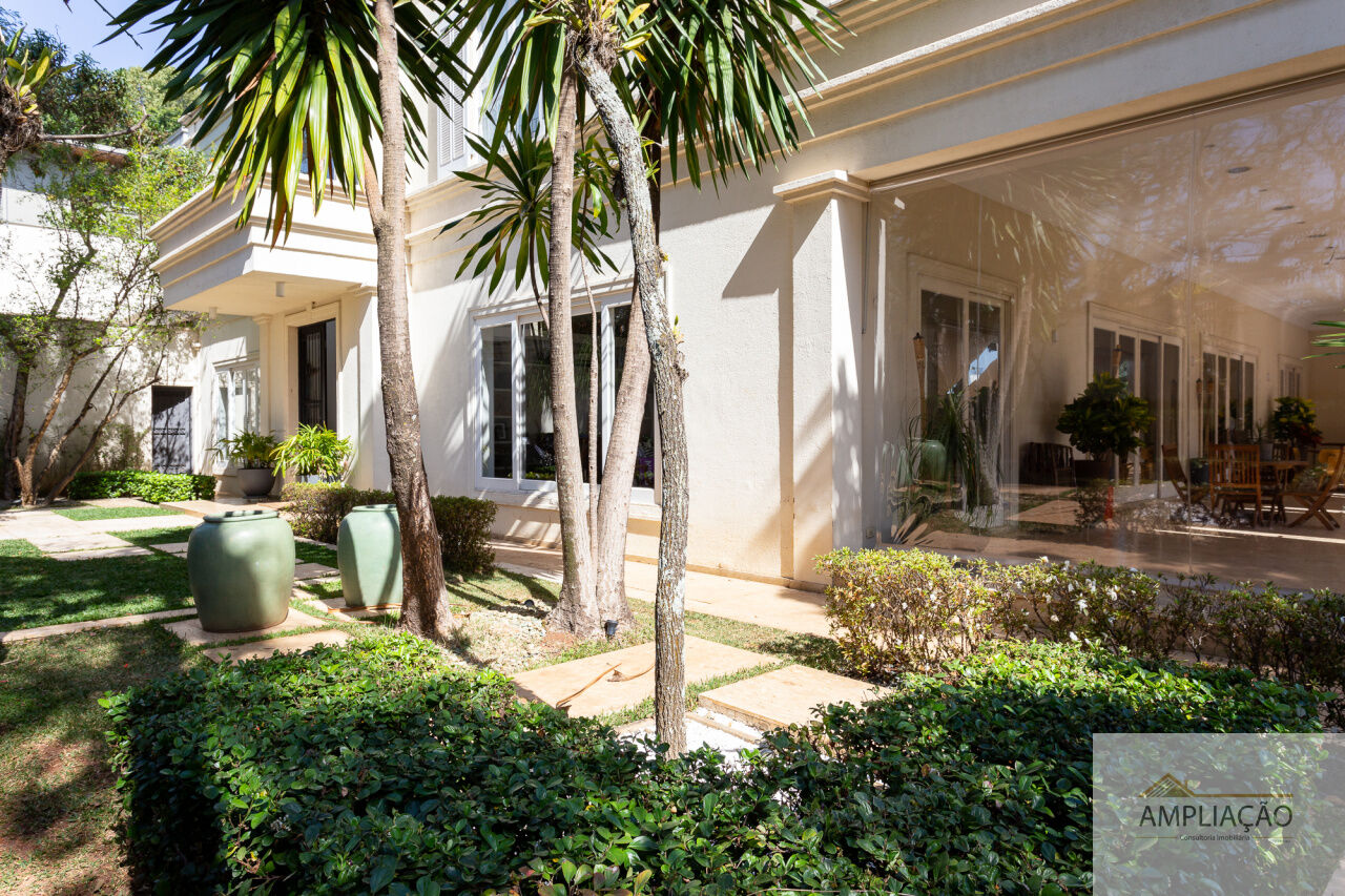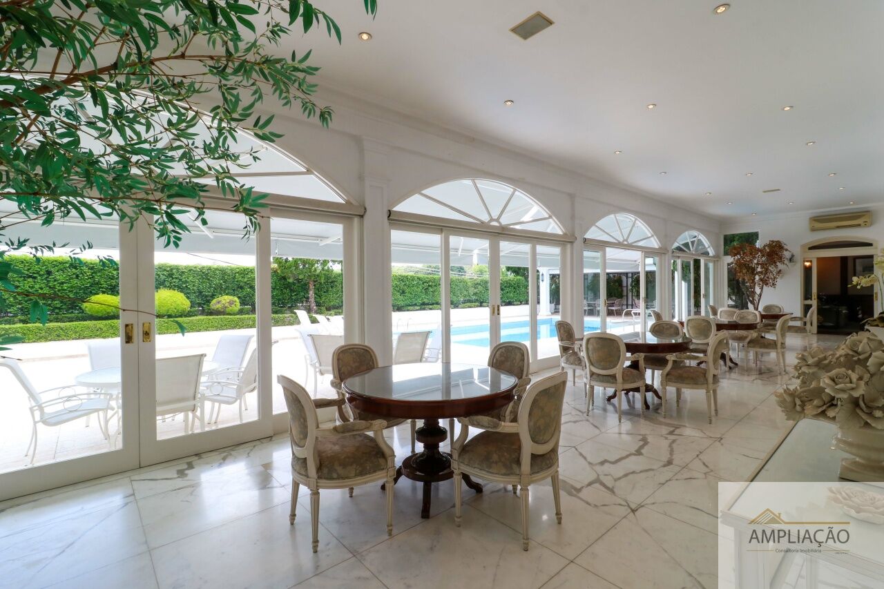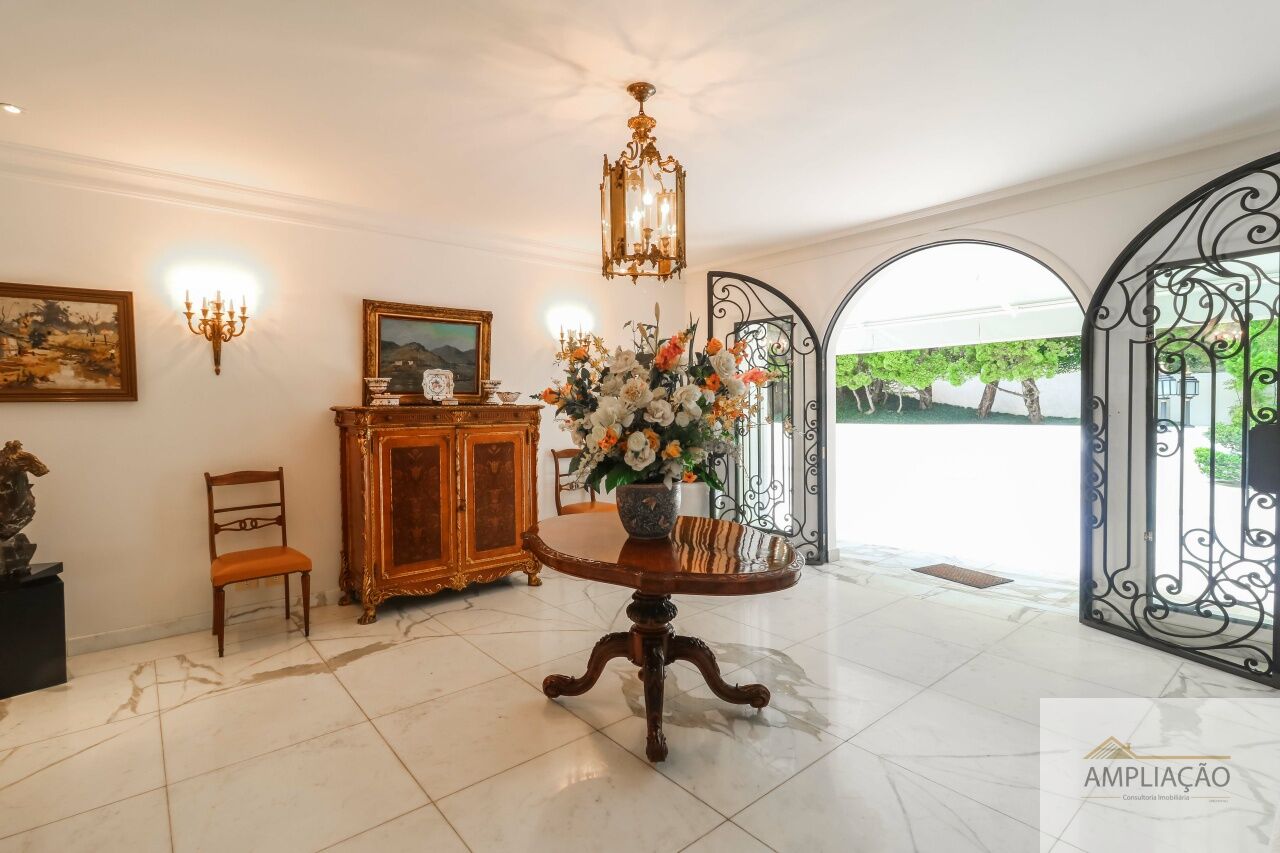 Na área de apoio, a cozinha conta com despensas, área de serviço funcional e dependências completas para funcionários, incluindo sala de estar. Para o lazer, os destaques ficam por conta da área gourmet com churrasqueira, piscina, sauna e jardim espaçoso. A casa possui ainda gerador e 6 vagas de garagem.