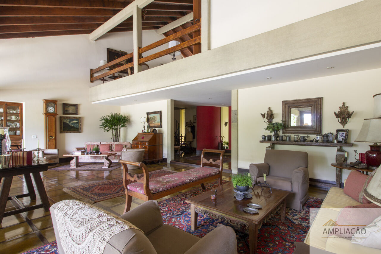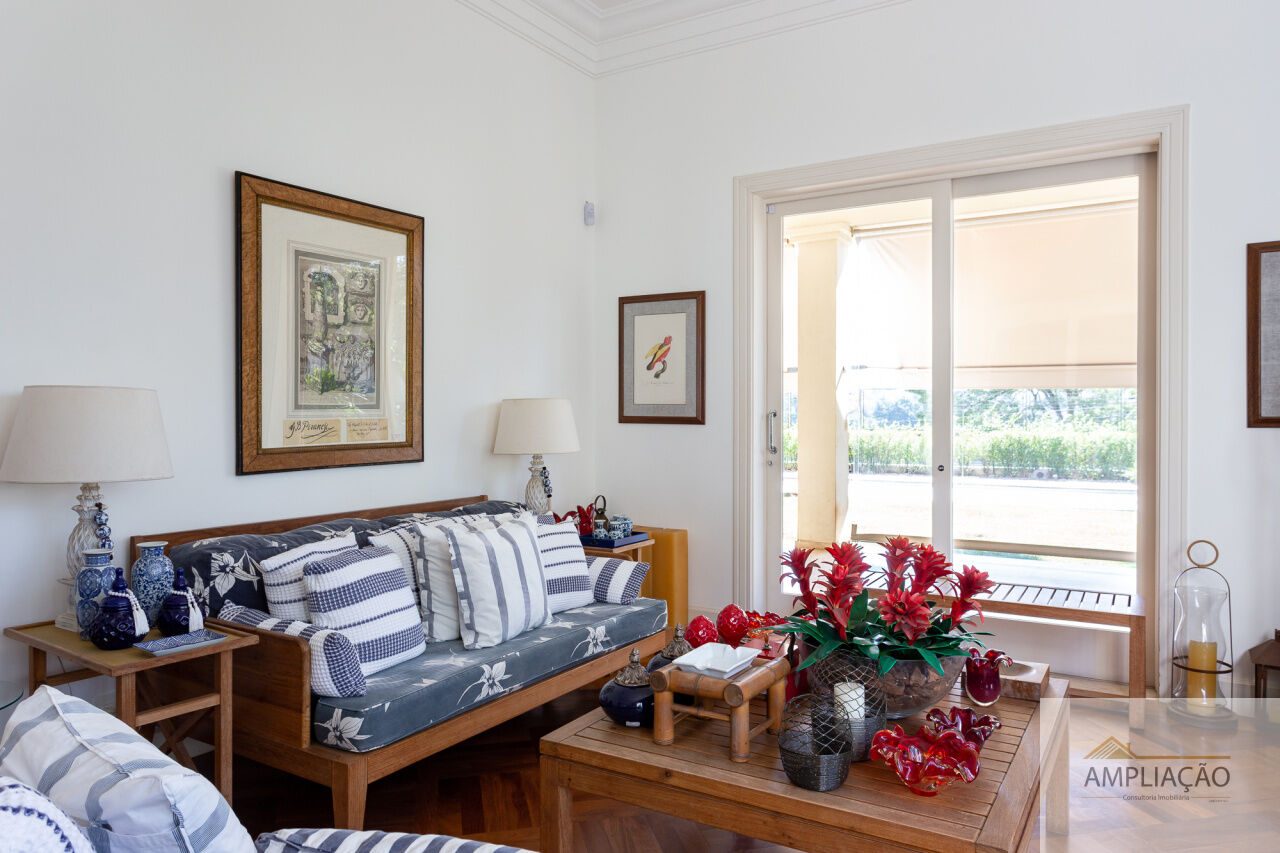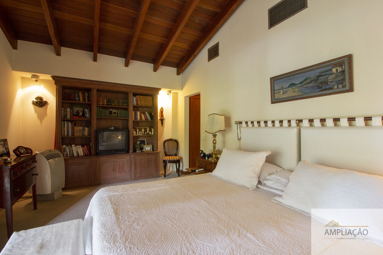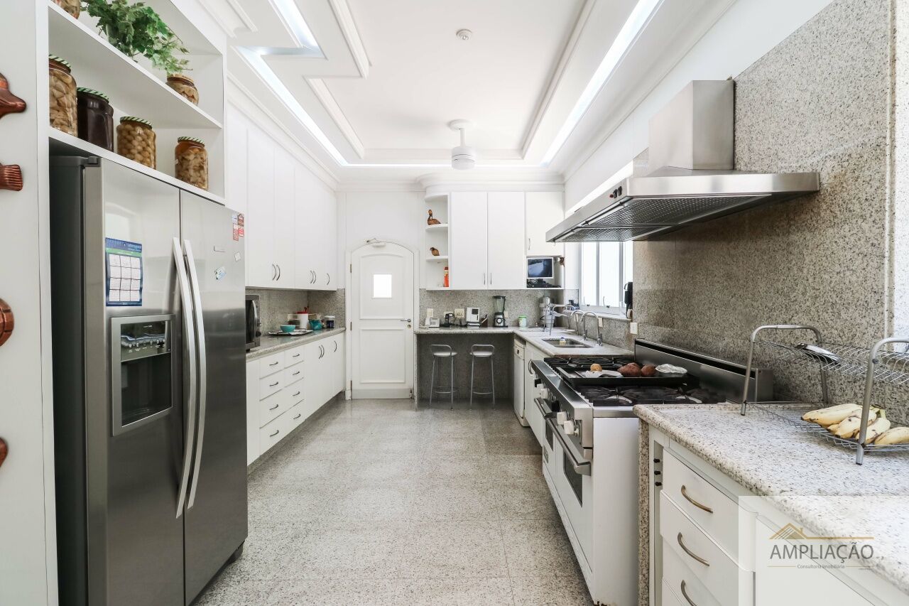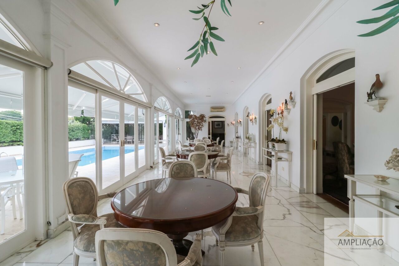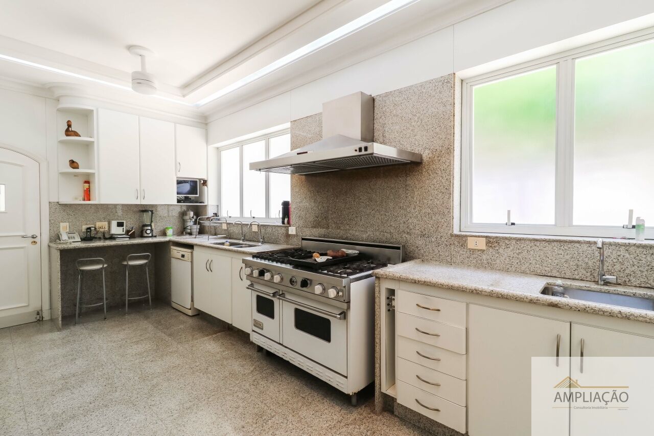 Na área de apoio, a cozinha conta com despensas, área de serviço funcional e dependências completas para funcionários, incluindo sala de estar. Para o lazer, os destaques ficam por conta da área gourmet com churrasqueira, piscina, sauna e jardim espaçoso. A casa possui ainda gerador e 6 vagas de garagem.