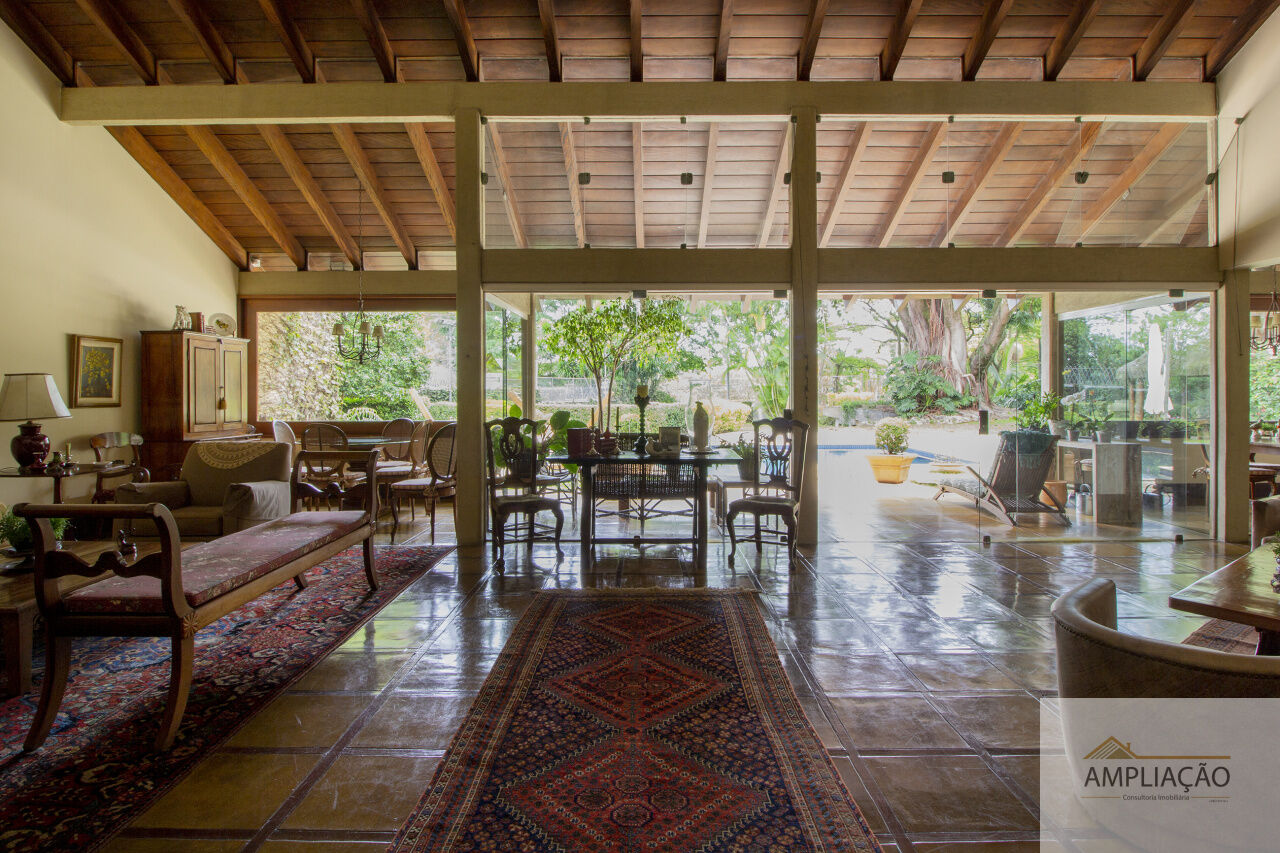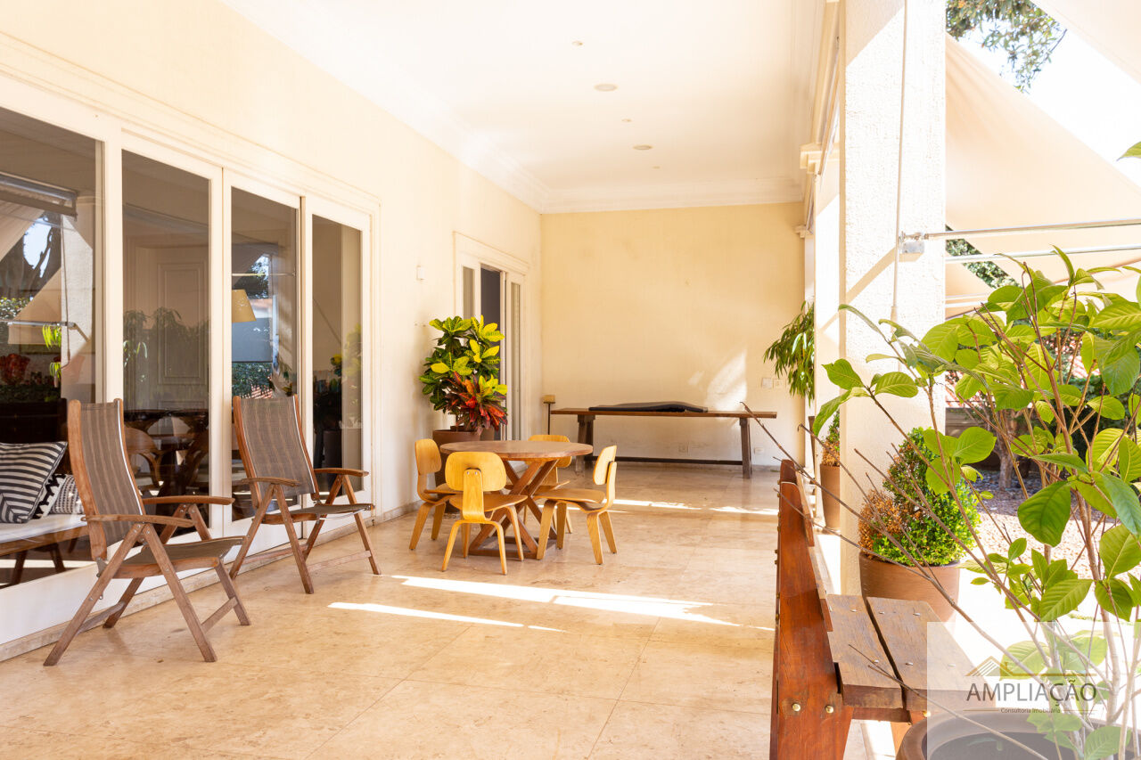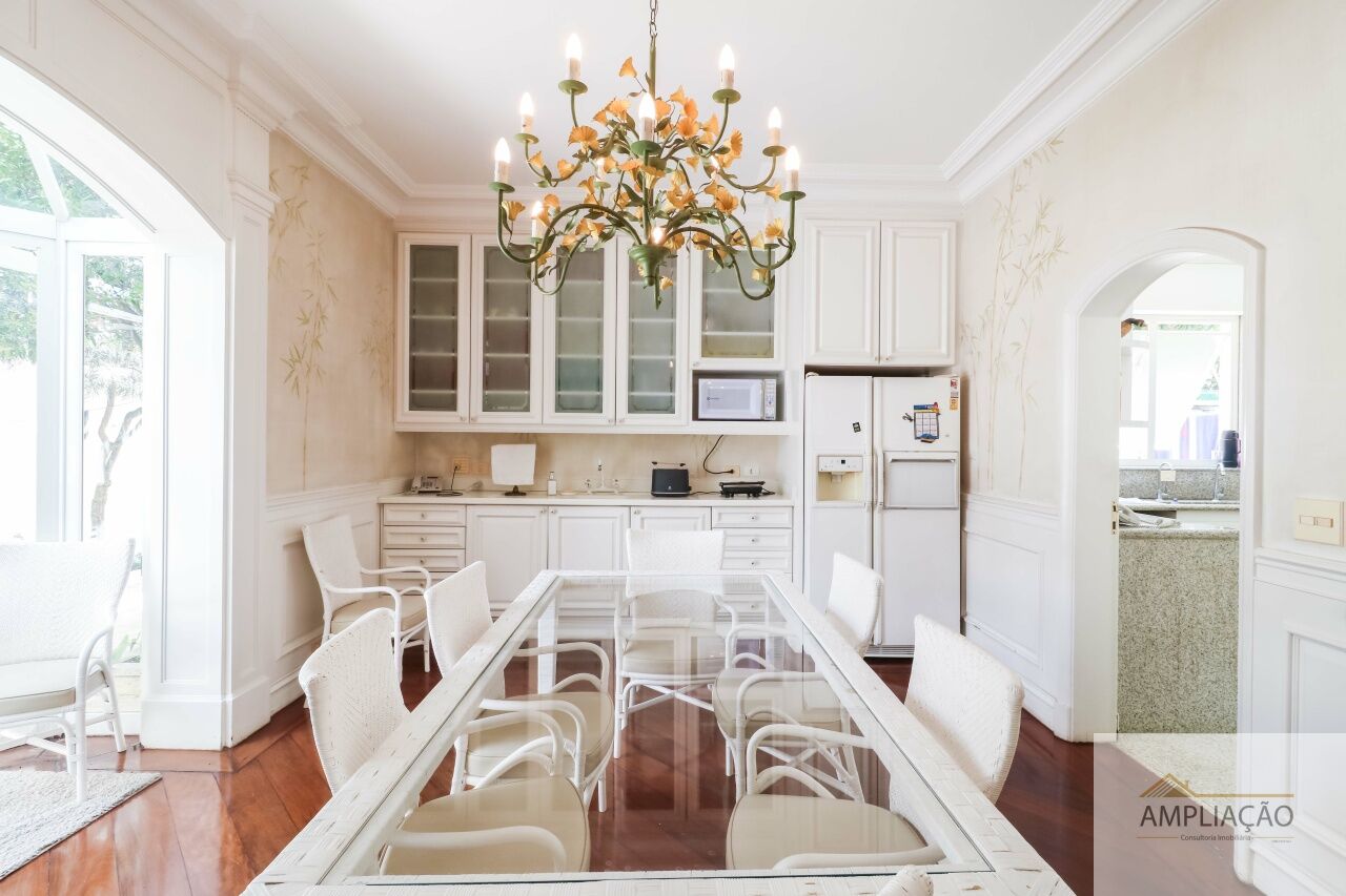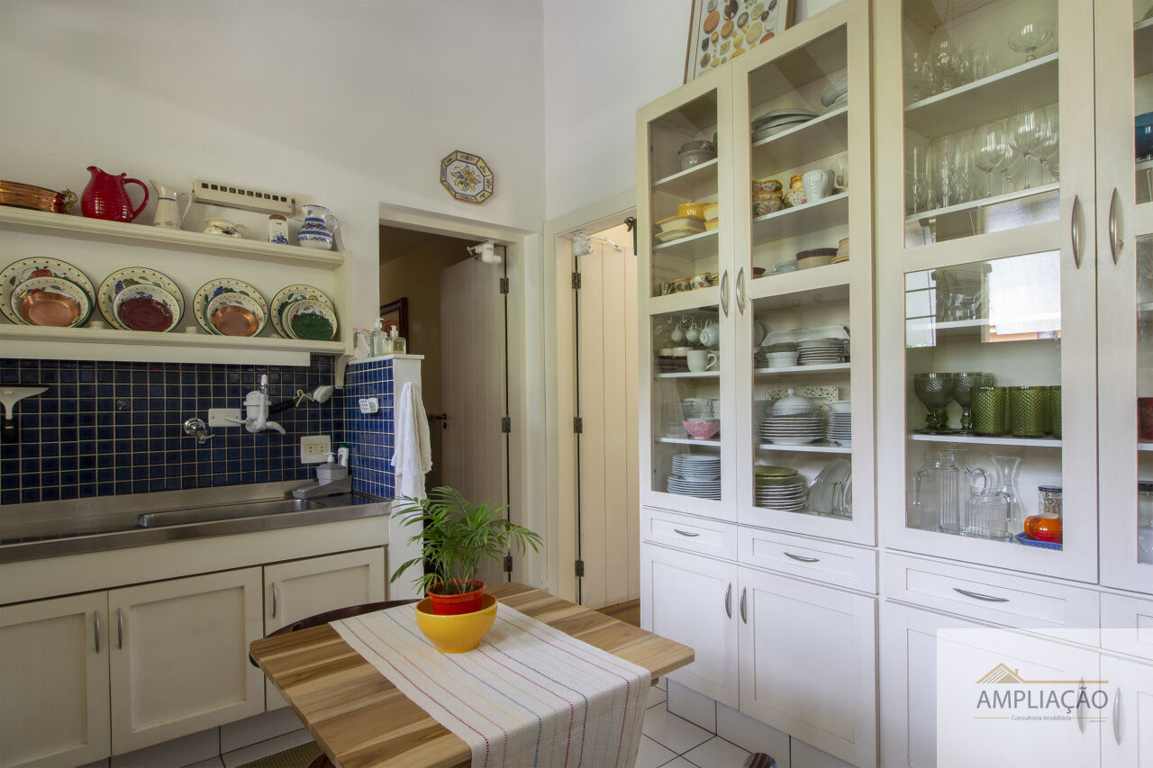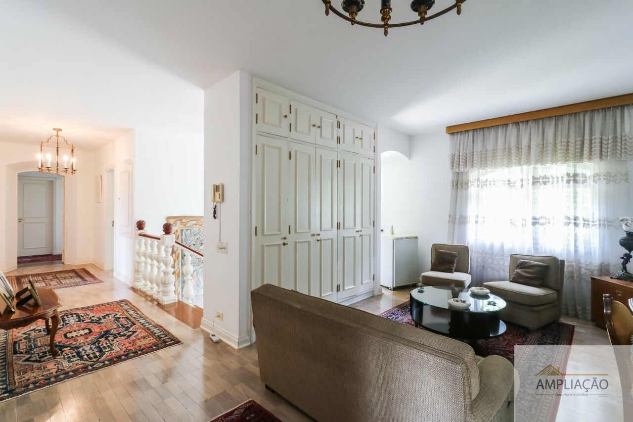 Na área de apoio, a cozinha conta com despensas, área de serviço funcional e dependências completas para funcionários, incluindo sala de estar. Para o lazer, os destaques ficam por conta da área gourmet com churrasqueira, piscina, sauna e jardim espaçoso. A casa possui ainda gerador e 6 vagas de garagem.