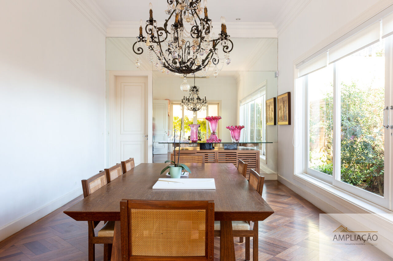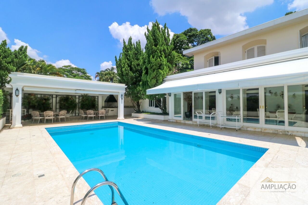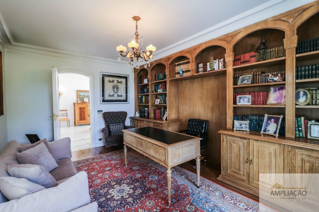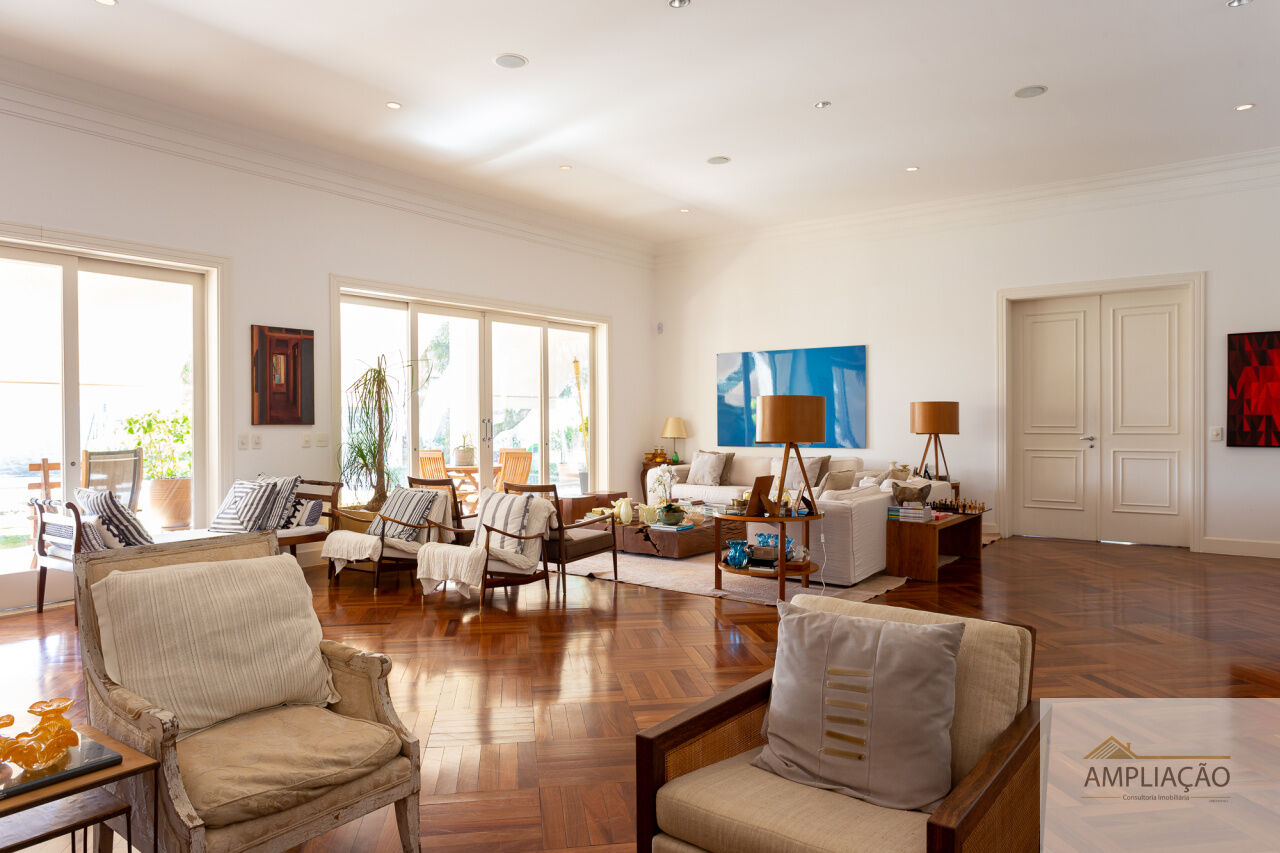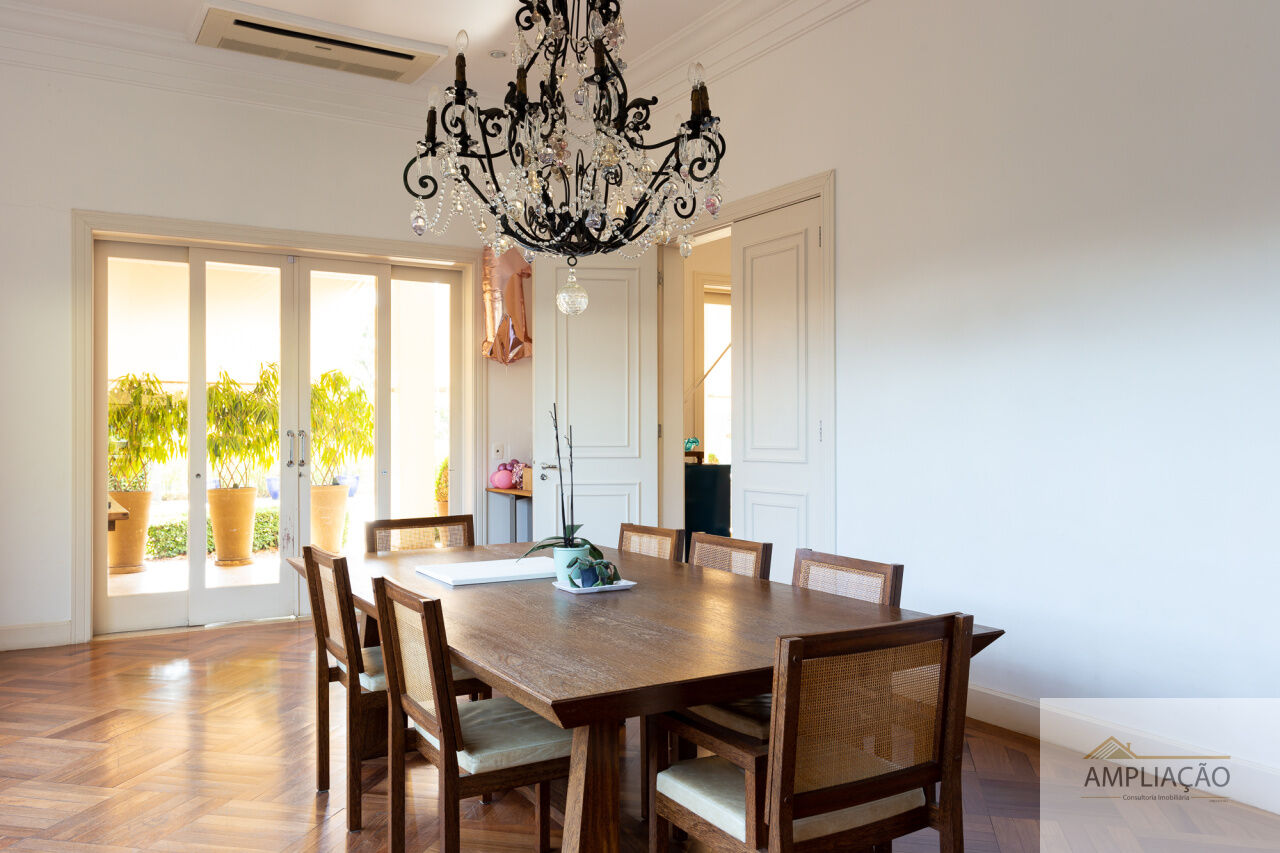 Na área de apoio, a cozinha conta com despensas, área de serviço funcional e dependências completas para funcionários, incluindo sala de estar. Para o lazer, os destaques ficam por conta da área gourmet com churrasqueira, piscina, sauna e jardim espaçoso. A casa possui ainda gerador e 6 vagas de garagem.