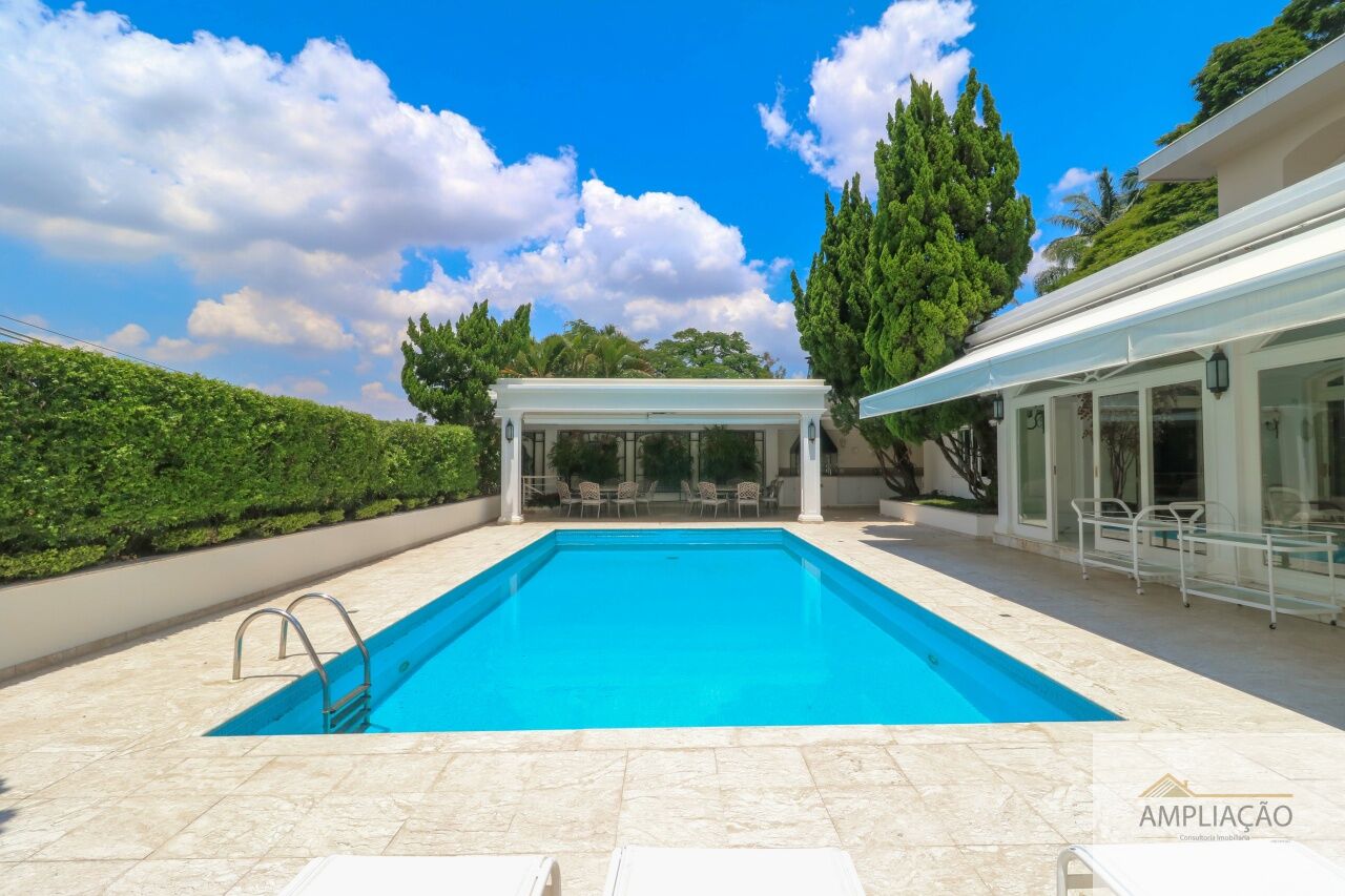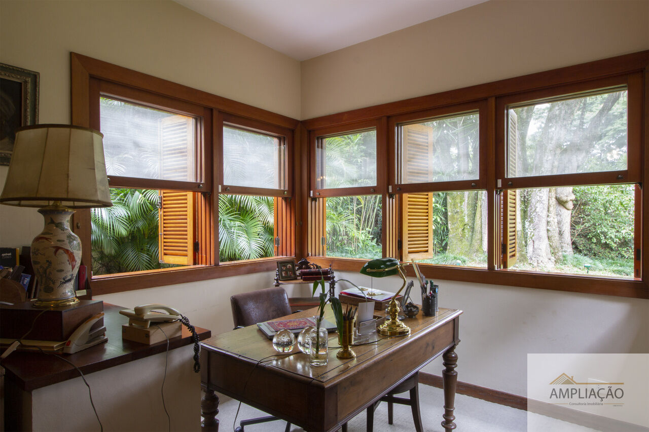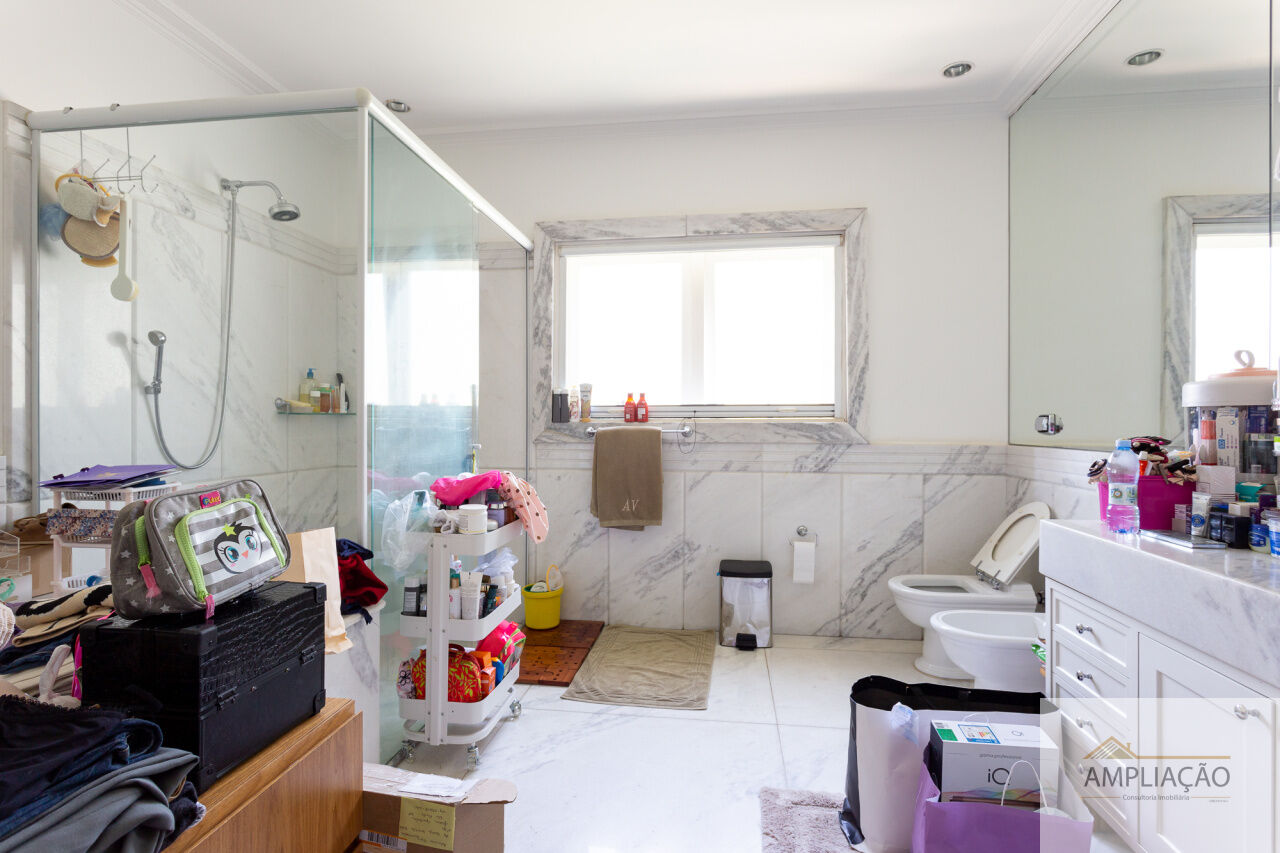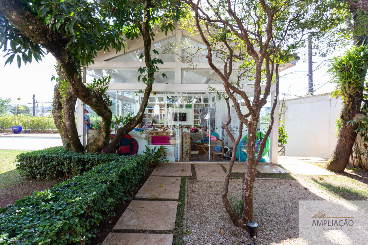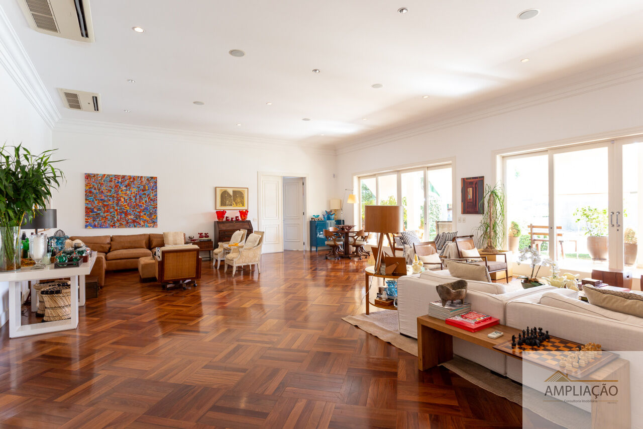 Na área de apoio, a cozinha conta com despensas, área de serviço funcional e dependências completas para funcionários, incluindo sala de estar. Para o lazer, os destaques ficam por conta da área gourmet com churrasqueira, piscina, sauna e jardim espaçoso. A casa possui ainda gerador e 6 vagas de garagem.