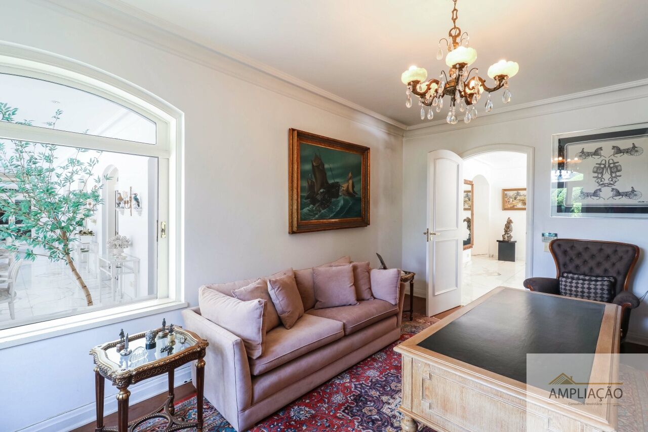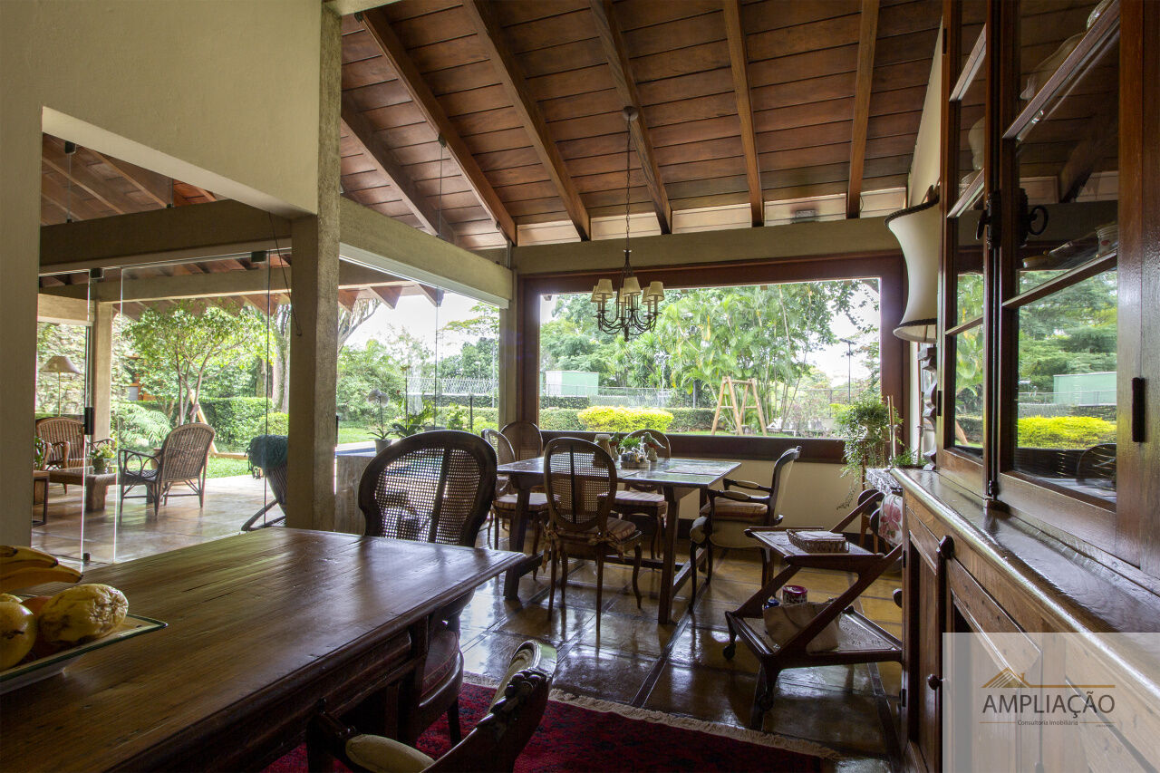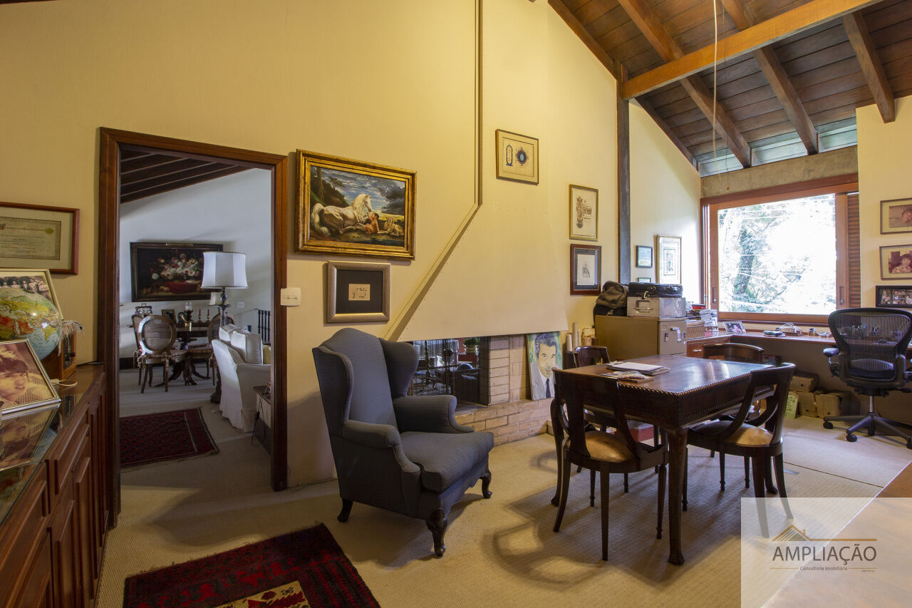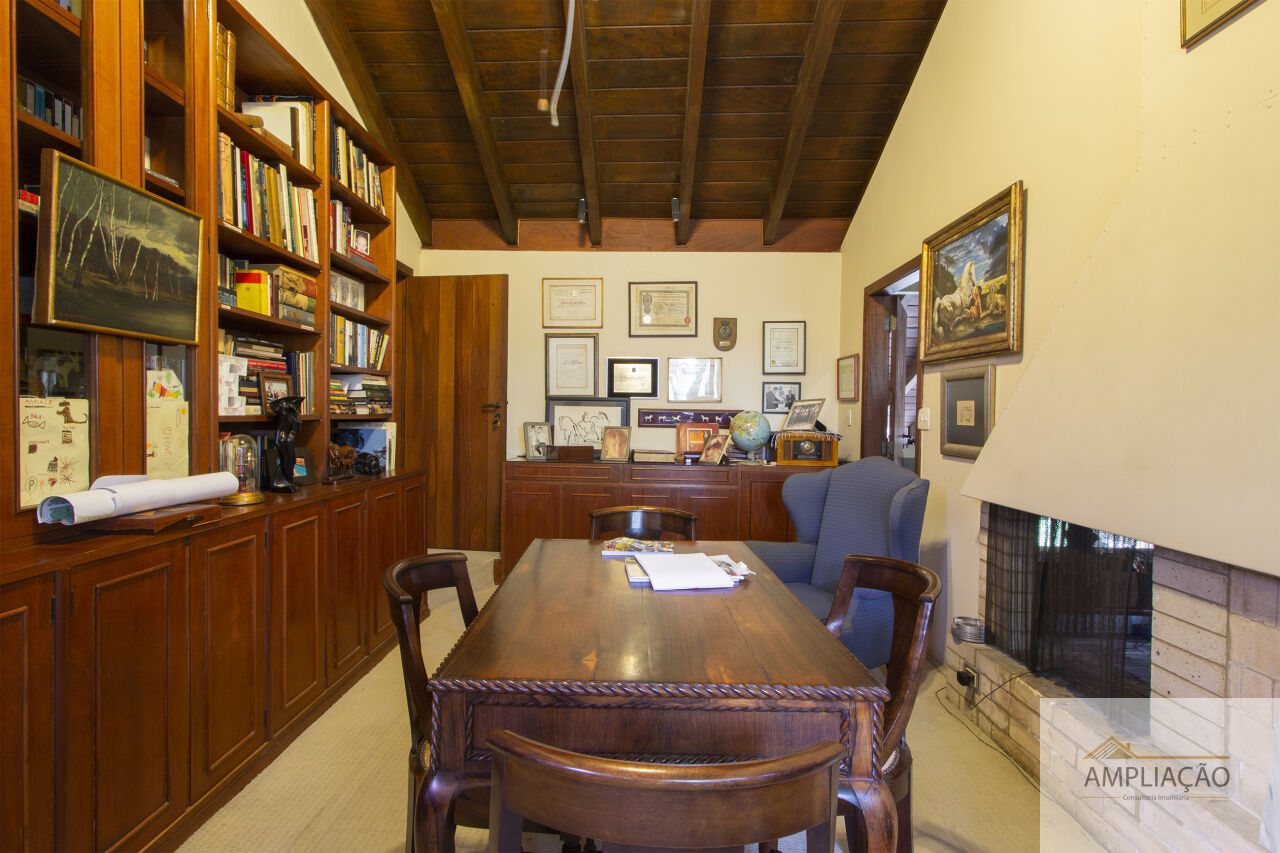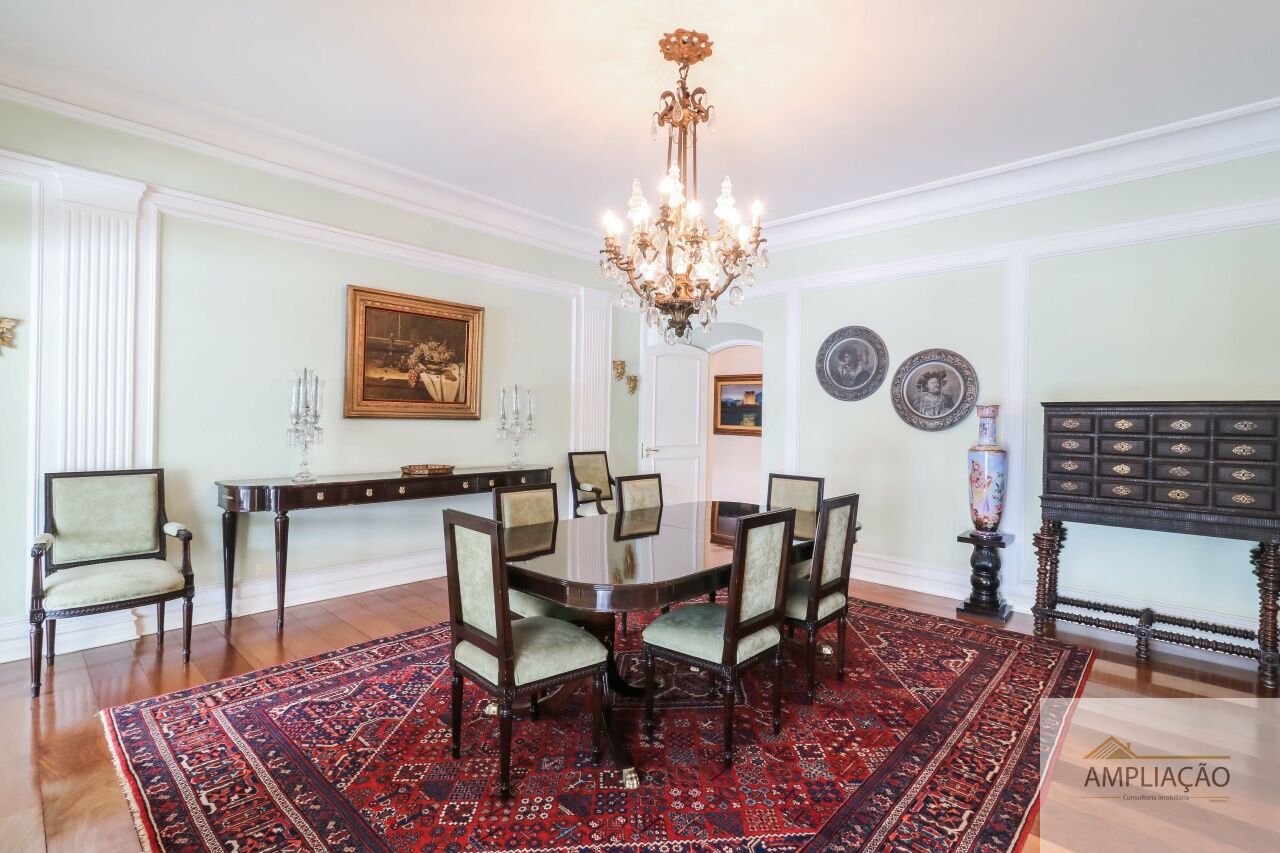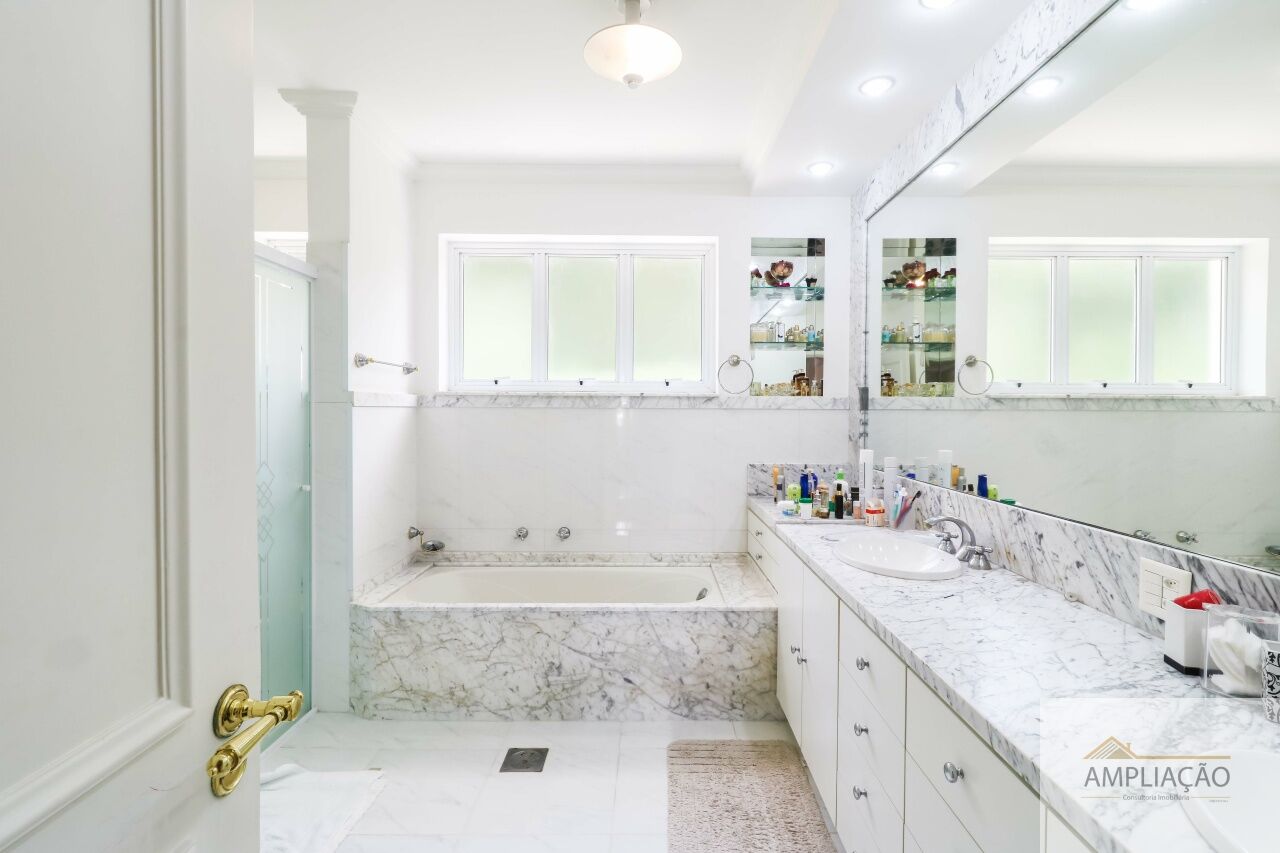 Na área de apoio, a cozinha conta com despensas, área de serviço funcional e dependências completas para funcionários, incluindo sala de estar. Para o lazer, os destaques ficam por conta da área gourmet com churrasqueira, piscina, sauna e jardim espaçoso. A casa possui ainda gerador e 6 vagas de garagem.