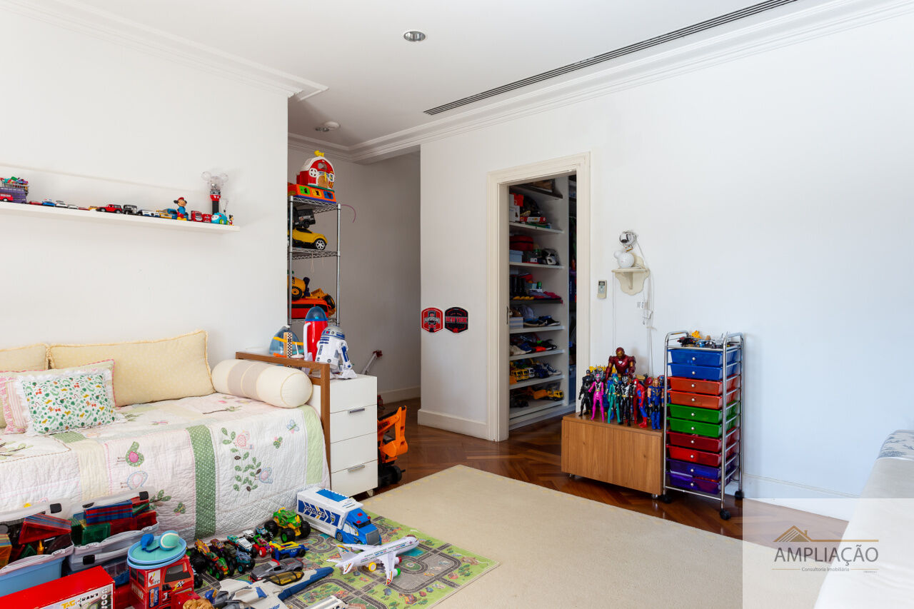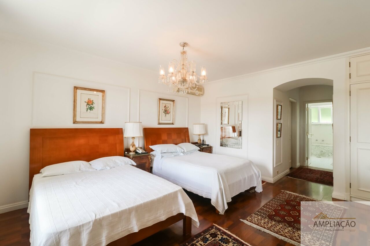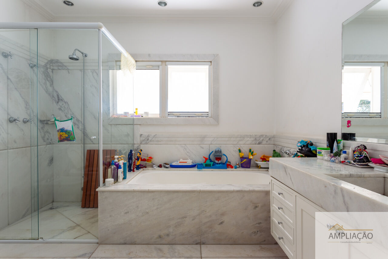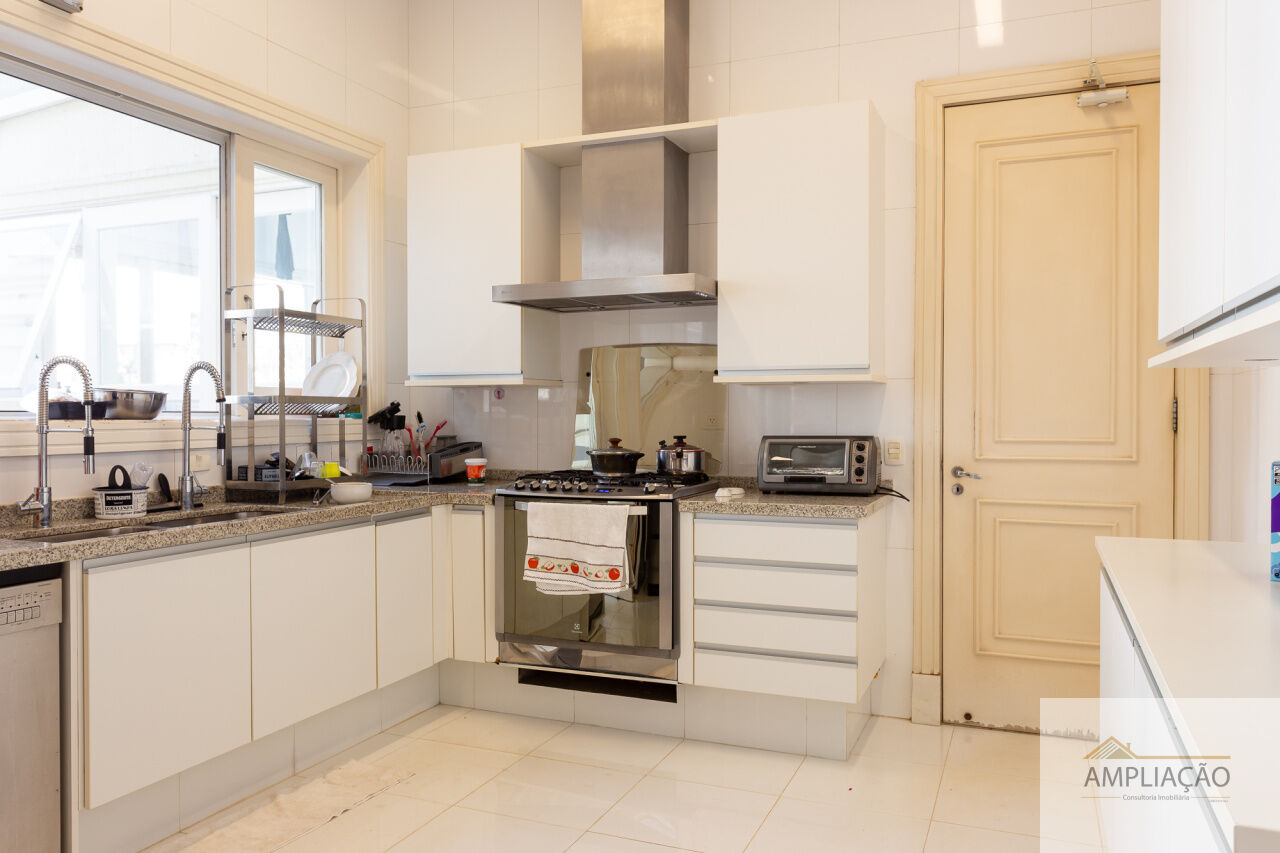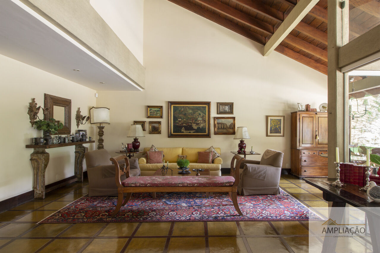 Na área de apoio, a cozinha conta com despensas, área de serviço funcional e dependências completas para funcionários, incluindo sala de estar. Para o lazer, os destaques ficam por conta da área gourmet com churrasqueira, piscina, sauna e jardim espaçoso. A casa possui ainda gerador e 6 vagas de garagem.