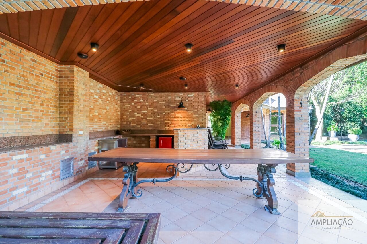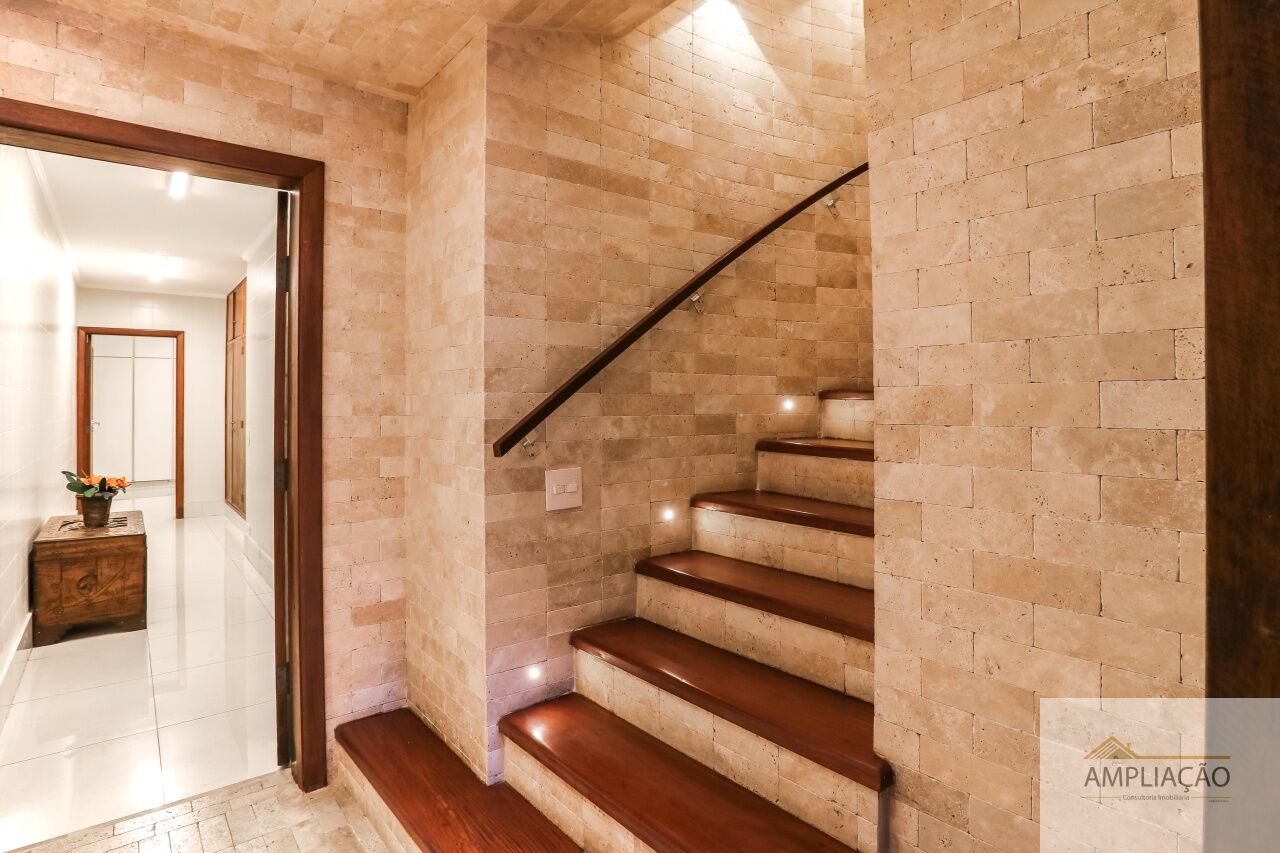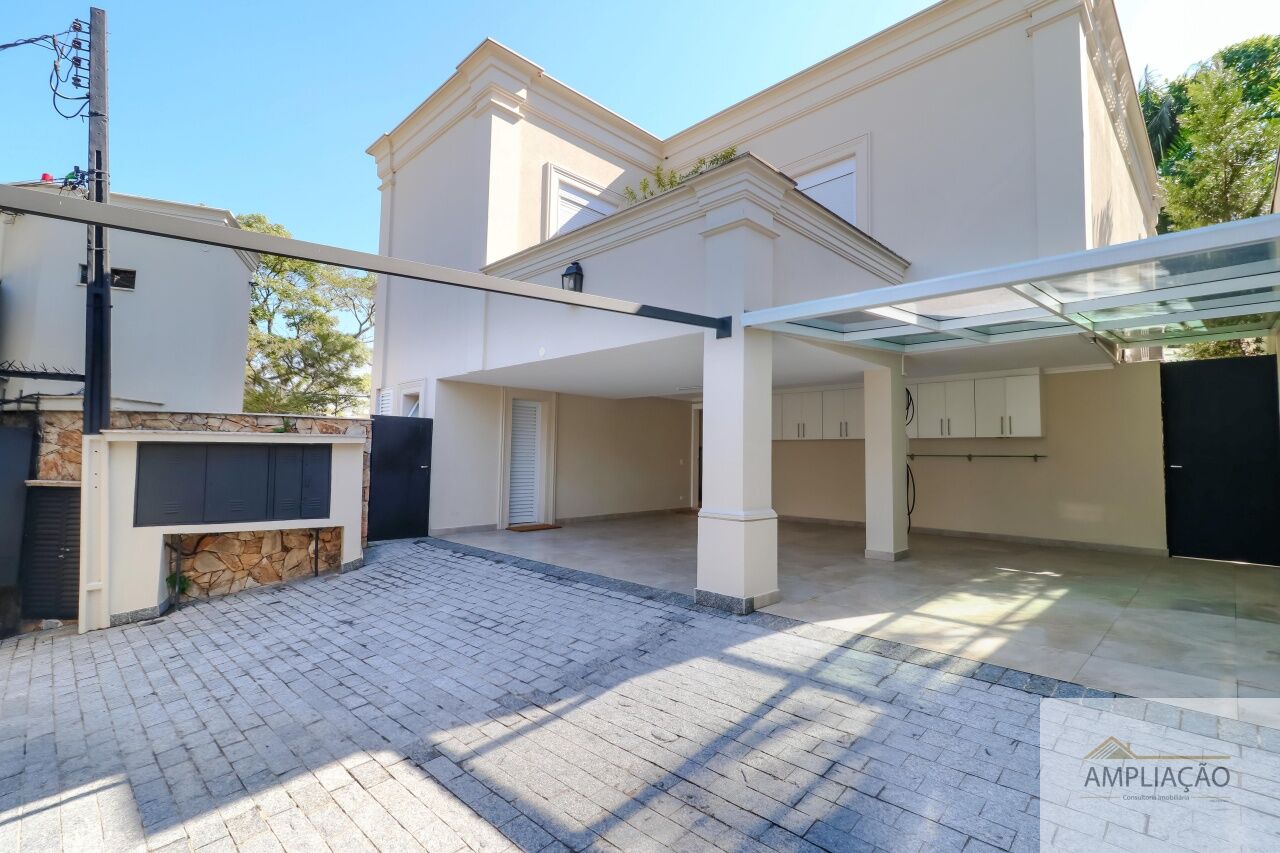 Em um terreno de 1.030 m², com 614 m² de área construída, a casa oferece lavabo, home theater, sala de jantar e um amplo living para vários ambientes. São cinco suítes, incluindo uma no térreo e uma suíte master com walking closet senhor e senhora e terraço. A cozinha é espaçosa, com armários planejados e despensa, e todos os ambientes contam com ar-condicionado.