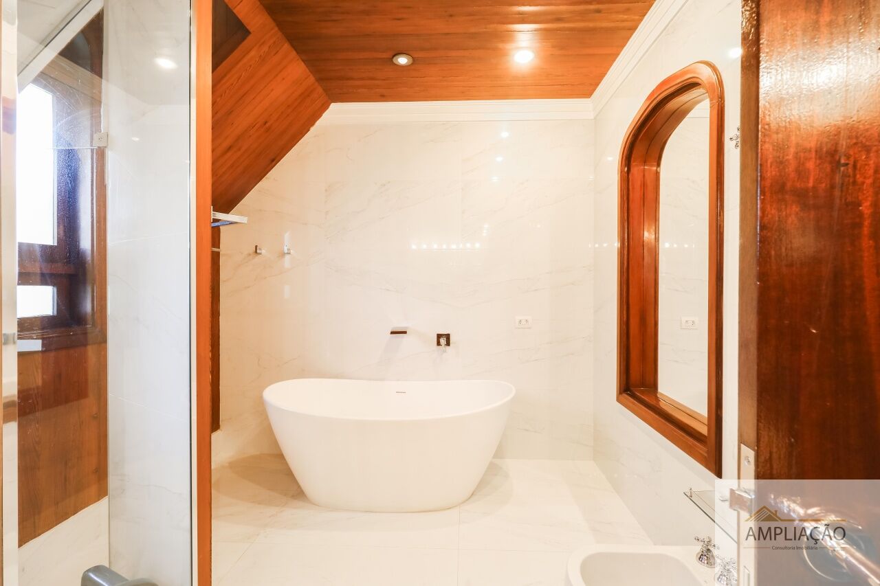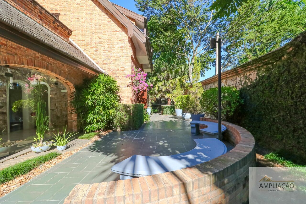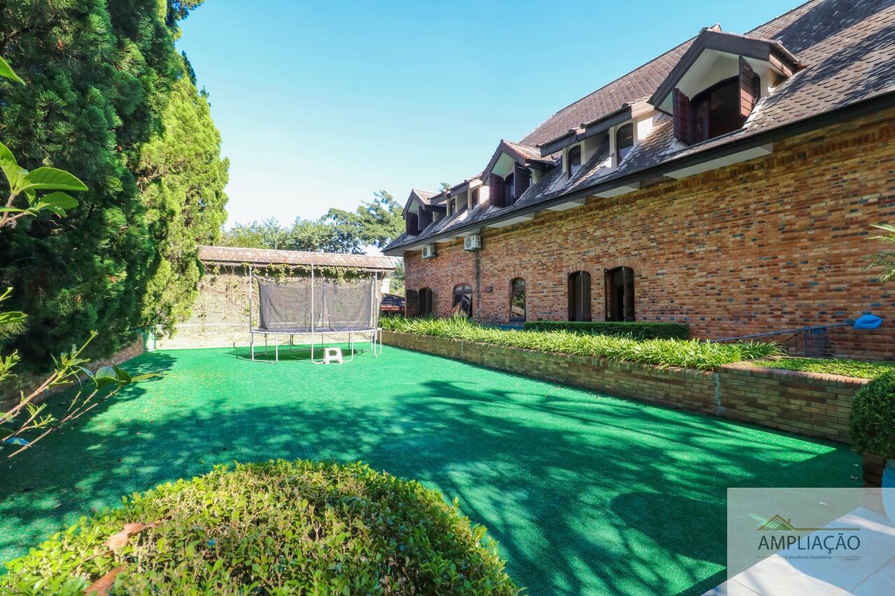 Em um terreno de 1.030 m², com 614 m² de área construída, a casa oferece lavabo, home theater, sala de jantar e um amplo living para vários ambientes. São cinco suítes, incluindo uma no térreo e uma suíte master com walking closet senhor e senhora e terraço. A cozinha é espaçosa, com armários planejados e despensa, e todos os ambientes contam com ar-condicionado.