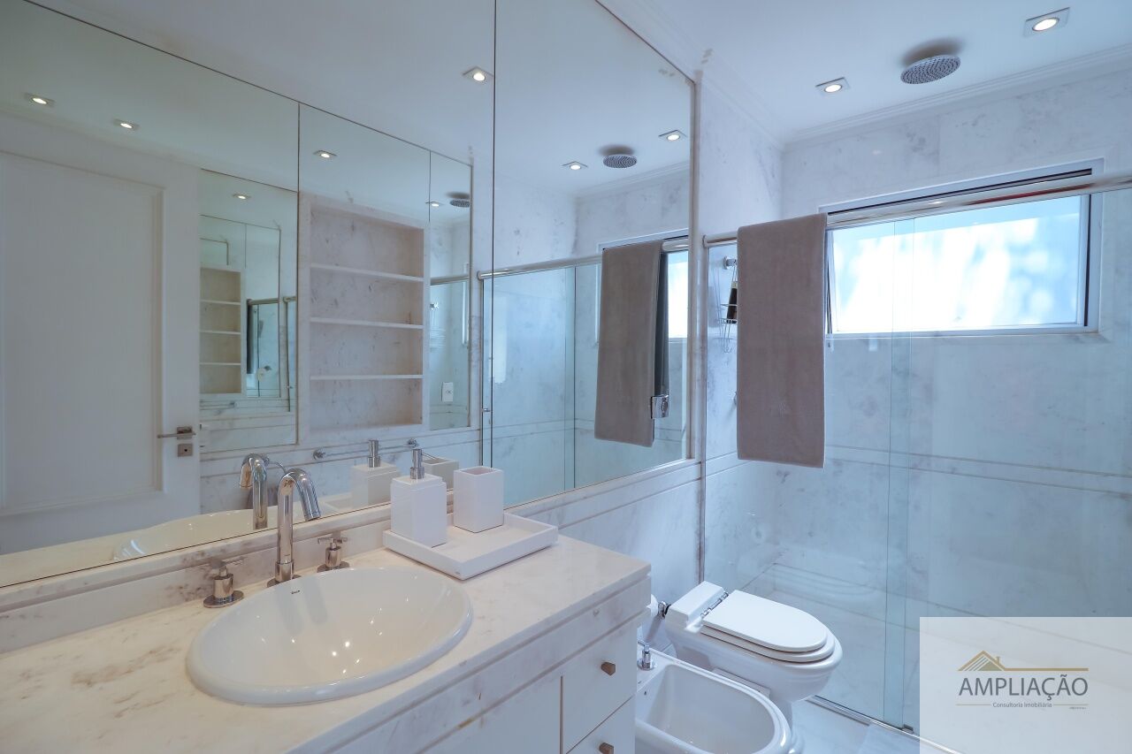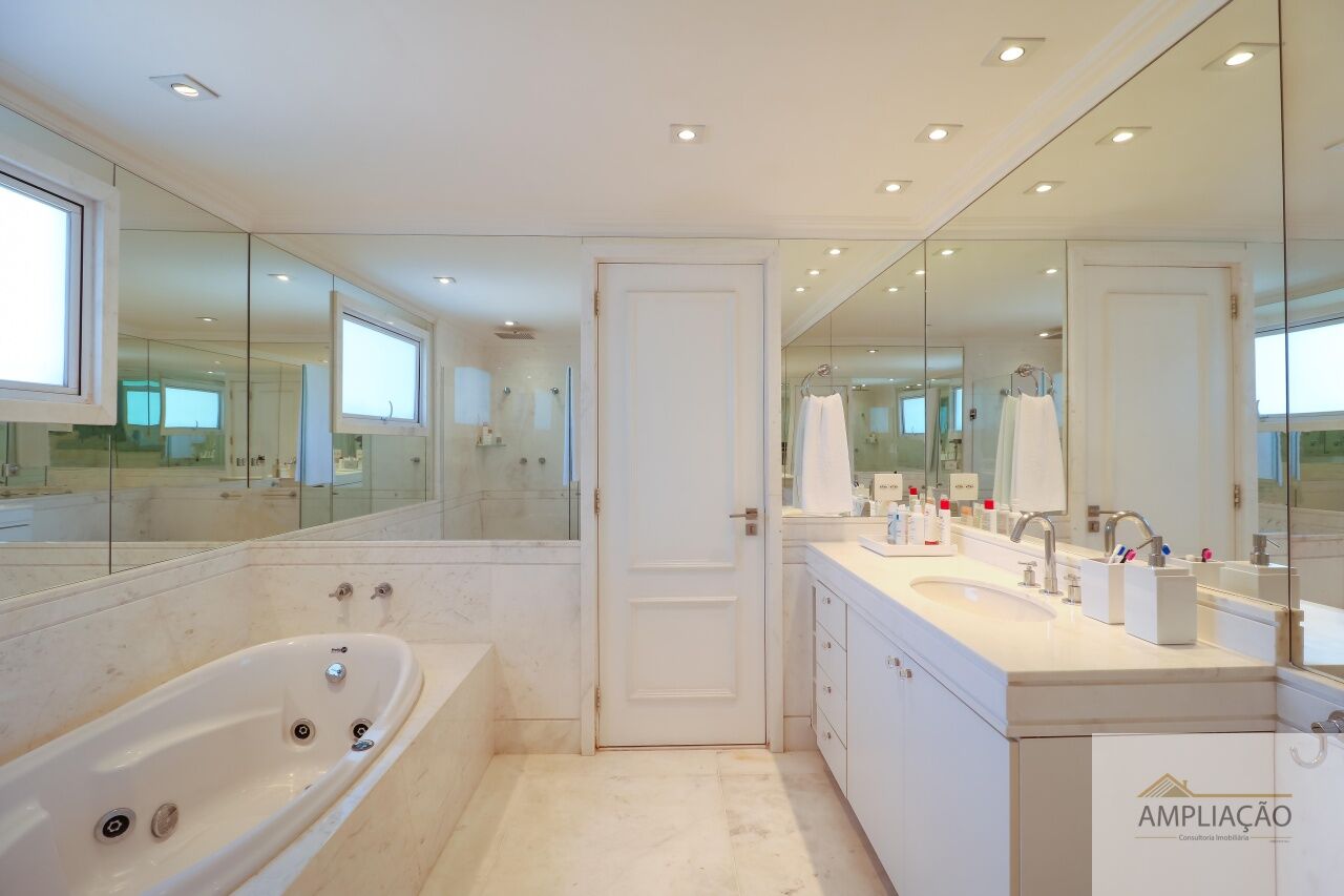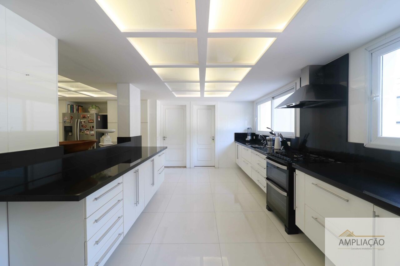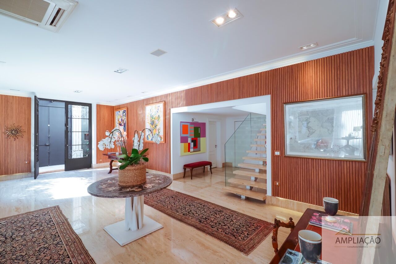 A estrutura dispõe ainda de área de serviço, duas suítes para funcionários, academia, jardim de inverno, piscina aquecida, garagem para seis carros e guarita blindada, garantindo total segurança. Um imóvel completo, sofisticado e impecavelmente montado.