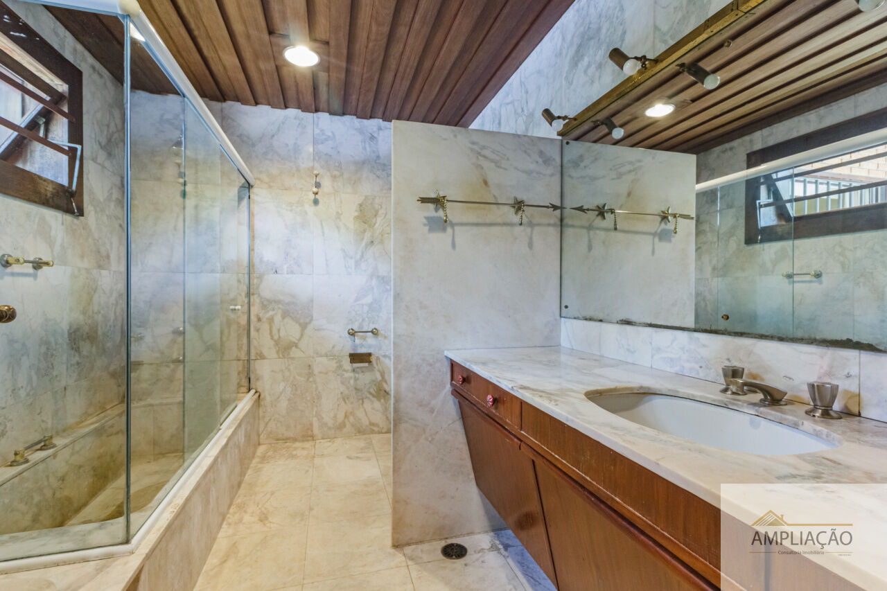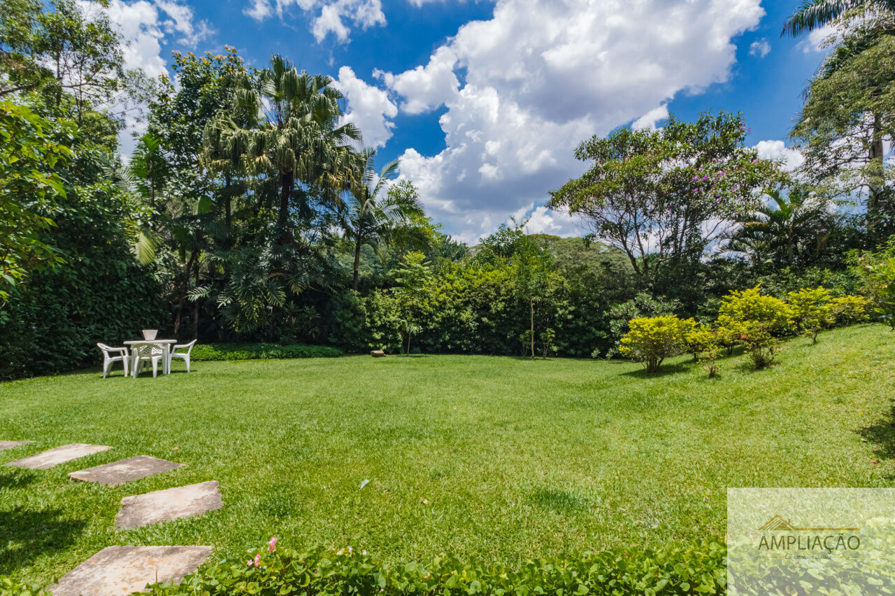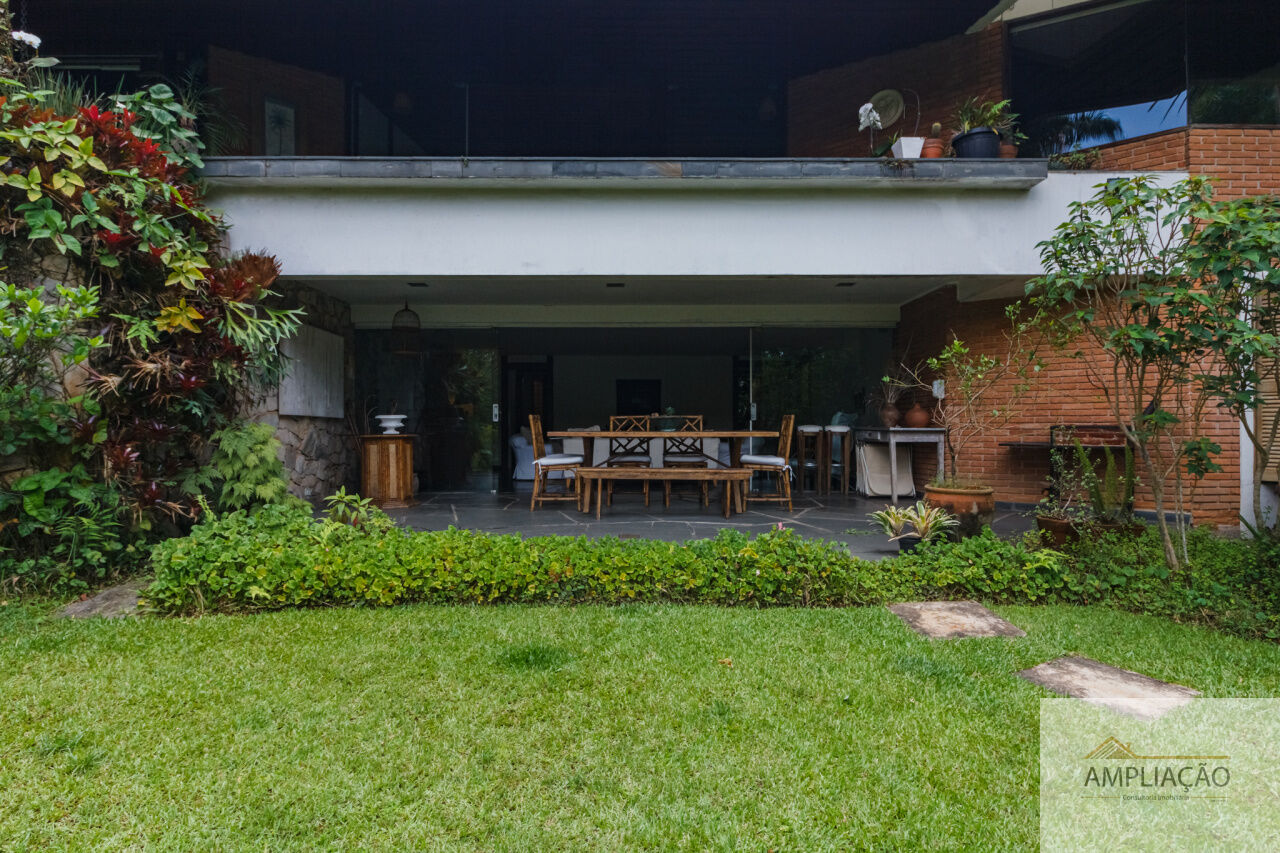 A área íntima conta com quatro suítes, garantindo conforto e privacidade. A cozinha e copa são bem distribuídas, acompanhadas de duas despensas, enquanto a área de serviço conta com dependência de empregados completa. O jardim, que circunda toda a propriedade, cria um refúgio verde e tranquilo, perfeito para momentos de lazer. A casa dispõe ainda de quatro vagas cobertas, unindo praticidade, sofisticação e qualidade de vida em um só endereço.