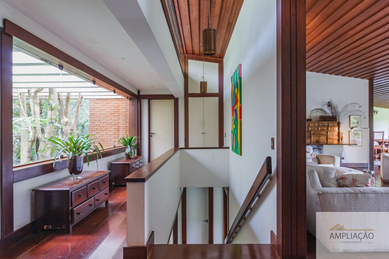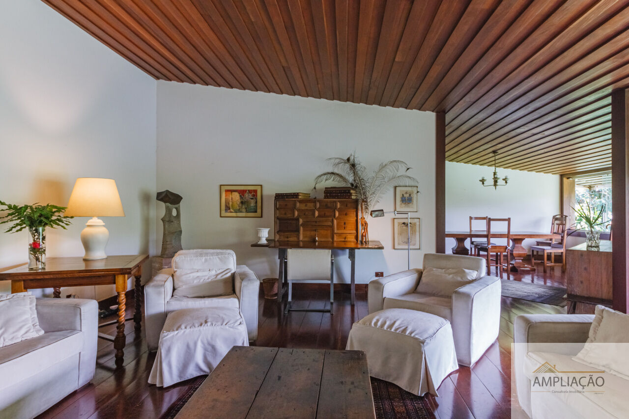 Casa em rua fechada, em excelente localização cercada por área muito arborizada, que combina conforto, espaço e construção sólida. Rodeada por um lindo jardim, a residência ocupa um terreno de 1.268 m², com 341 m² de área construída, oferecendo ambientes amplos e acolhedores, como lavabo, sala de estar com amplo terraço, sala de jantar e jardim de inverno.