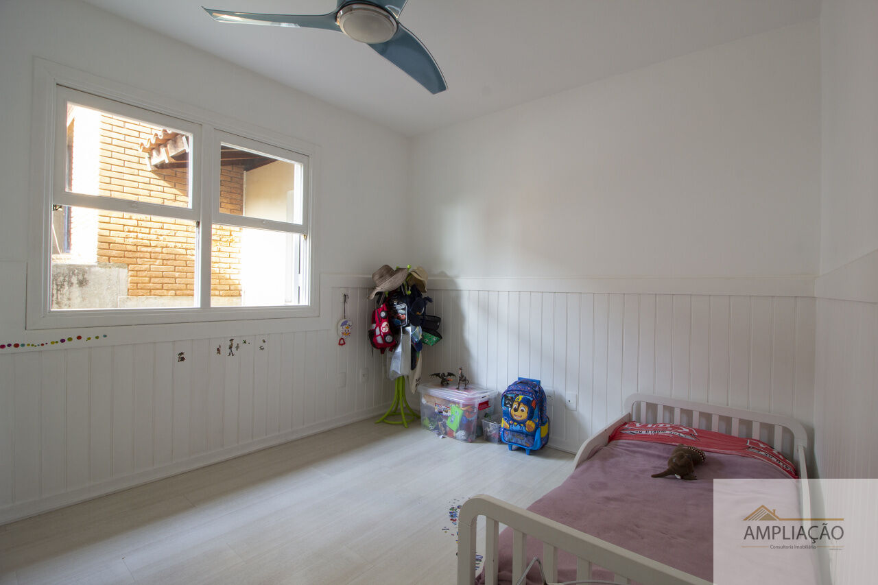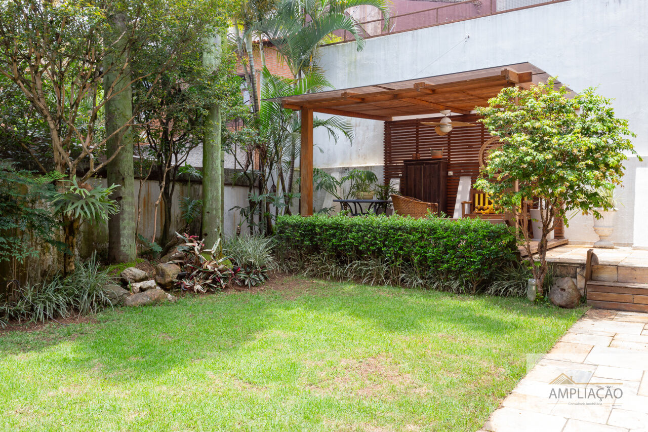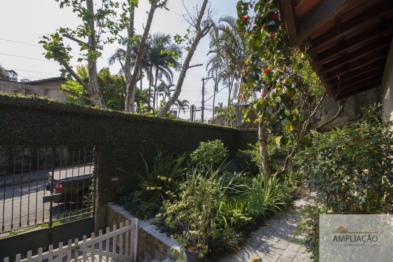 A área íntima oferece 3 dormitórios, sendo 2 suítes. A cozinha é funcional, apoiada por área de serviço e dependência de empregados. O jardim completa o clima acolhedor da casa, que ainda dispõe de 3 vagas.