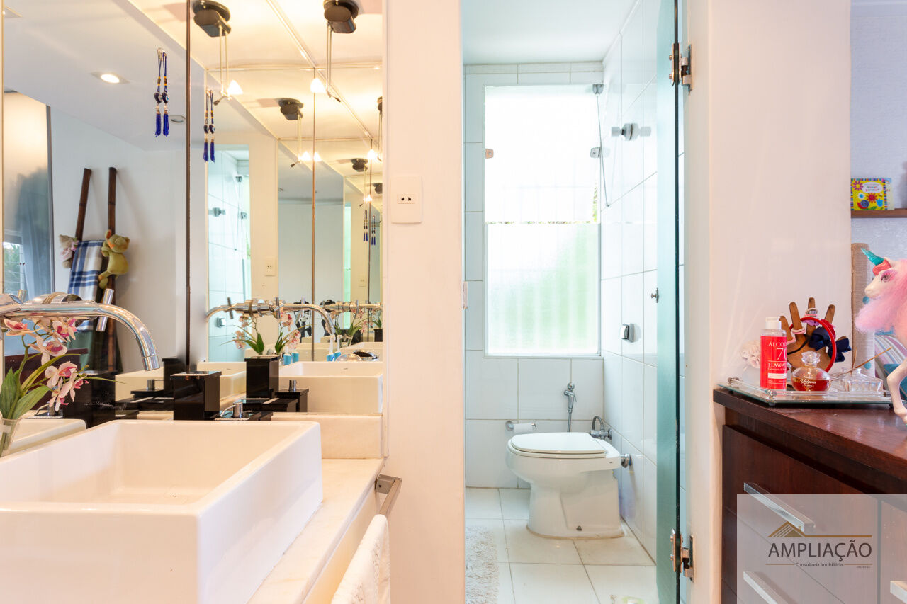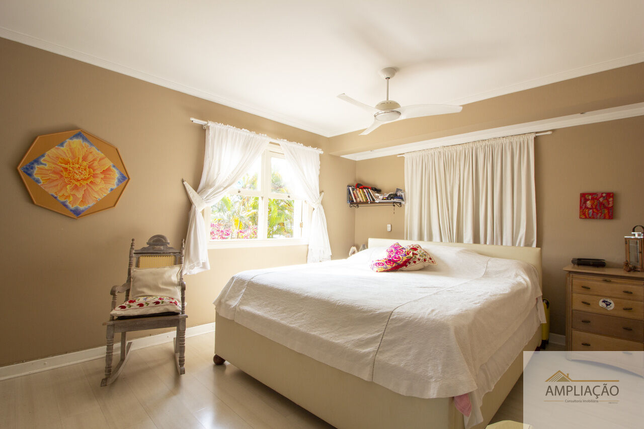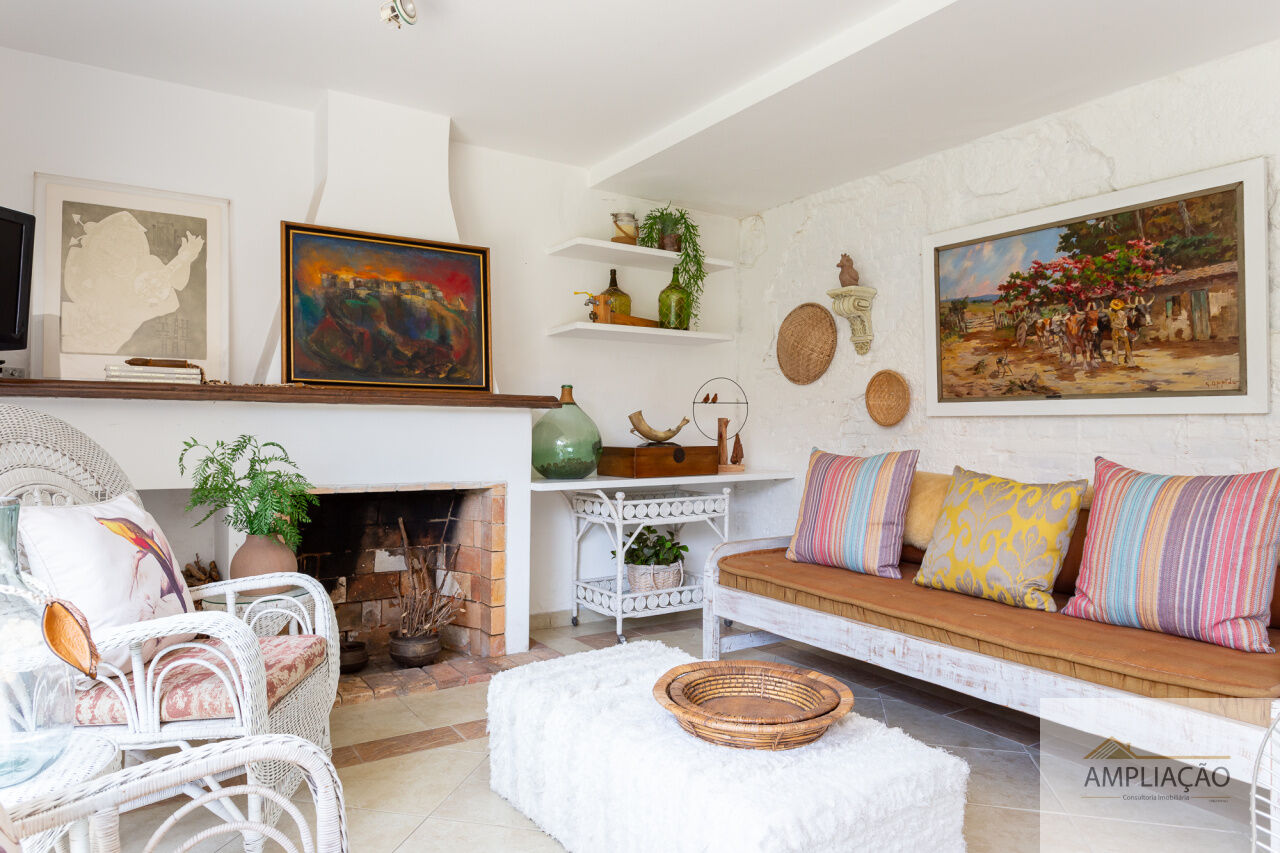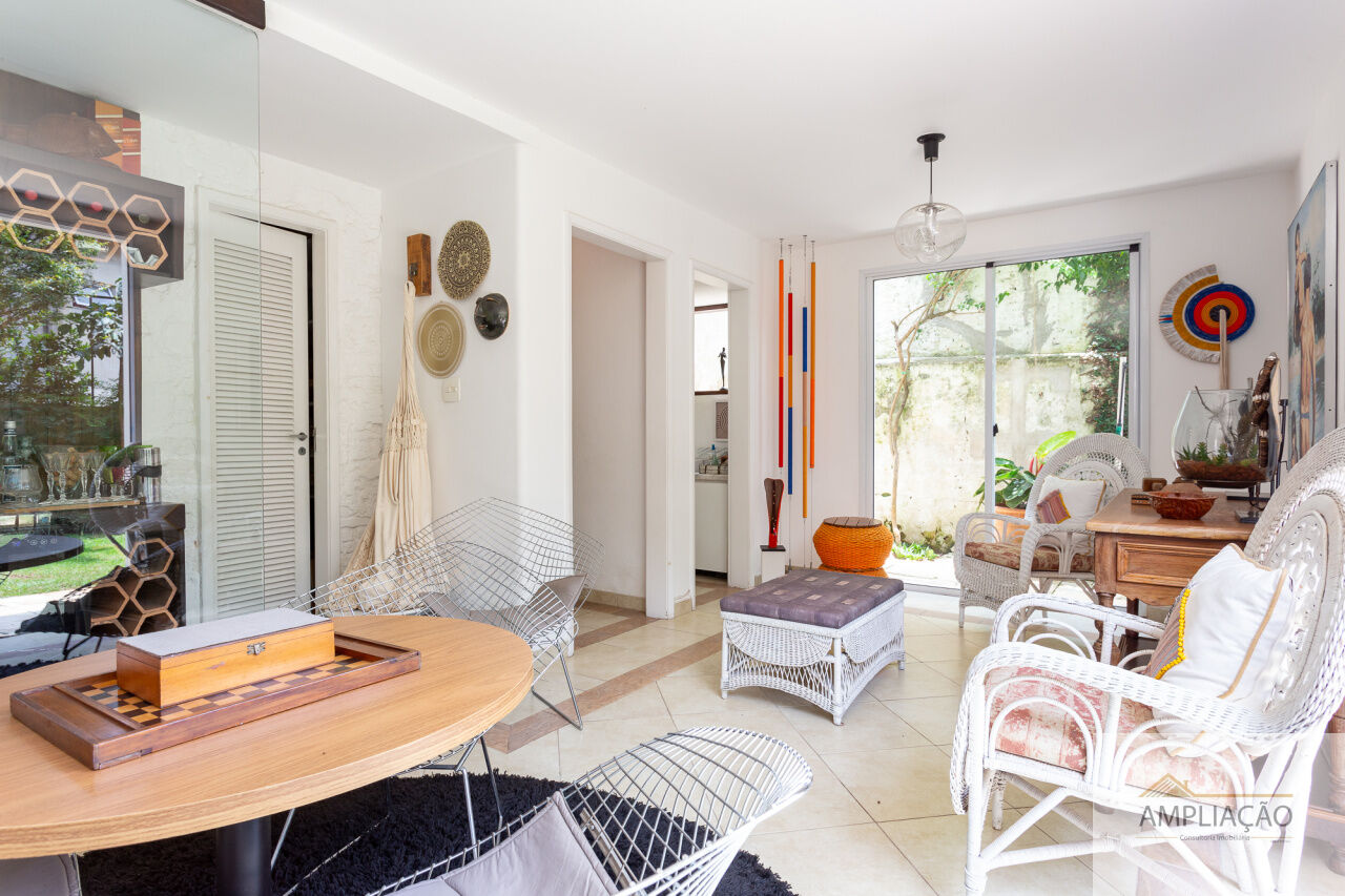 A área íntima oferece 3 dormitórios, sendo 2 suítes. A cozinha é funcional, apoiada por área de serviço e dependência de empregados. O jardim completa o clima acolhedor da casa, que ainda dispõe de 3 vagas.
