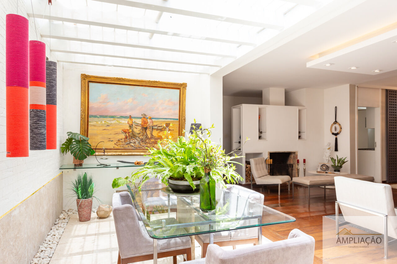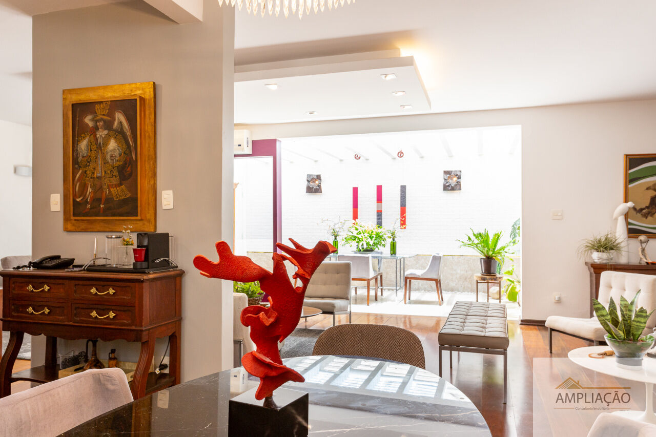 Em um terreno de 410 m² e 280 m² de construção, o imóvel se destaca pela luminosidade natural e pelos espaços integrados. A área social conta com lavabo, sala de estar, sala de almoço, sala de jantar, escritório e um encantador gazebo que traz ainda mais charme ao jardim.