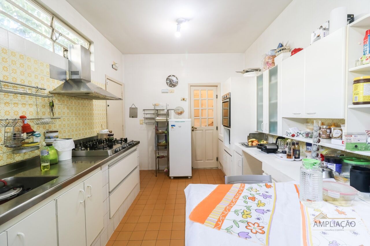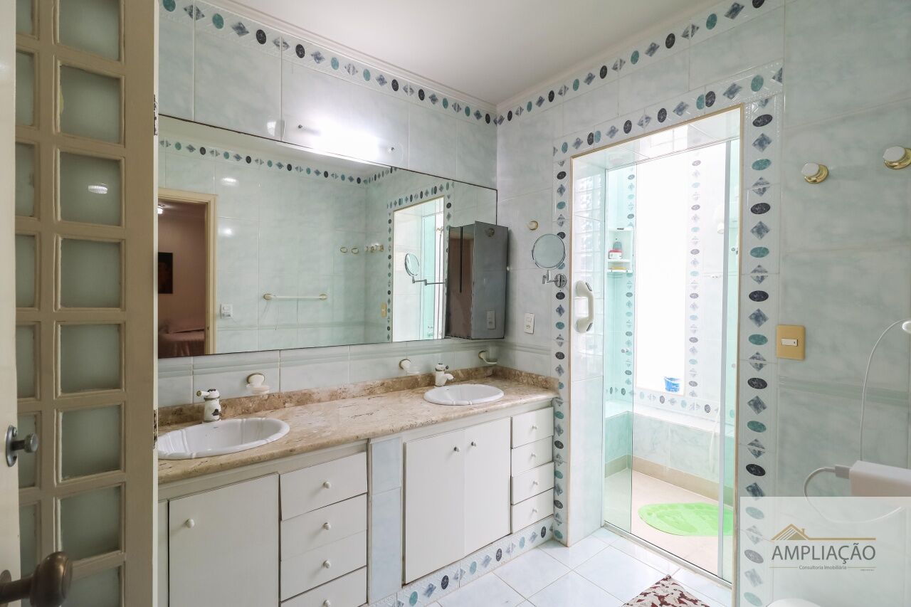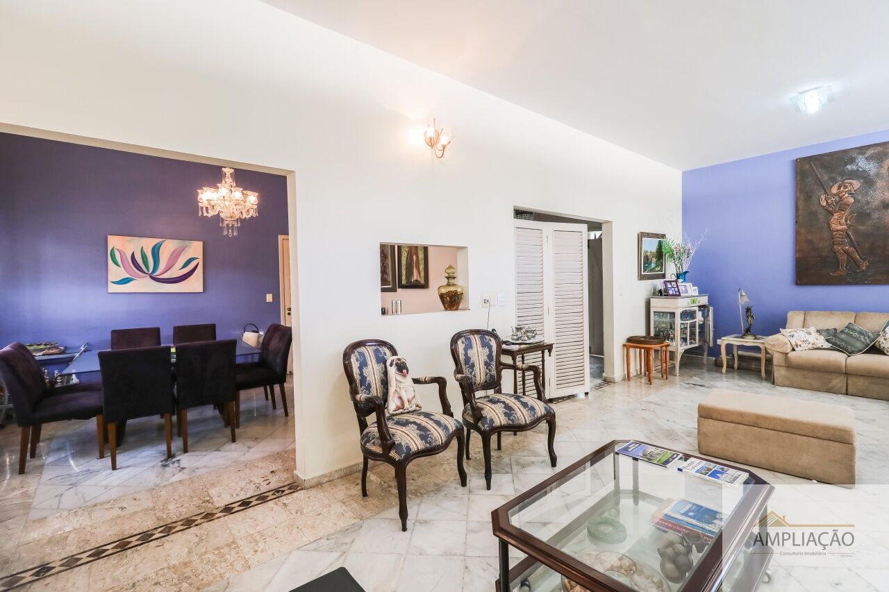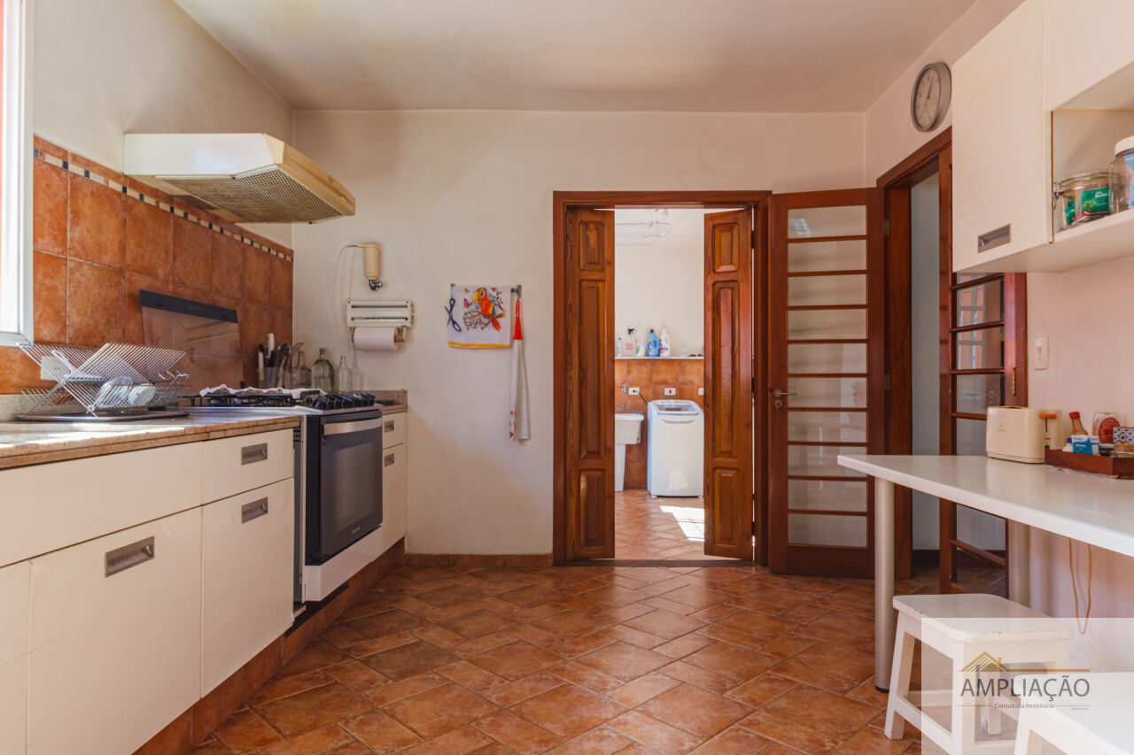 A área íntima conta com 4 dormitórios, sendo 2 suítes ? a master com closet. A parte funcional inclui copa, cozinha com muitos armários, despensa, lavanderia e dependência de empregados.