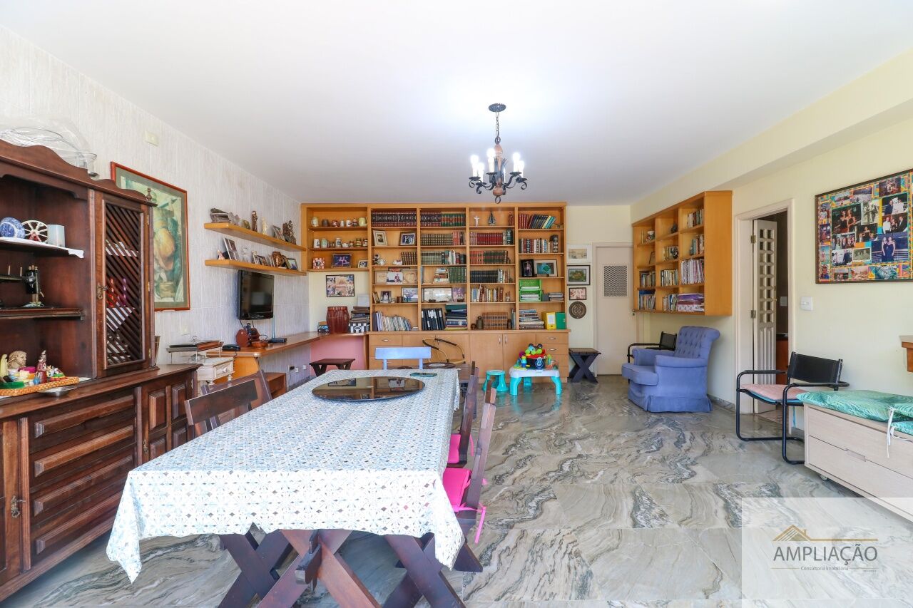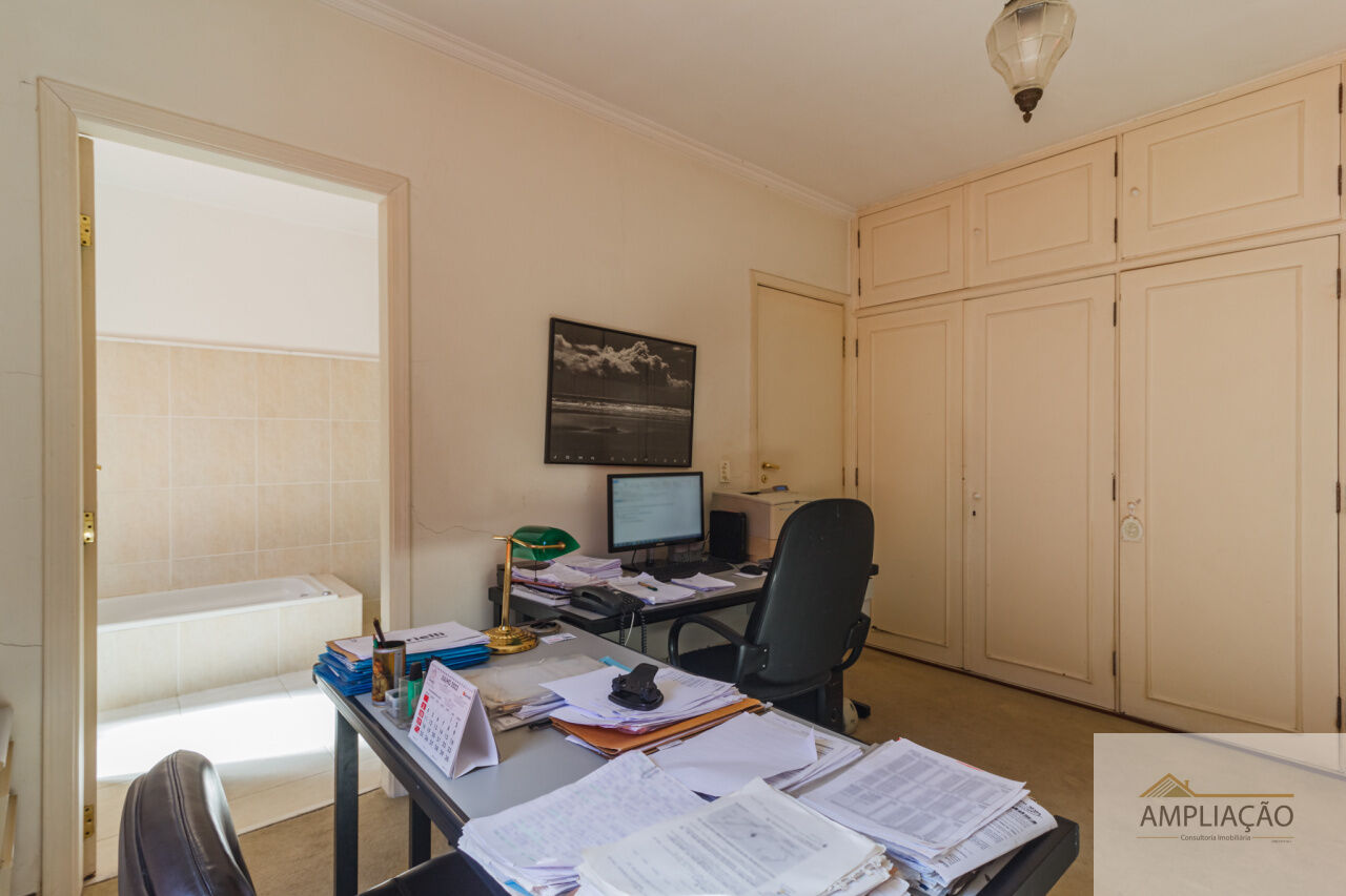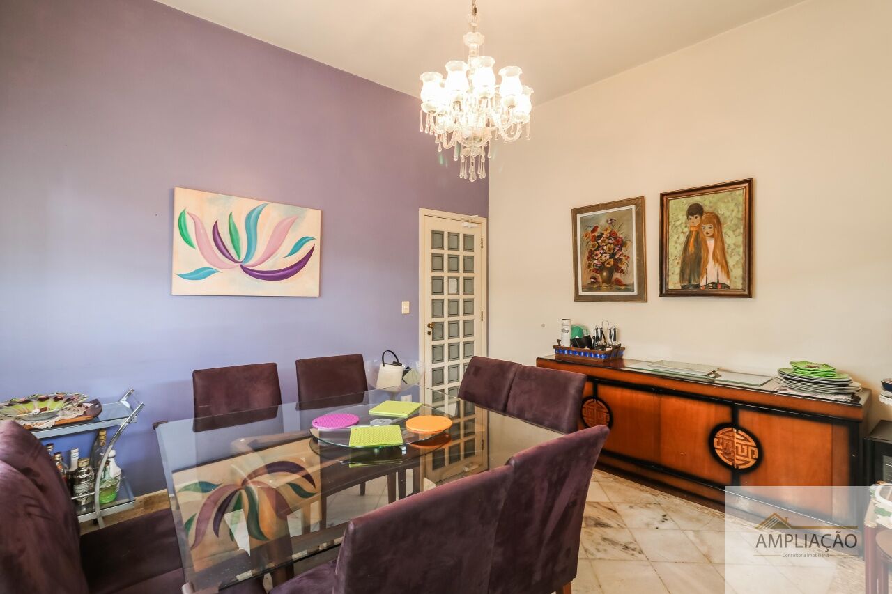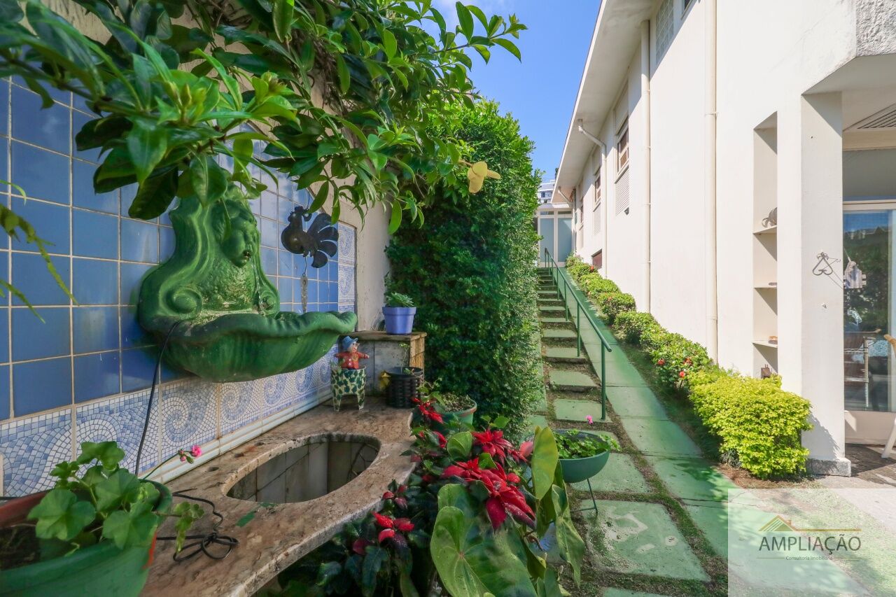 A área íntima conta com 4 dormitórios, sendo 2 suítes ? a master com closet. A parte funcional inclui copa, cozinha com muitos armários, despensa, lavanderia e dependência de empregados.
