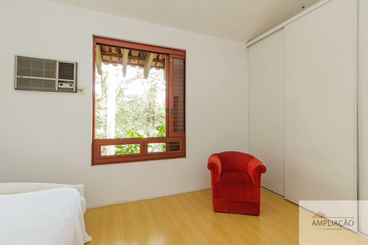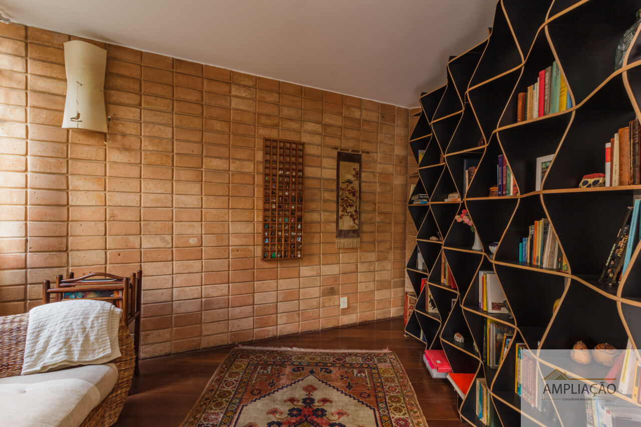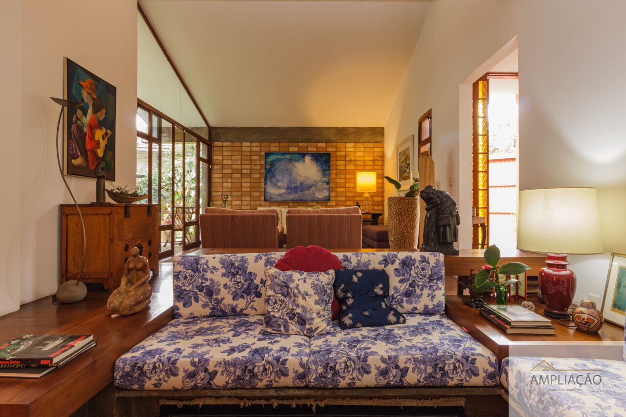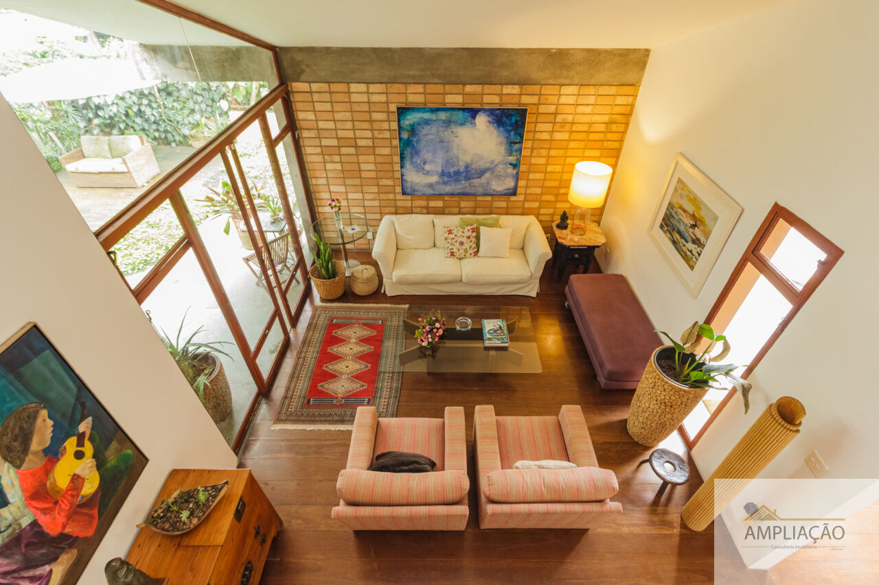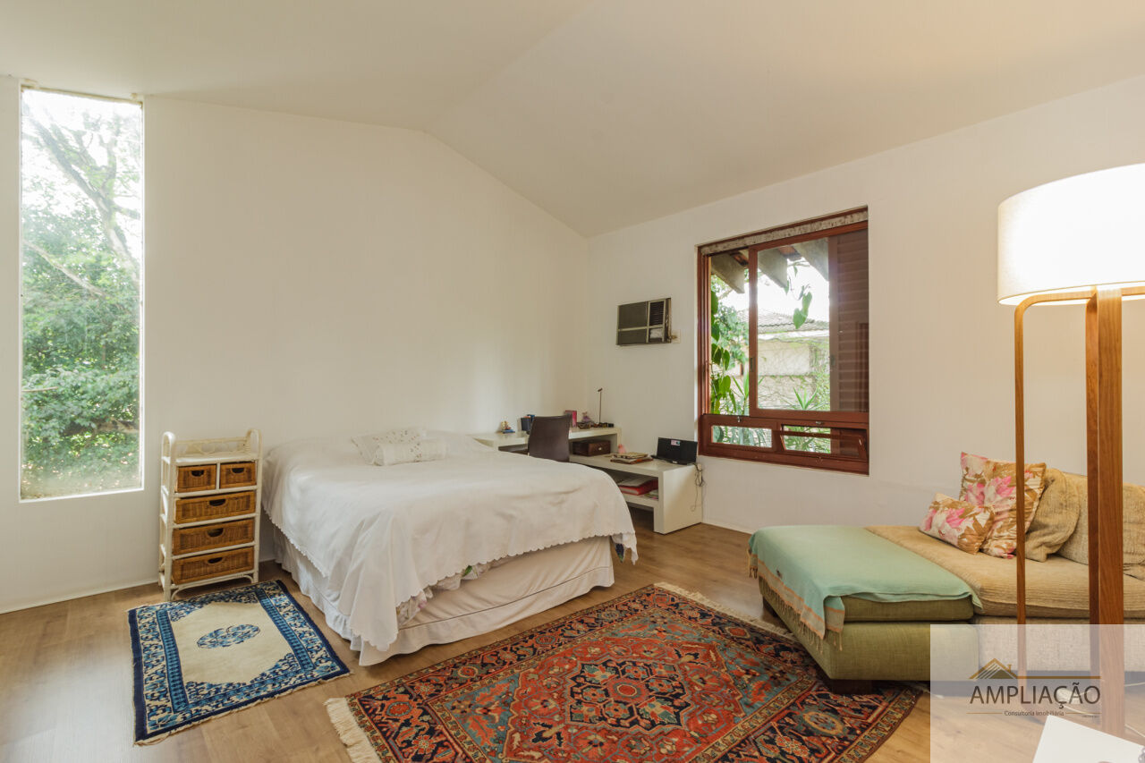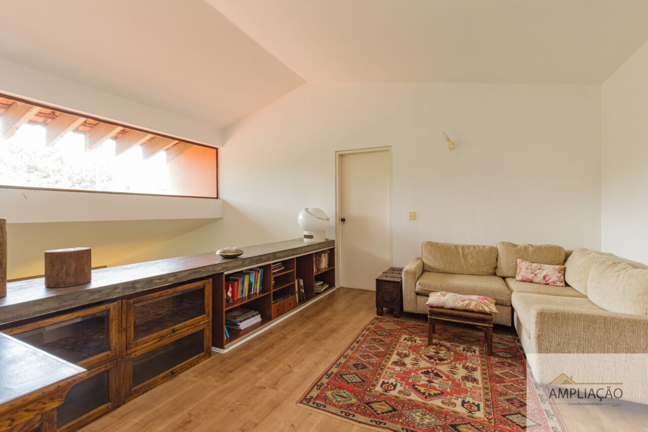 O living com pé-direito duplo se integra à sala de estar com piso de madeira, sala de TV, sala com lareira, sala de jantar e sala de almoço, além de copa e cozinha. Na área íntima, uma antessala distribui os quatro dormitórios ? sendo duas suítes, incluindo a máster com closet, ar-condicionado e terraço.