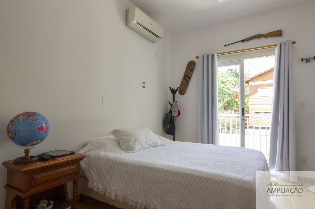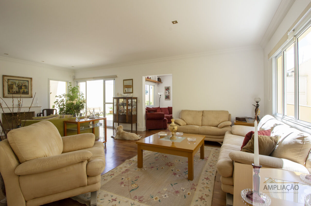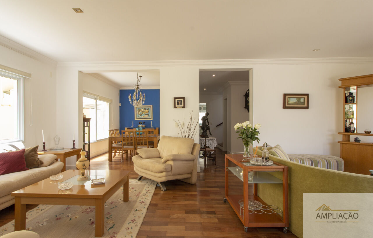 Localizada em rua tranquila e arborizada, com guarita de segurança e ótima vizinhança, esta casa oferece excelente distribuição, muita luminosidade natural e ambientes amplos com abundância de armários. Em um terreno de 388 m² e 273 m² de área construída, conta com lavabo, sala de estar para dois ambientes com lareira, sala de jantar, sala de TV, três suítes, escritório e copa & cozinha integradas.